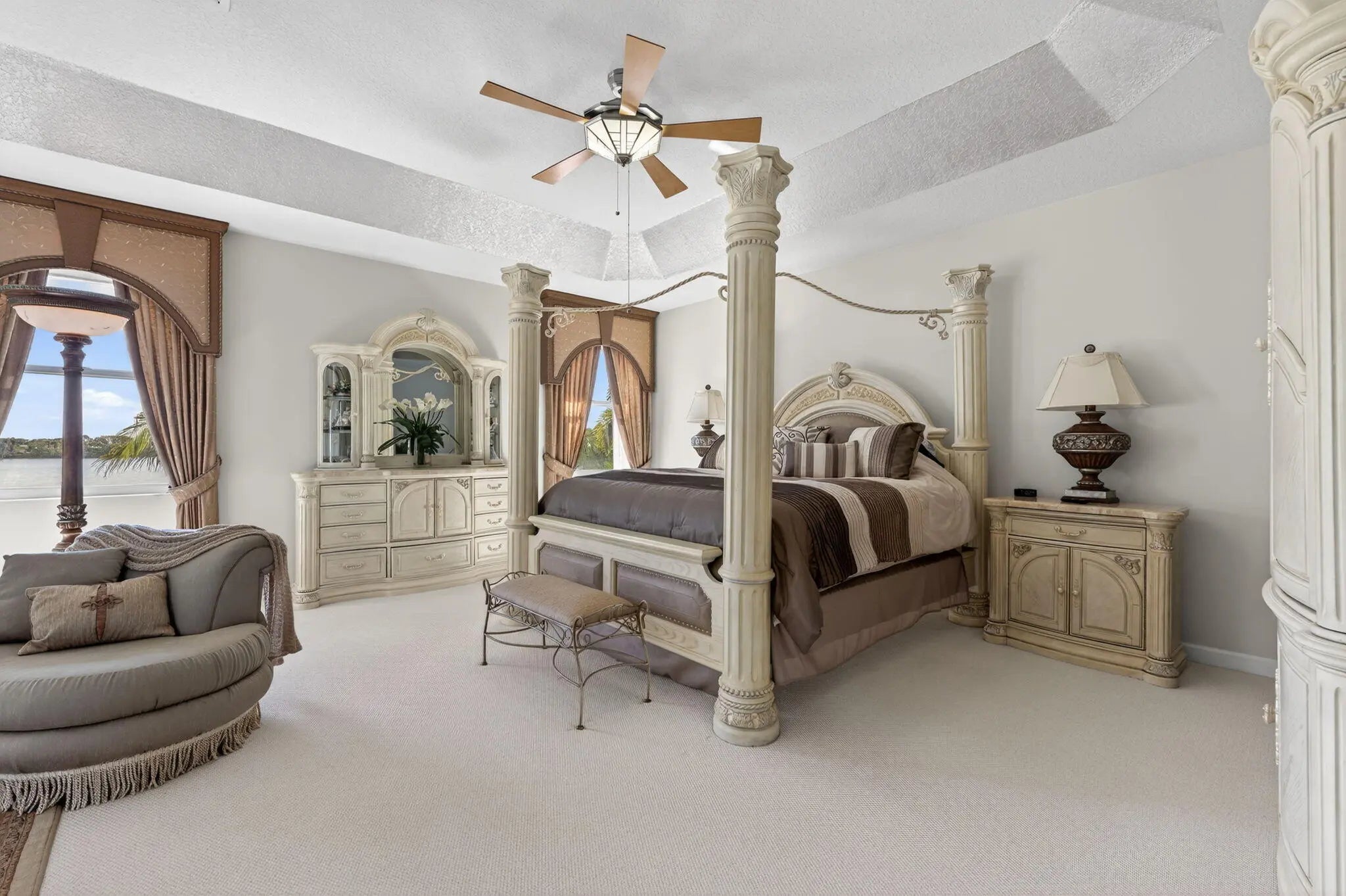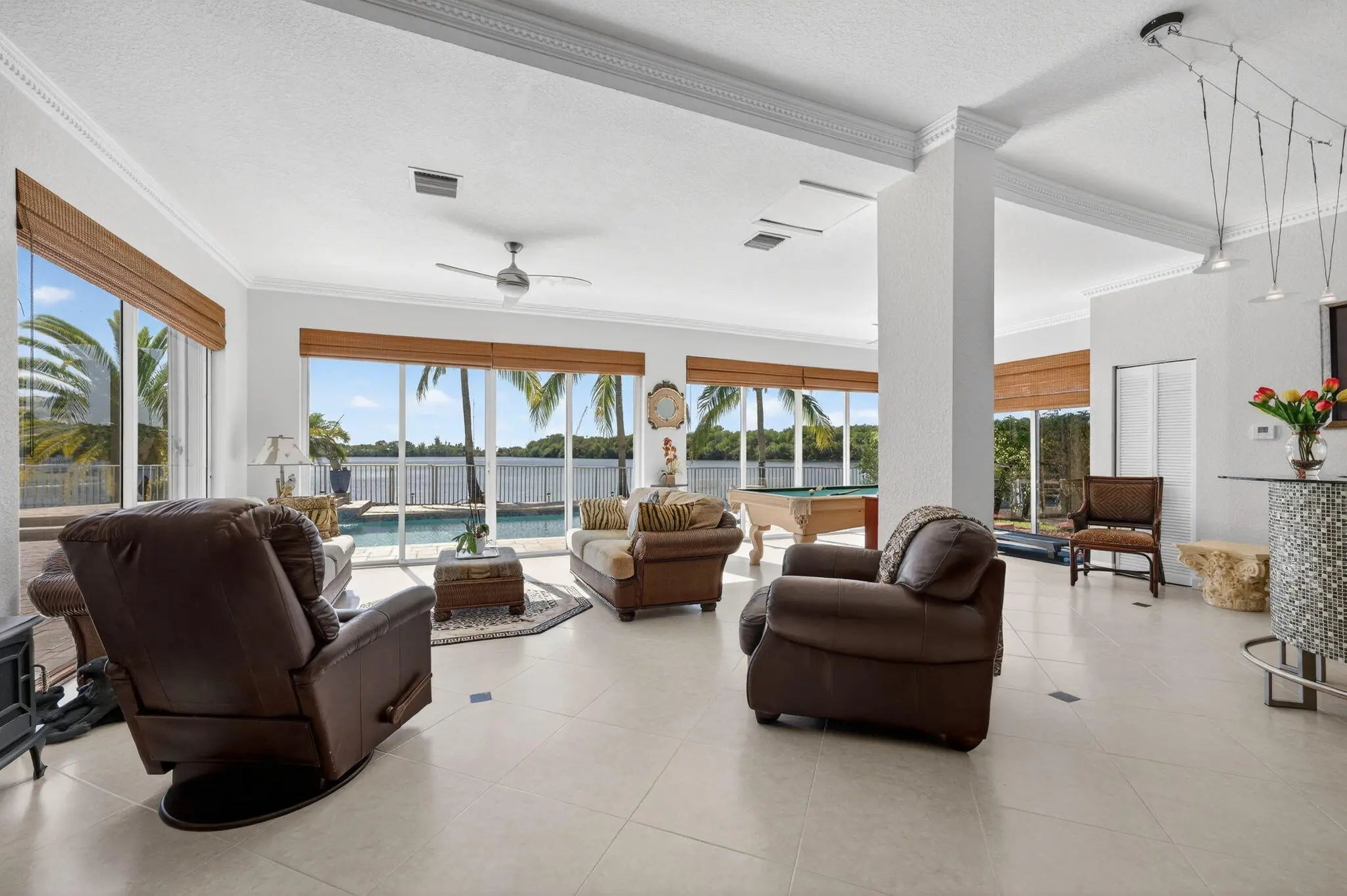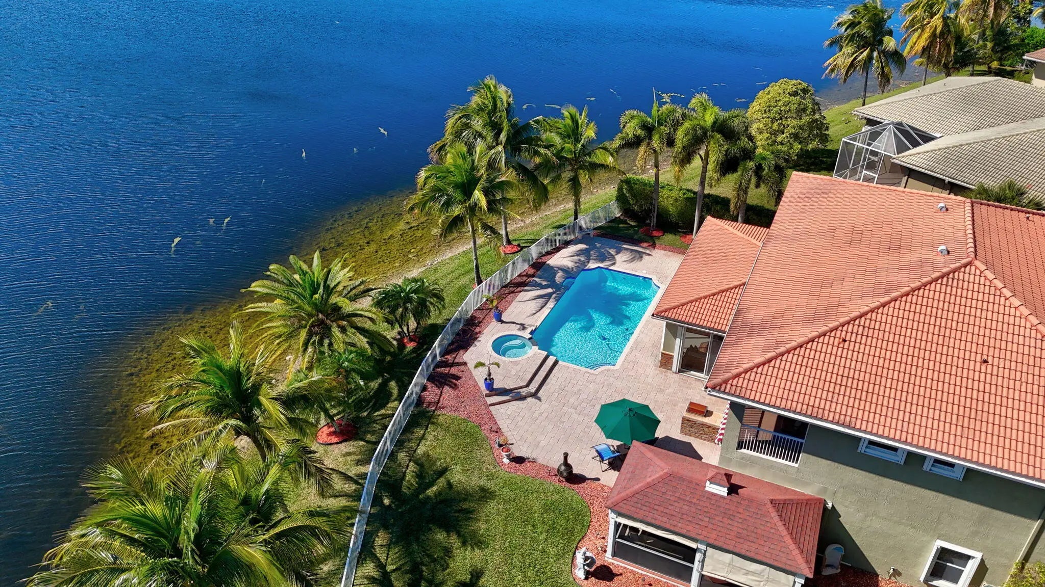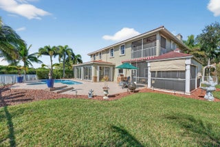 Discover unmatched privacy in the gated sanctuary of Pelican Isle. Situated on a premier pie-shaped lot overlooking a 22-acre lake, this 3,993 sq ft estate blends grandeur with family functionality. A dramatic foyer with crystal chandeliers and Italian porcelain floors leads to a soaring two-story living room with a marble fireplace. The chef's kitchen dazzles with waterfall crystal counters and Bosch appliances, flowing into a sprawling Florida room and dedicated home theater. Outdoors, the lifestyle is unrivaled: southern lake views frame a newly resurfaced heated pool, spa, and screened pavilion. With 5 bedrooms, a home office, and a 3-car garage, this one owner residence is meticulously maintained and move-in ready. Experience the best of Coral Springs luxury. Exquisite Lakefront Estate in the Gated Sanctuary of Pelican Isle. Introduction to Grandeur, a masterpiece of design and durability located within the exclusive gated community of Wyndham Lakes / Pelican Isle. Situated on an oversized, pie-shaped lot, this estate commands breathtaking panoramic views of a 22-acre lake. The arrival experience is undeniably majestic, featuring a wide driveway with a fountain leading to a covered entry porch graced by double designer doors. Step inside the grand entrance foyer to be greeted by Italian porcelain floors, a tray ceiling with a crystal chandelier, and a spectacular wrought-iron spiral staircase that sets a tone of opulent sophistication. Architectural Elegance & Entertaining Spaces designed for the elite entertainer, the home features soaring 10-foot ceilings on both levels and a dramatic two-story living room anchored by a real fireplace with a marble mantle and expansive windows that flood the space with natural light. The formal dining room offers serene lake views, while the family room is equipped with built-ins and surround sound speakers for casual relaxation. At the heart of the home lies a custom-expanded chef's kitchen, showcasing wood cabinetry with crown molding, glass inserts, and a decorative wood hood. Culinary enthusiasts will appreciate the Bosch stainless steel appliances and the show-stopping waterfall crystal countertop that lights up for dramatic effect. The kitchen flows seamlessly into a large dining area adorned with wood plantation shutters and opens via French doors to the covered patio. Unrivaled Leisure & Lifestyle this residence offers amenities rarely found in private homes. A massive 20'x30' Florida/Game Room addition features full glass sliders with panoramic lake views, providing ample space for a pool table, bar, and sitting area. For movie nights, enjoy the dedicated theater room, complete with a closet and window (versatile space that can convert back to a 3rd garage bay if desired). Private quarters & accommodations spanning 3,993 square feet, the floor plan includes 5 bedrooms plus a home office. The downstairs features a convenient guest bedroom and a full bathroom with a marble shower that serves as a cabana bath. Ascend to the second floora hallmark of superior construction with concrete floors and CBS walls. The upstairs loft offers a sitting area overlooking the foyer and living room. The oversized Master Suite is a true retreat, featuring a tray ceiling, a large walk-in closet, and a private covered balcony with screens and shades for enjoying sunset views. The renovated Master Bath indulges with new tile, a separate tub and shower, marble countertops, and a private water closet. Three additional upstairs bedrooms provide comfort and privacy; one features an en-suite bath, while the others share a double-sink Jack and Jill bathroom. Outdoor Paradise - the backyard is a private resort. Relax in the 15'x30' heated pool and spa, newly resurfaced with diamond-brite and tile. Entertain on the expansive 1,000 sq ft paver patio or under the 10x20 screened pavilion. The grounds are illuminated by professional landscaping and outdoor security lights, ensuring beauty and safety day or night. Convenience is key with an outdoor hot and cold-water shower. Climate & Comfort: 10 tons of A/C, pool heater, and custom crown moldings throughout. 3-car garage capacity with an oversized wide driveway. Laundry room with front-loading LG washer/dryer, laundry tub, and storage. Low quarterly fee ($494) includes landscaping, fertilization, and sprinkler maintenance. This is more than a home; it is a lifestyle of security, luxury, and leisure.