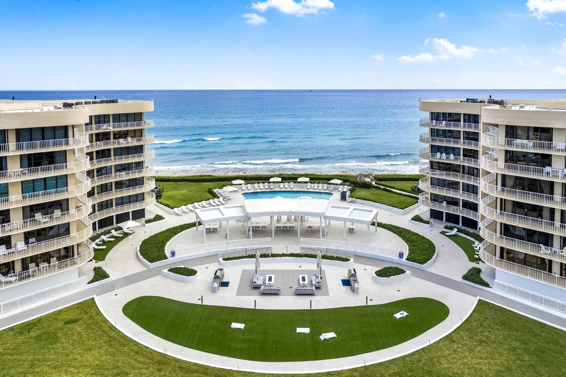 Beautifully maintained 2BA/2BA fully furnished seasonal rental with ocean views from your private wrap around balcony and lawn. Enjoy all new impact windows and sliders throughout, offering easy beach access from all main living areas. Open floor plan with spacious living room and kitchen provides a great space for entertaining. Primary bedroom offers spacious walk-in closet and a king-sized bed. Guest bedroom offers two queen beds and a reach-in closet. One covered assigned parking space plus guest parking. As a full-service building, the Atriums offer a 24/7 door person, newly refurbished pool, gym, Har-Tru Tennis Courts, pickle ball, saunas, direct beach access and more. Minutes to world class dining, shopping and entertainment options! COME SEASON IN THE SUN!