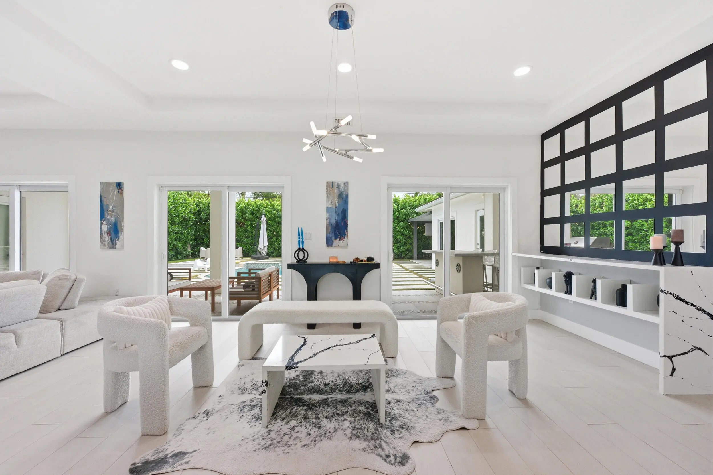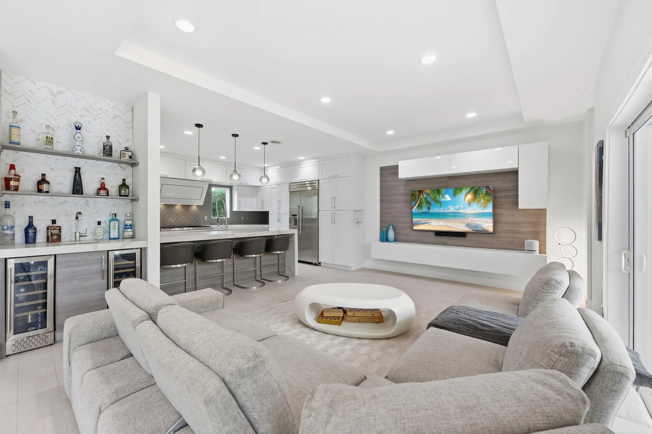 Experience the ultimate Boca Raton lifestyle in this stunning 5-bed, 5-bath modern masterpiece! Tucked away on a quiet street in a top-rated school district, this rare East Boca gem perfectly blends sleek open-concept design with a tropical indoor-outdoor flow. Home Highlights include: Chef's Dream: High-end Thermador appliances, custom cabinetry, and a massive waterfall island. Sun-Drenched Spaces: Incredible natural light and meticulous detail at every turn. Double Oasis: A private front-yard sanctuary and a resort-style backyard featuring a sparkling pool, lounge, and dining areas. Live just minutes from luxury shopping, dining, and pristine beaches. This isn't just a home—it's a retreat!