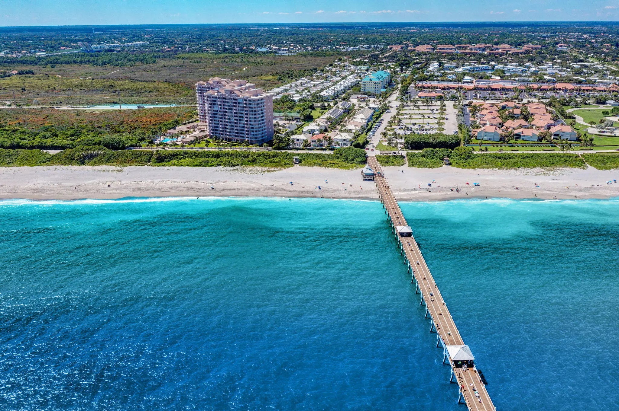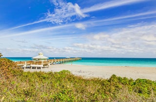 Jupiter is 12 miles north of Palm Beach Shores via I-95 and Rte. 706. Jupiter is one of the few little towns in the region not fronted by an island. Beaches here are part of the mainland, and Route A1A runs for almost 4 miles along the beachfront dunes and beautiful estates.