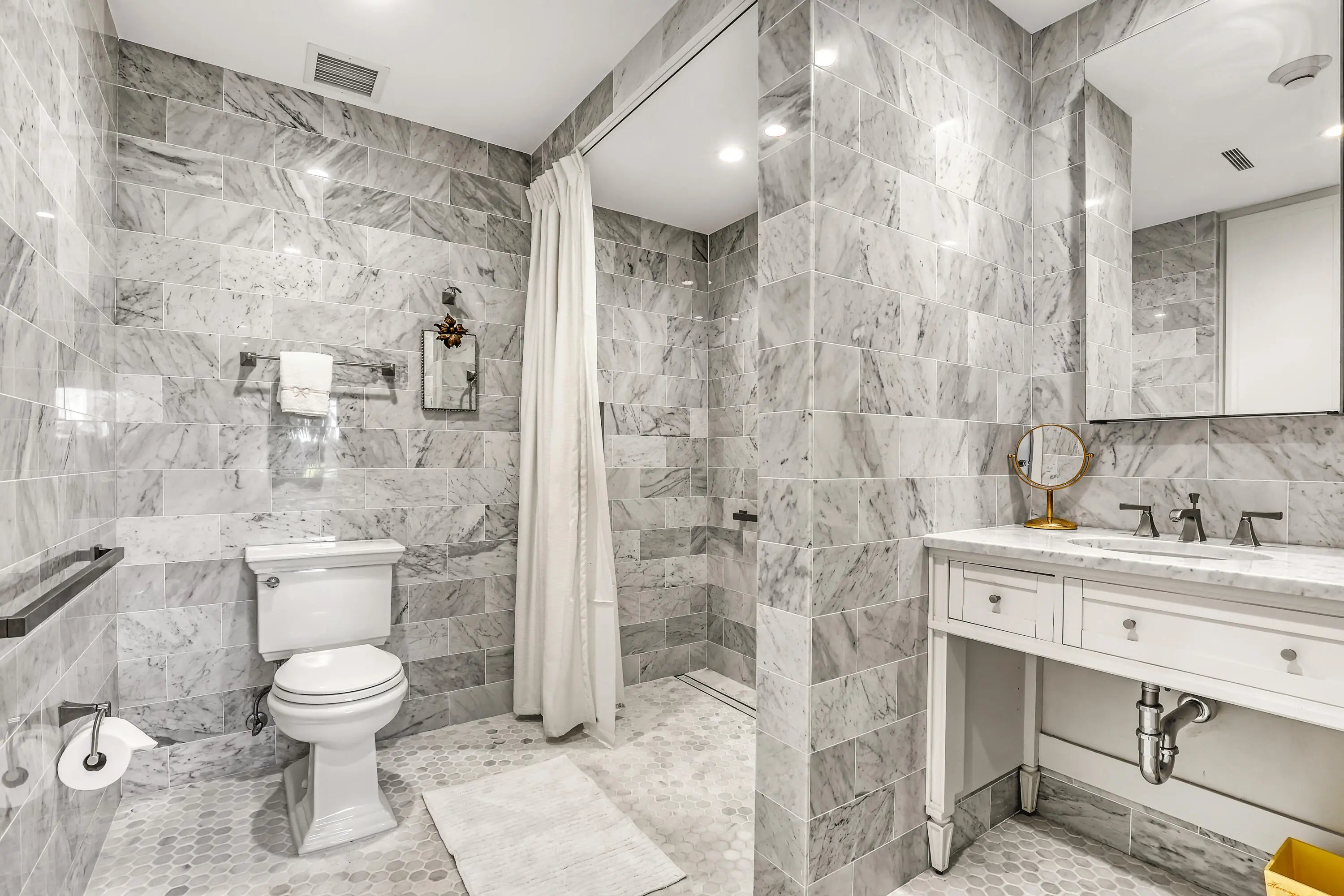 Sunny and bright south-facing one-bedroom plus small den with two full bathrooms. Hardwood floors, marble bathrooms, enlarged kitchen, built-in cabinetry, motorized shades and washer/dryer in unit. This lovely apartment has been renovated and is in lovely move-in condition. A rare find!