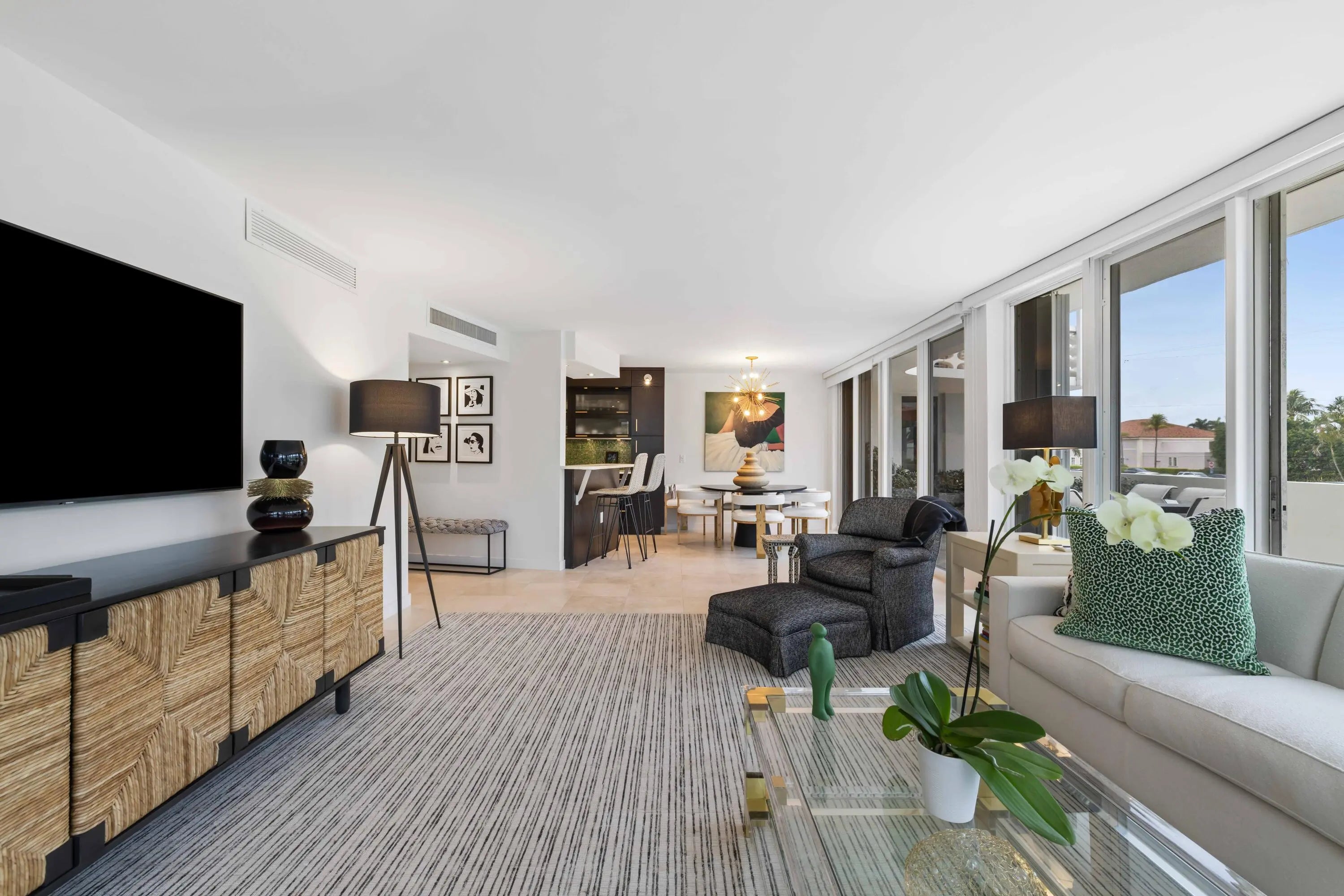 2BR/2.5 BA turn-key in-town condo with deeded beach access and a rare expansive wraparound terrace overlooking Sunrise Ave. Unit features an open floor plan with eat-in kitchen and large owner's suite. Sun and Surf amenities include valet parking, full-time manager, fitness center, pool, and beach access. Building allows pets with restrictions.