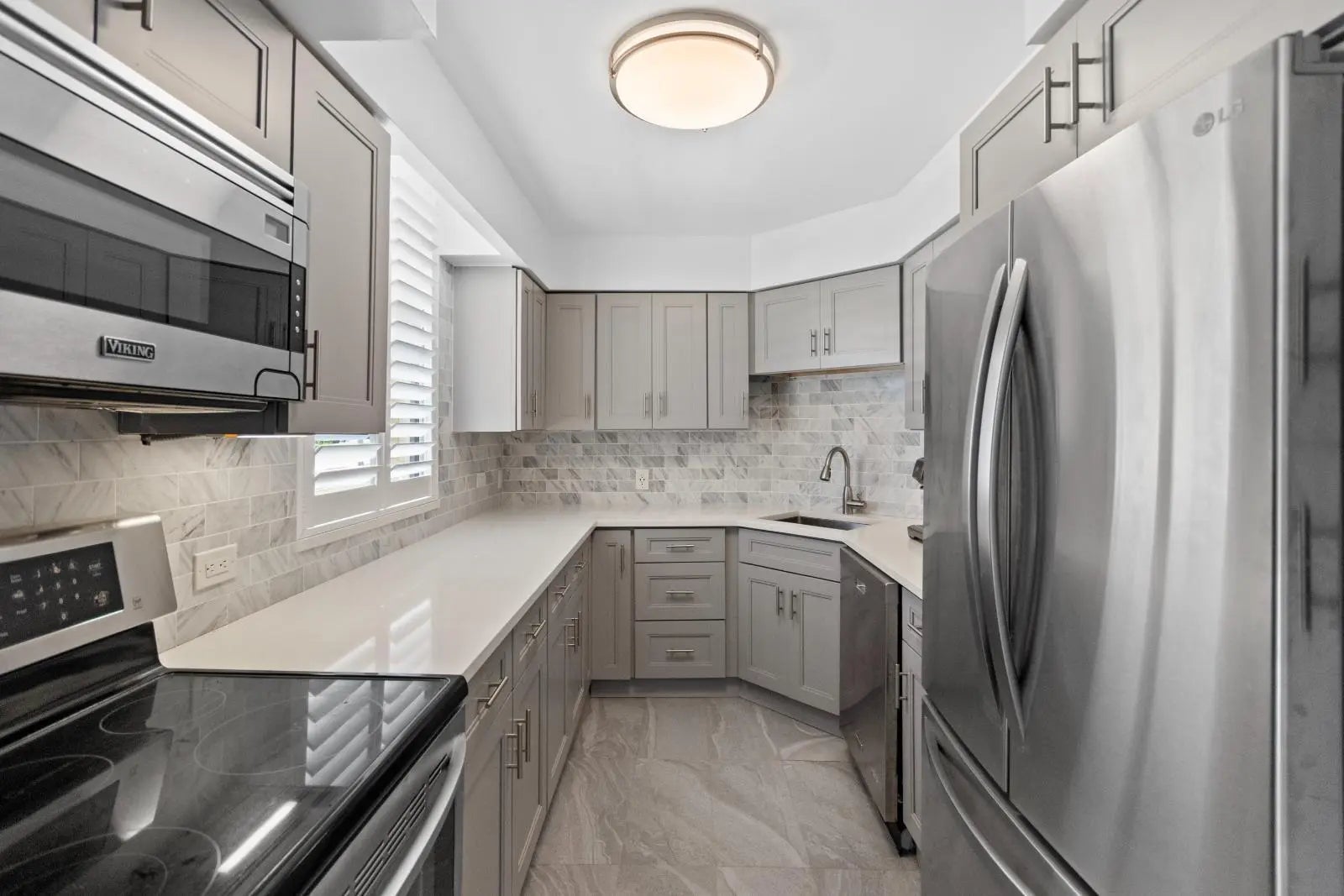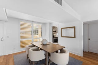 Beautifully renovated 2 bedroom, 2 bathroom residence located in the gated waterfront community of Old Port Cove. This updated unit features wood and tile flooring throughout, along with a stunning kitchen complete with custom cabinetry, marble backsplash, and newer stainless steel appliances. The spacious living and dining areas offer an open layout with serene water views. The large primary suite includes a dual vanity, walk-in shower, and generous walk-in closet. The guest suite offers an updated tub/shower combination. The dining space, kitchen, and both bedrooms have plantation shutters. Enjoy a wide, extended balcony with plenty of space to relax and take in the views, accessible from both bedrooms. Quay North offers excellent amenities, including a waterfront pool, fitness center, community room, covered parking, and more. Walk to Belle's Restaurant by the marina or enjoy the scenic waterfront pathway around the community. Ideally located near shopping, dining, golf, and miles of beautiful beaches.
