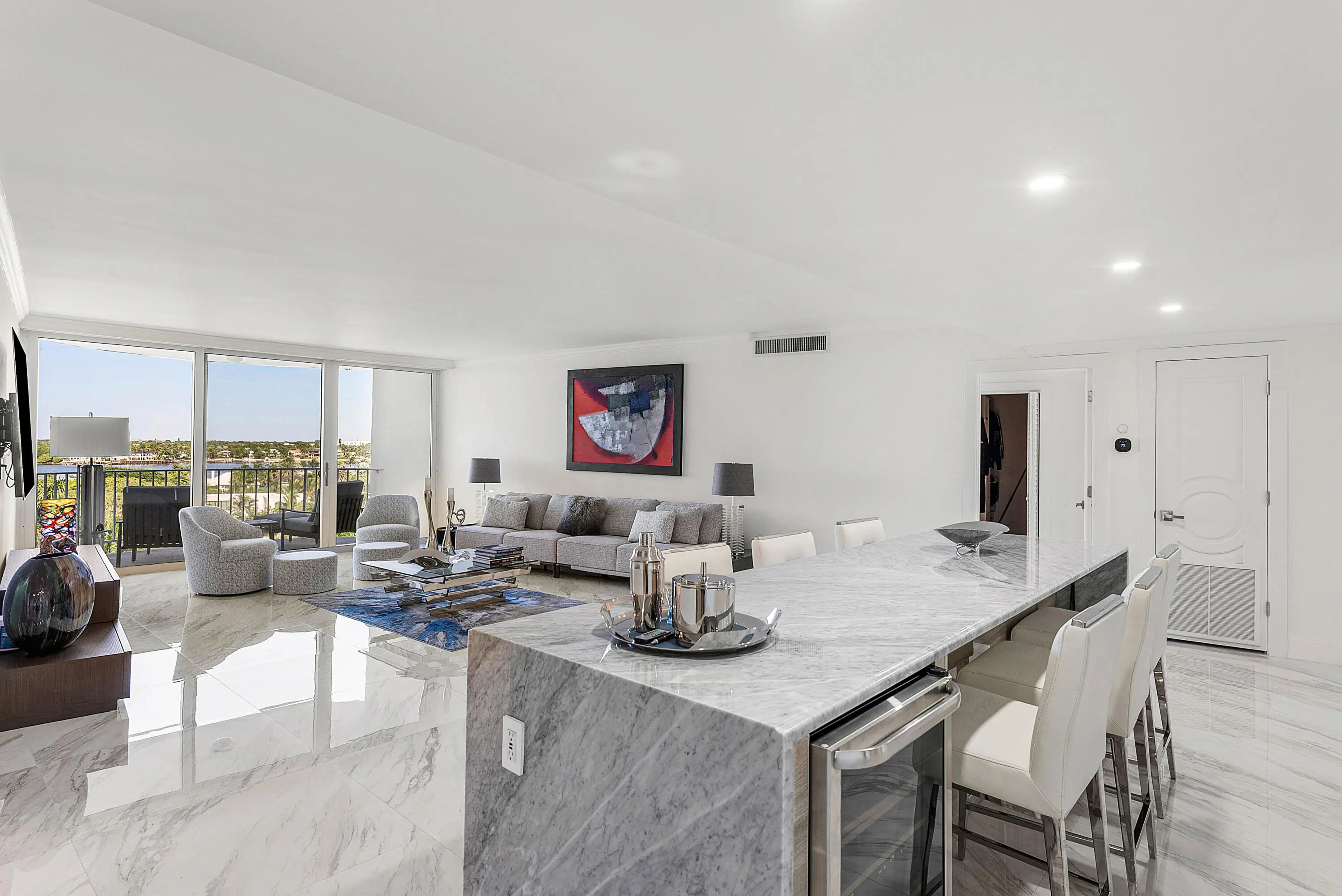 Experience coastal living at its finest in this fully updated, modern 2-bedroom condo boasting stunning Intracoastal views. Located in an oceanfront building with private beach access, this residence features a desirable split floor plan for added privacy and comfort. Enjoy resort-style amenities including a freshwater pool, fitness center, tennis courts, and 24-hour doorman service. Perfectly positioned near the renowned Par 3 Golf Course, you'll have the best of Palm Beach recreation at your doorstep.