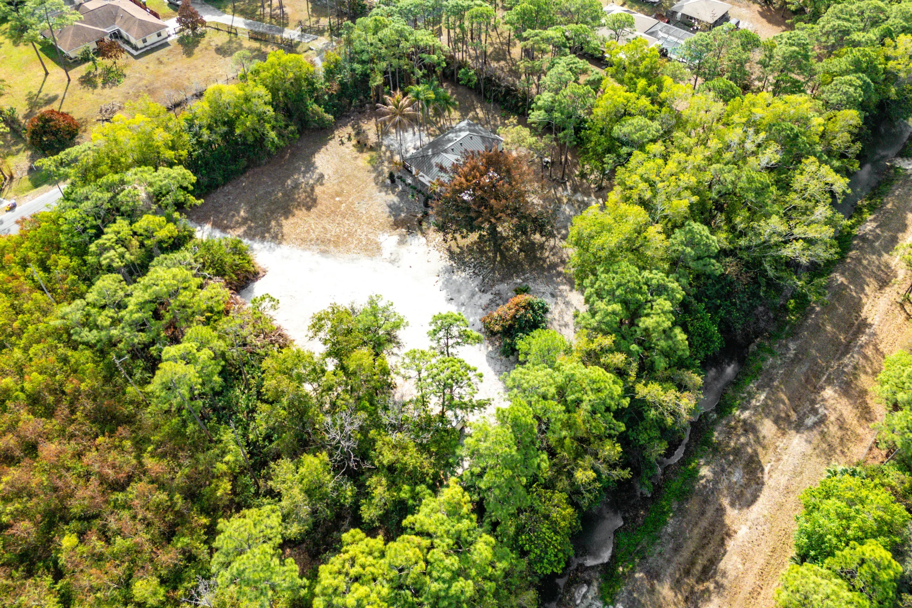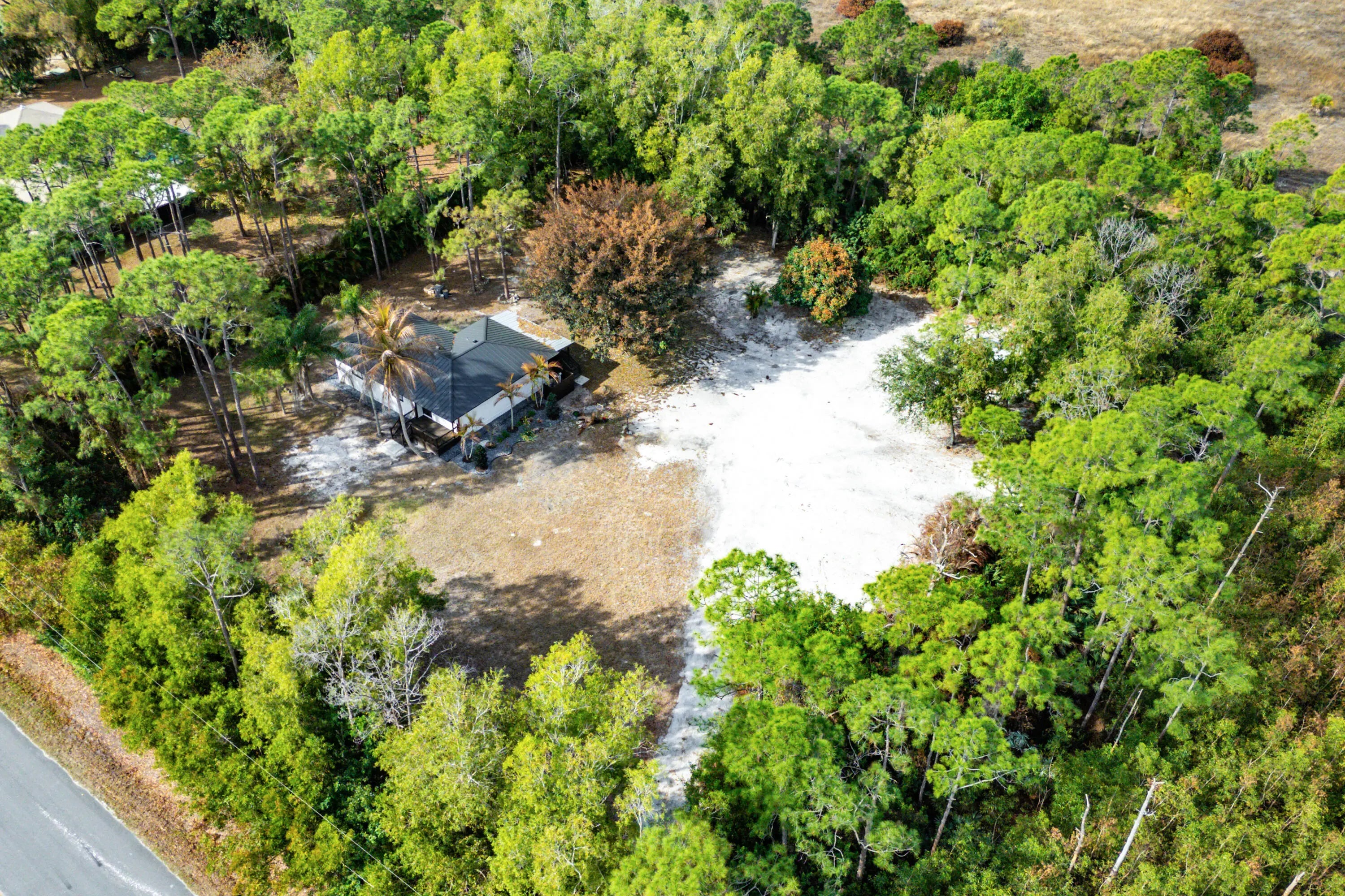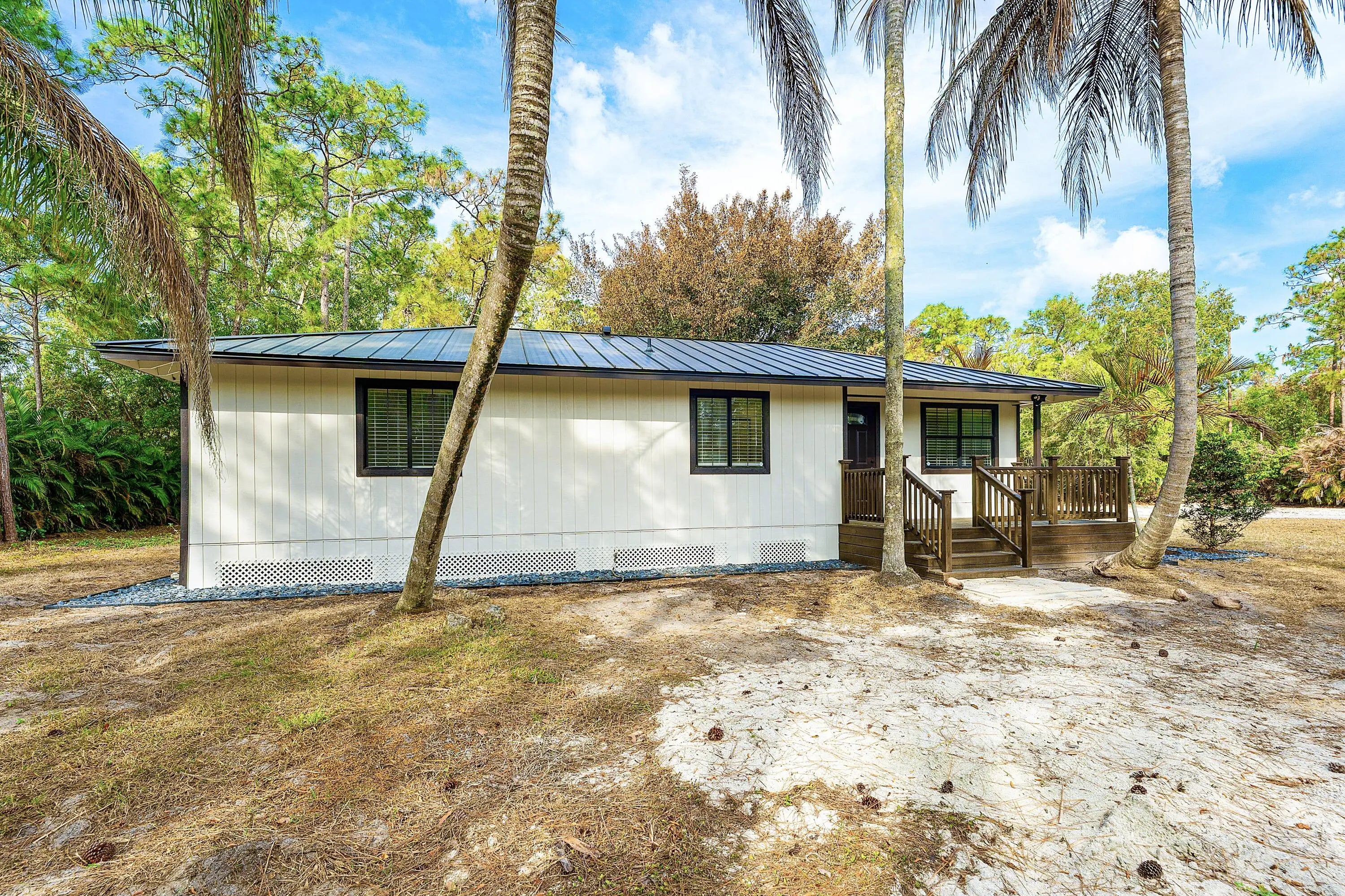 A beautiful private retreat in Jupiter Farms! Situated on an oversized 1.4-acre lot, this fully remodeled 3-bedroom plus den (or optional 4th bedroom), 2-bath home offers privacy, space, and modern upgrades throughout. Step inside to a warm, open floor plan featuring luxury vinyl European oak-look flooring, all new wood siding, fresh interior and exterior paint, new doors and molding, and a stunning new kitchen with quartz countertops, soft-close cabinetry, and newer appliances. Bathrooms have been completely renovated, and major updates include a 2022 roof, newer AC, and newer hot water heater.. Enjoy new front and back porches and west-facing sunsets overlooking the Pine Glades Natural Area. No HOA. Backs directly to the Pine Glades area for exceptional privacy and natural views. The flexible den can easily function as a fourth bedroom, office, or playroom. Extensive interior and exterior renovations make this home move-in ready, with thoughtful upgrades and quality finishes throughout. Oversized lot provides plenty of room for a pool, guest house, toys, or future expansion while still maintaining the peaceful Jupiter Farms lifestyle with no HOA restrictions.