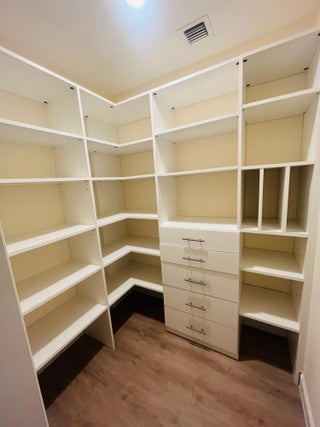 Built-in Features, Cathedral Ceiling(s), High Ceilings, Kitchen Island, Pantry, Vaulted Ceiling(s), Walk-In Closet(s), Bedroom Layout - Split, Closet Cabinetry, Storage