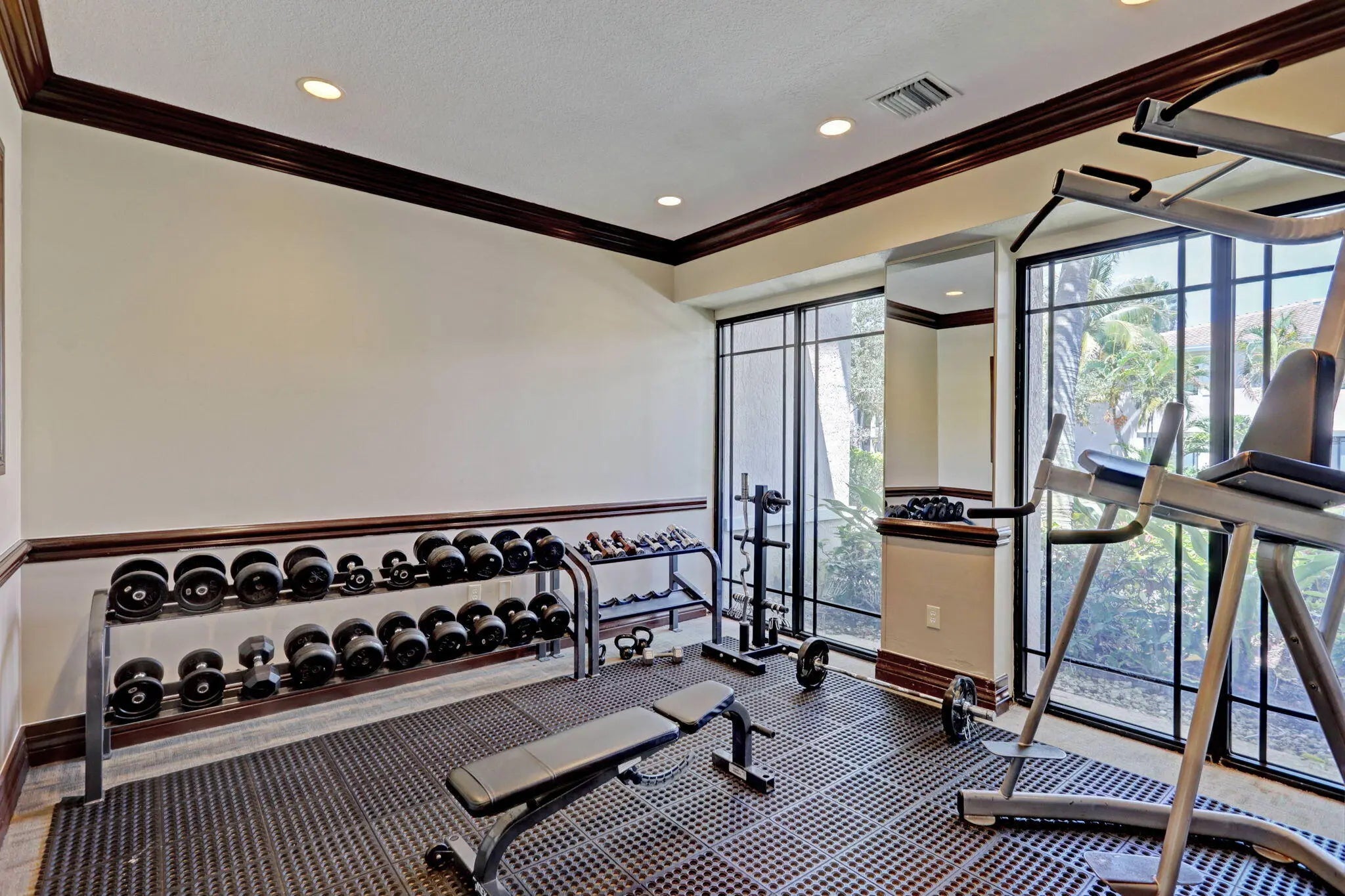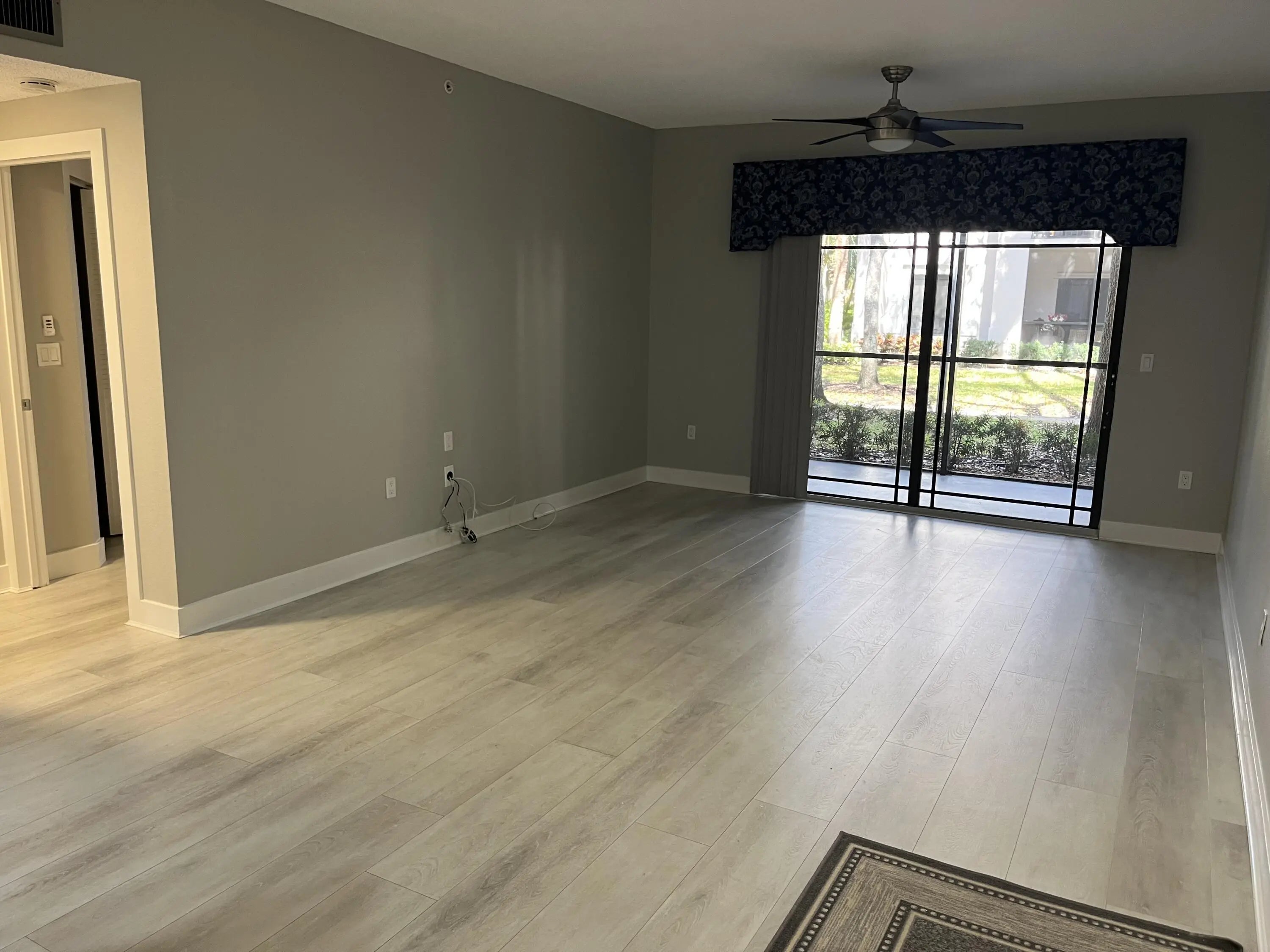 Beautifully and tastefully updated first-floor end-unit condo in the highly desirable San Matera community of Palm Beach Gardens. New A/C system and numerous quality upgrades throughout. Renovated kitchen features additional cabinetry and counter space, new stainless steel appliances, and granite countertops. Updated bathroom with new tile, vanity and shower. Luxury vinyl plank flooring and plantation shutters throughout. Screened patio. Accordion hurricane shutters. Laundry room in unit. Set within a beautifully maintained gated community, residents enjoy resort-style amenities including a sparkling pool and spa, fully equipped fitness center, sauna, steam room, pickleball, billiards room. Walk to The Gardens Mall and Downtown at the Gardens for dining and shopping. No pets.