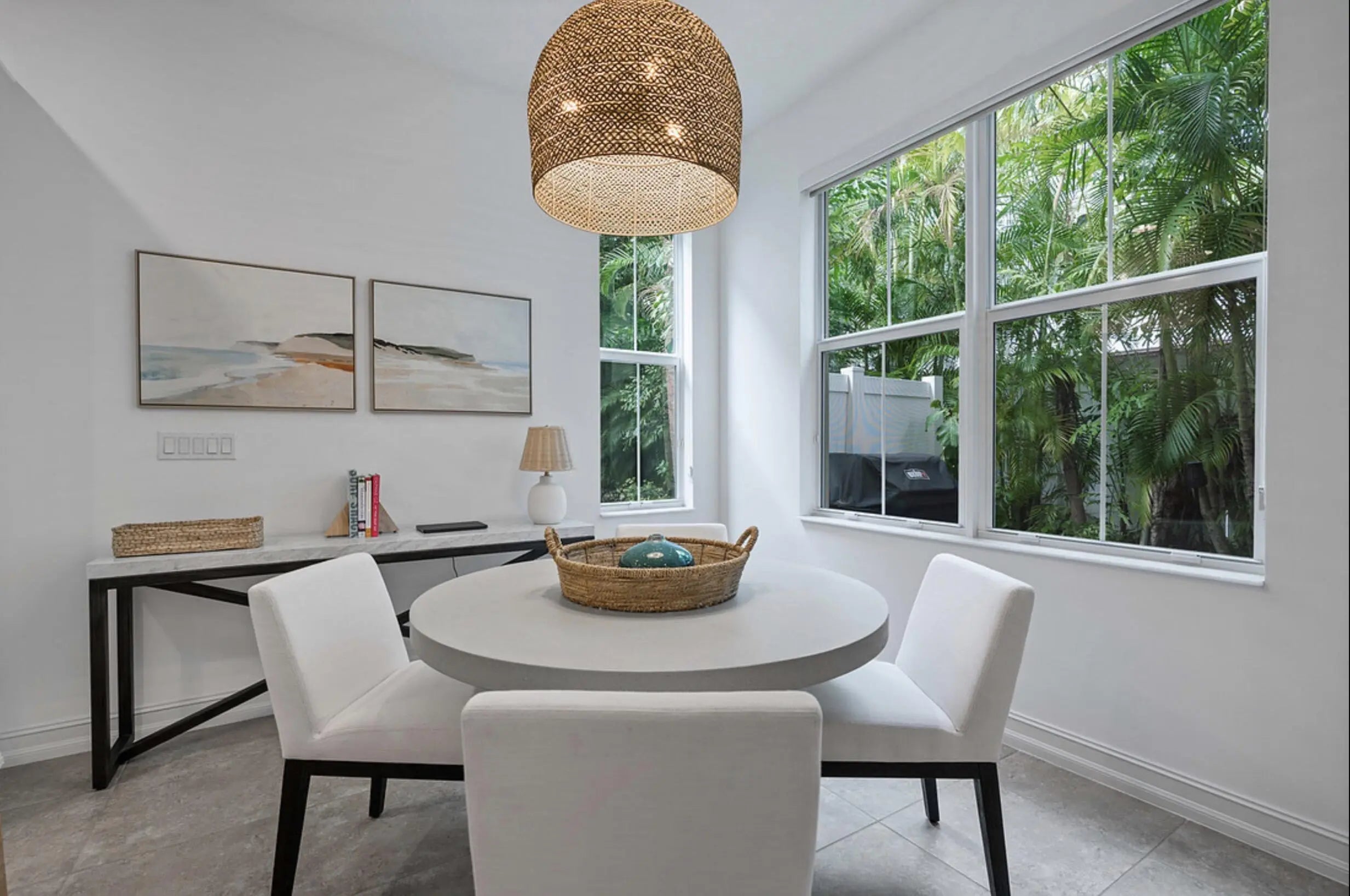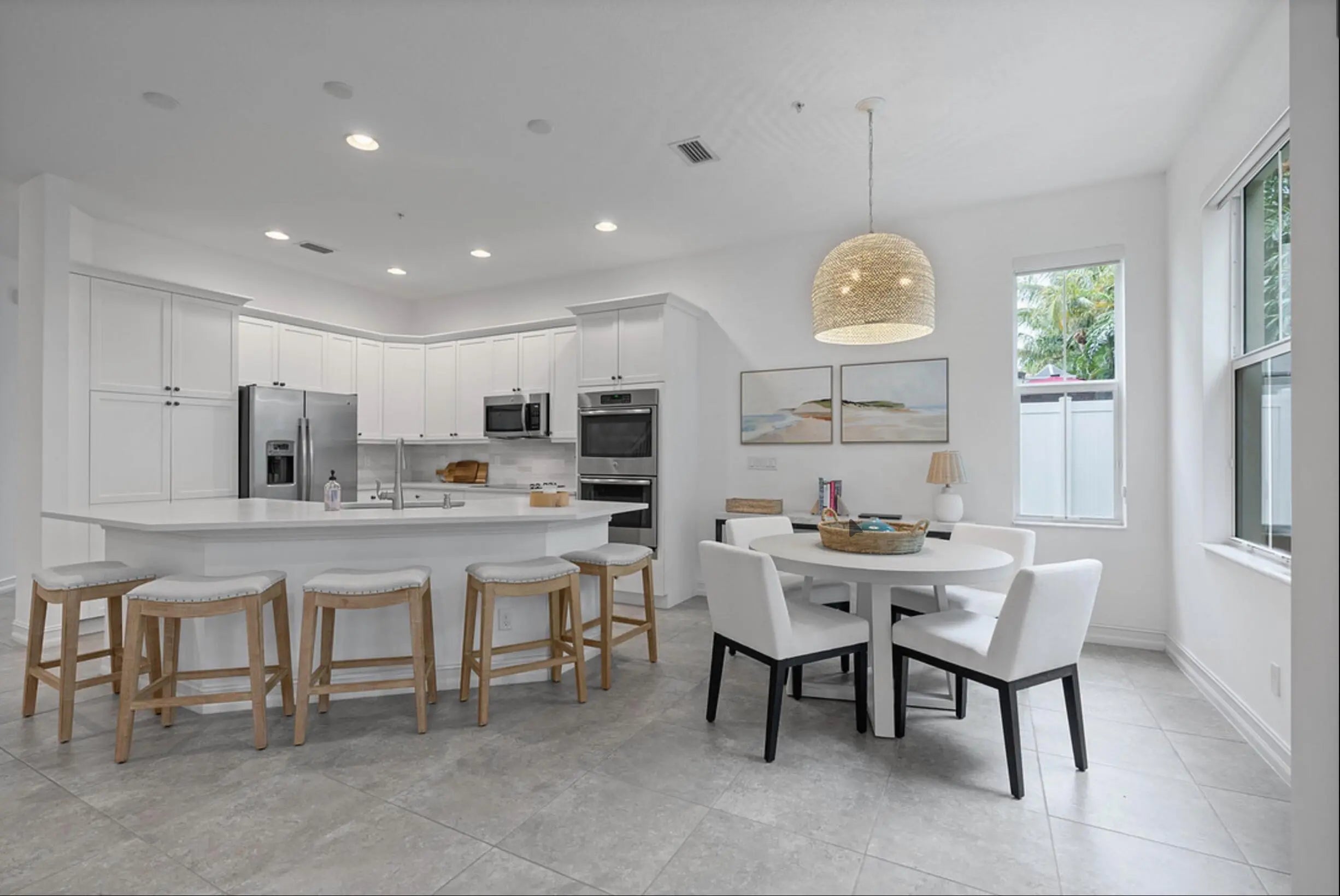 Turnkey, designer-furnished 3BR/2.5BA end-unit townhome with a rare 2-car garage located in the gated community of Hampton Cove in North Palm Beach. Recently renovated with an open-concept living and dining area leading to a private patio with grill. Updated kitchen features stainless steel appliances, oversized island, new countertops, and custom cabinetry. Primary suite includes dual vanities, soaking tub, walk-in shower, dual oversized closets, and private balcony. Two additional bedrooms with full closets, full bath, and laundry room. Community offers a heated, resort-style pool. Conveniently located minutes to the beaches of Singer Island and Juno Beach, North Palm Beach/Palm Beach Gardens shopping and dining, Port 32 boat storage and 2 marinas, intracoastal waterway and PGA golf. Approximately 15 minutes to Palm Beach International Airport. Property is also available for seasonal rental at $8,650 per month.