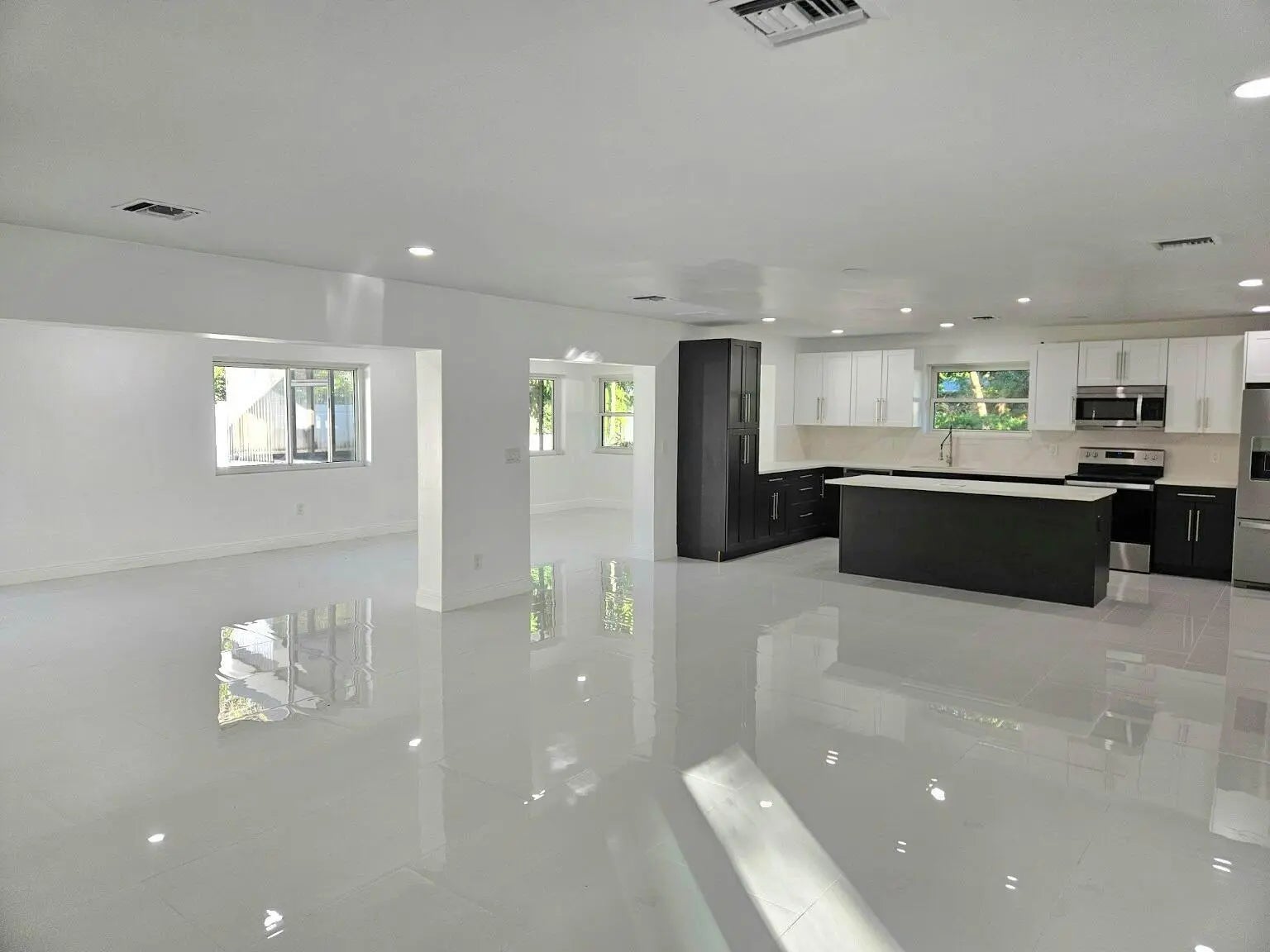 Welcome to one of the largest and most beautifully updated homes in Hollywood Hills. Situated on a quiet, oversized corner lot, this 4-bedroom, 3.5-bath home offers just under 2,700 SF of bright living space--rare for the neighborhood. Major upgrades include a newer tile roof, impact windows, full PVC plumbing, all new interiors, including kitchen and bathrooms, and abundant natural light throughout. A standout feature is the private secondary suite with its own entrance, bathroom, closet, and AC--perfect for guests or in-laws. Enjoy a resurfaced pool, new pool deck, turf yard, full PVC privacy fence, and a dedicated cabana bath adjacent to the pool. Two driveways provide exceptional parking. Move-in ready and ideally located near shopping, beaches, schools, and houses of worship. Updates Include: New Kitchen New Bathrooms All new PVC pipes Impact windows and doors 2020 Tile Roof Updated Electrical LED Lighting New Paver Pool Deck New exterior cabana bath near the pool 2 Primary Suites
