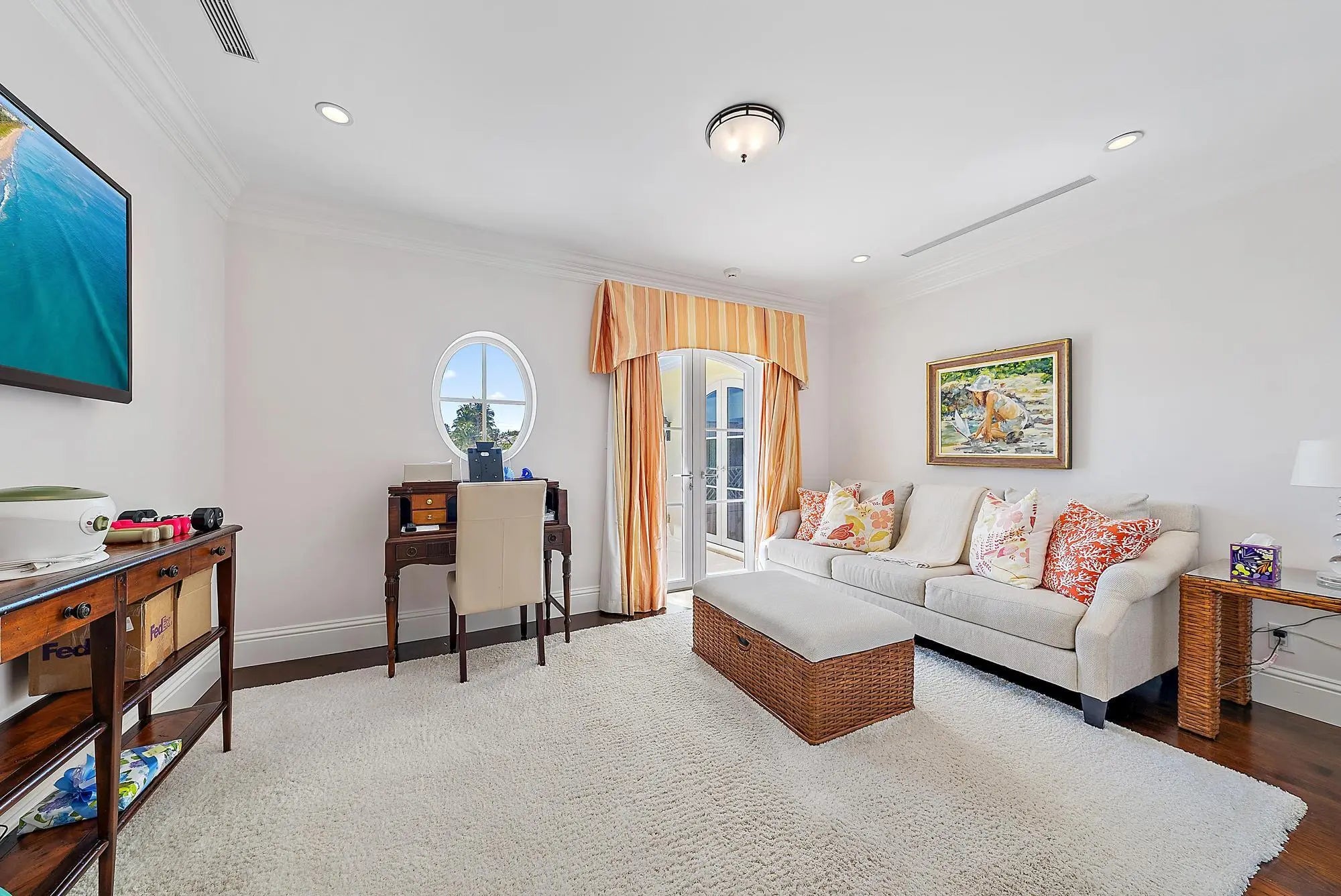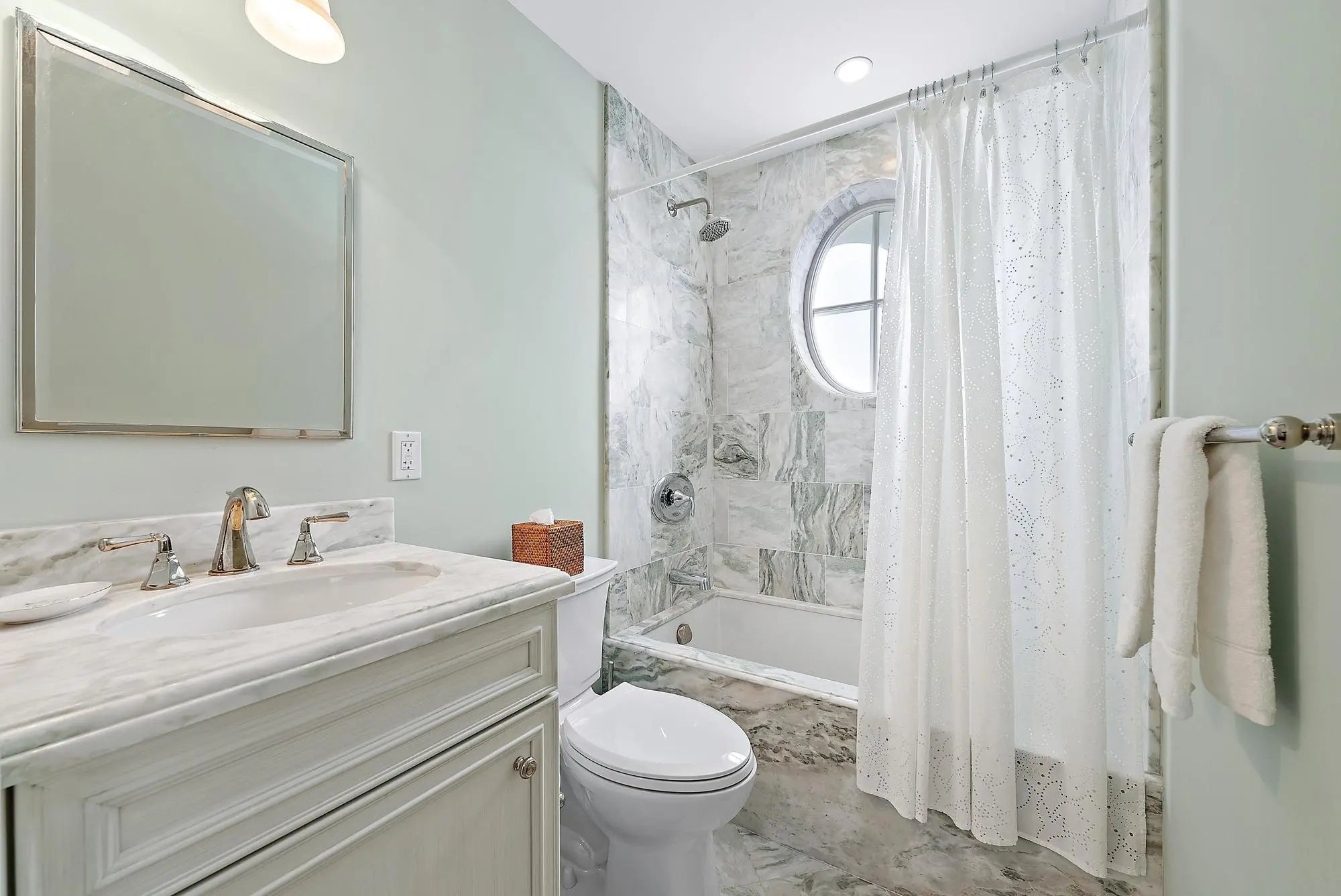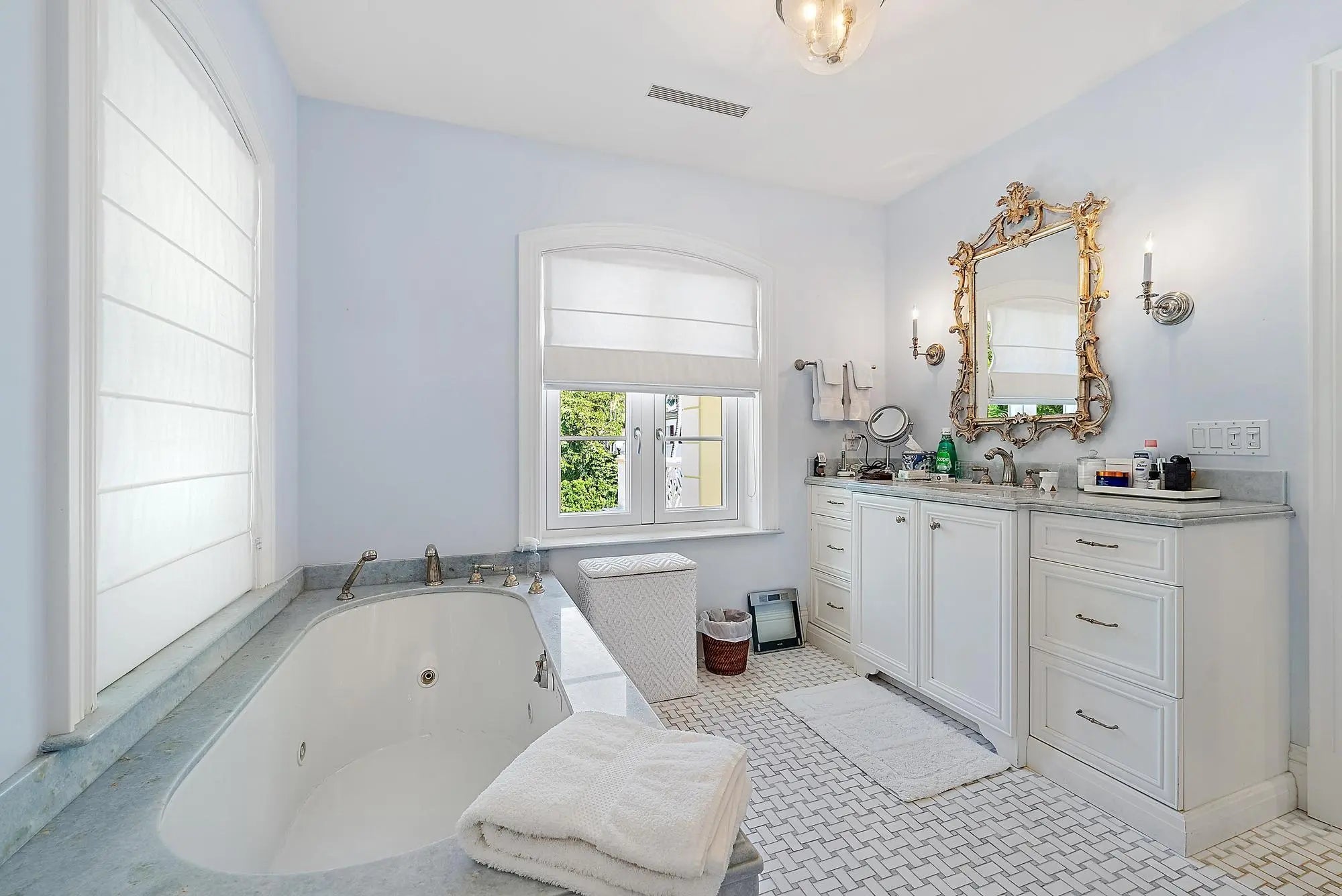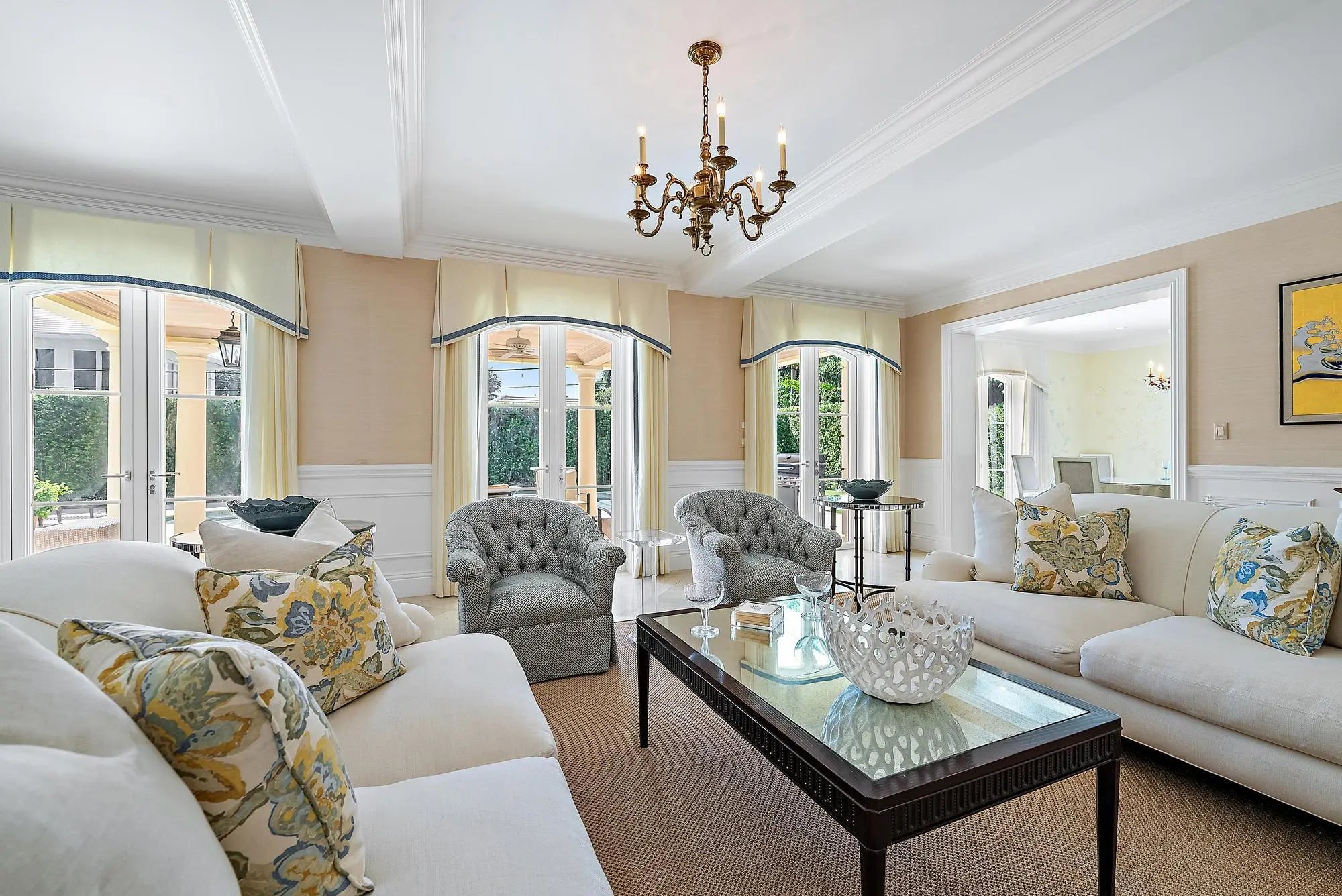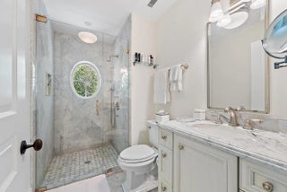 This beautiful, 2-story Bermuda style home offers a wonderful floor plan with 5 bedrooms and 7 bathrooms. It features marble and wood floors, a custom cypress paneled library, separate dining room, a heated pool, and covered patio. Additional amenities include an elevator, generator, fireplace, up and down-stairs laundry rooms, top of the line appliances and much more. This home offers a serene and sophisticated retreat perfectly balancing privacy with convenience. Great location with the beach, bike trail and mid-town shopping area just moments away.