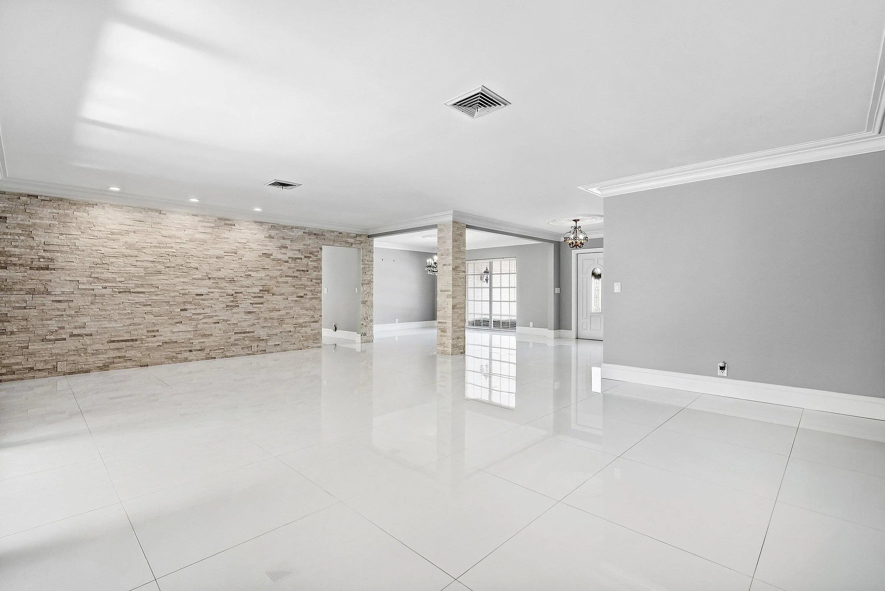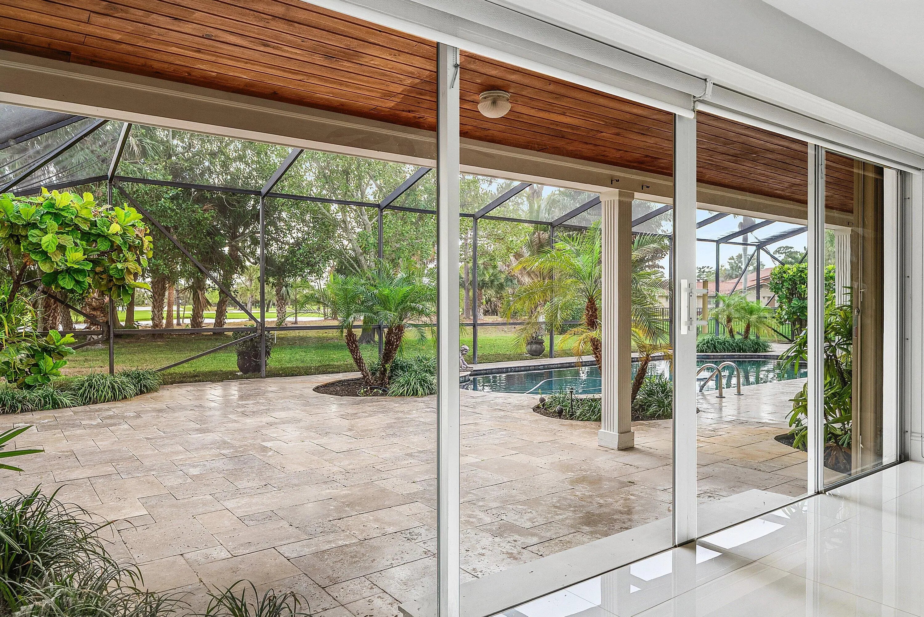Move-in ready and available for rent - unfurnished. Beautiful 4-bedroom, 3.5-bath home on a private golf course lot in the gated City of Atlantis. Spacious layout with separate living and dining rooms, tile floors throughout, and a renovated kitchen featuring island seating, wood cabinetry, wall oven and microwave, stainless steel appliances, and a gas stove with pasta pot filler. The kitchen opens to a large covered patio and screened lagoon-style pool with marble decking overlooking the golf course. The primary suite opens to the patio/pool and features a renovated bath with walk-in shower. Split floor plan provides privacy for family and guests. Circular driveway and 2-car side-load garage. Unfurnished. No smoking. No pets. Conveniently located near beaches, I-95, and both Palm Beach Fort Lauderdale airports.