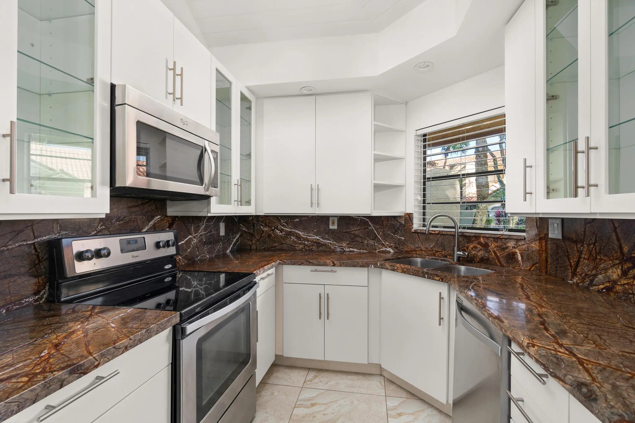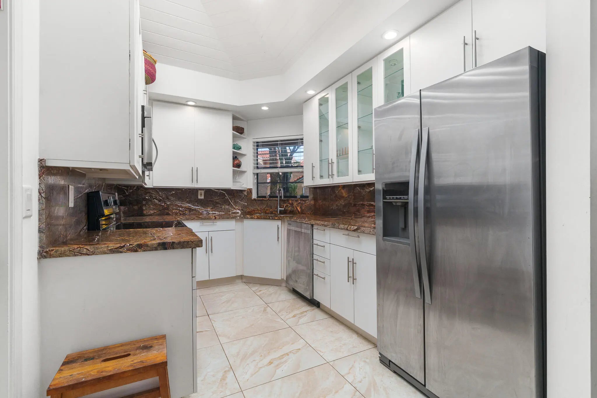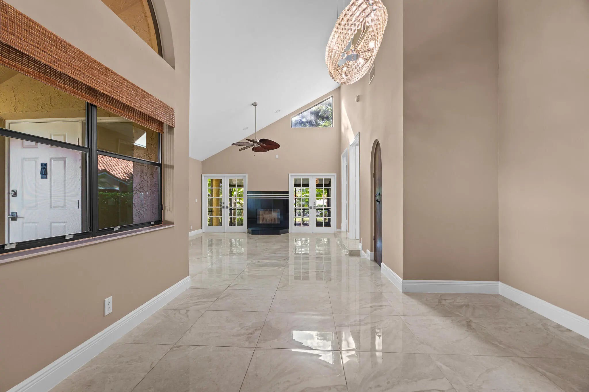 Beautifully upgraded true corner villa in the desirable Boca Pointe - Meridiana community, offering spacious living with 2 bedrooms and 2 bathrooms. The home features soaring vaulted ceilings, a split bedroom floor-plan, brand-new AC, washer, and dryer, and a screened patio overlooking a lush tropical garden, perfect for enjoying Florida's indoor-outdoor lifestyle. Residents enjoy easy access to the pool, scenic biking and walking paths, and the peace of mind of a manned, gated community with resort-style amenities including a heated pool, jacuzzi, and included cable.