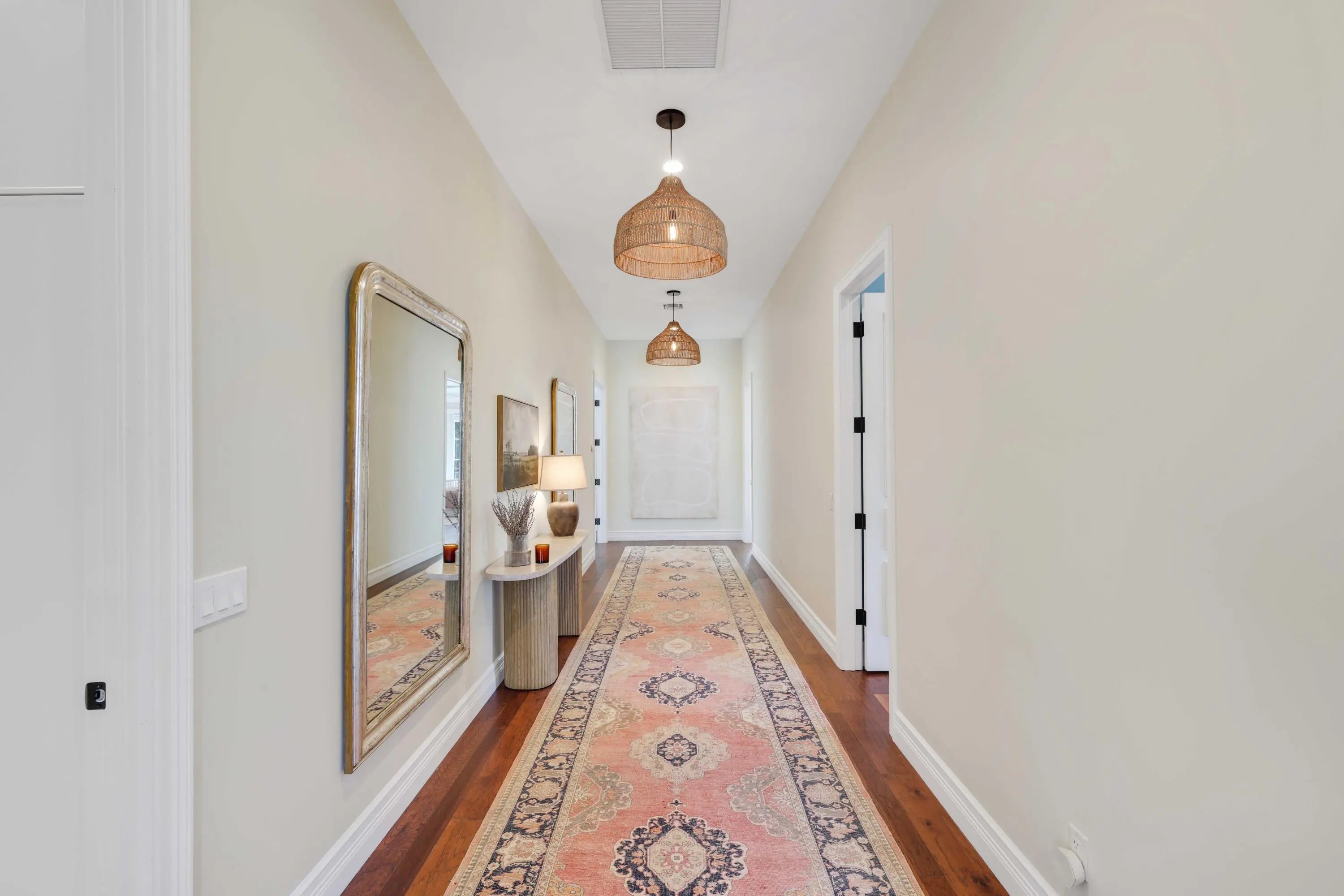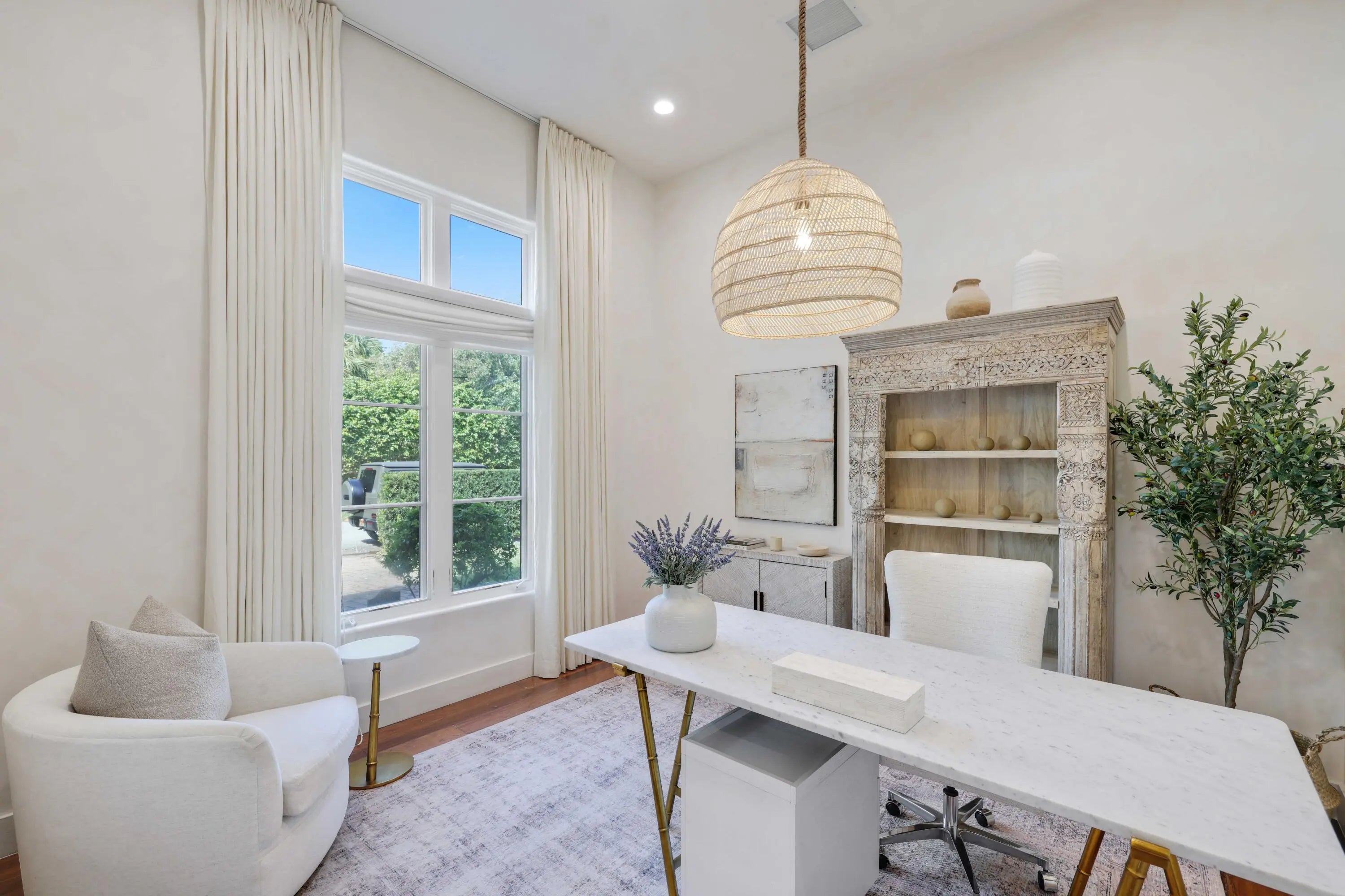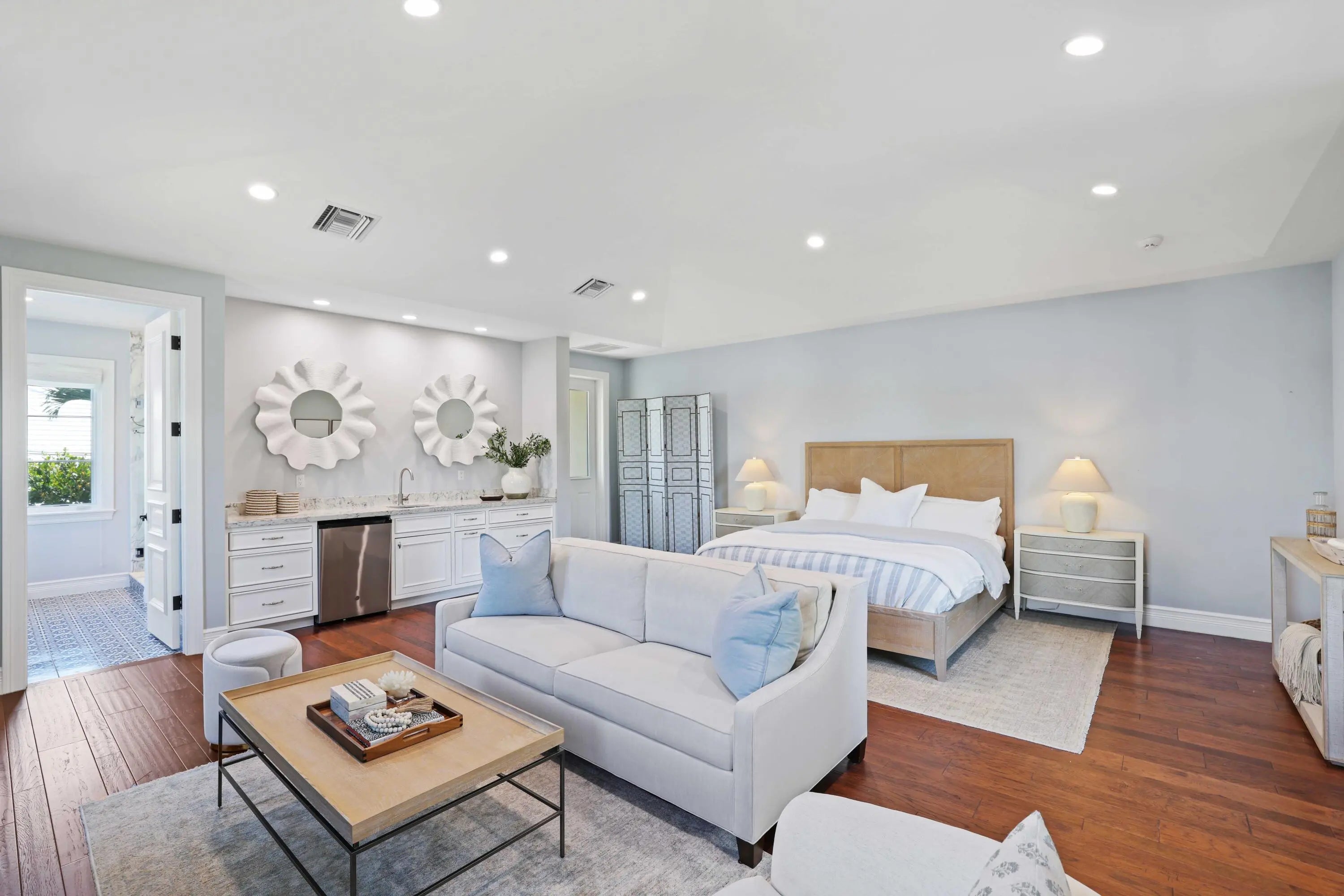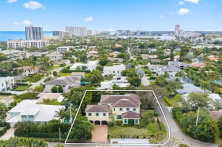 Perched on an expansive lot in the heart of East Boca, this exquisite estate, designed by renowned architect Randall Stoftt and built in 2018, offers 5 bedrooms, 6 baths, an office, billiards room, and a private guest house with kitchenette and full bath--creating exceptional flexibility for guests or extended family. The home boasts nearly 6,500 square feet of refined living space --only two blocks from the beach and minutes to Mizner Park. From the moment you enter, the home radiates warmth and sophistication with soaring ceilings, rich hardwood floors, custom millwork, paneled architectural details, high-end doors, and designer statement lighting throughout. Lutron wifi-enabled recessed lighting and built-in ceiling speakers elevate both ambience and everyday living. The residence can be offered fully furnished with high-end designer custom furniture and curated art, delivering a truly turnkey luxury lifestyle. The main living areas flow beautifully for entertaining. The oversized open chef's kitchen is a showpiece featuring custom wood cabinetry, dual oversized islands, quartz and marble countertops, Italian farmhouse sinks, a Le Cornue gas range with double oven, Sub-Zero refrigerator, Bosch dishwasher, and a fully equipped butler's pantry with secondary refrigerator and custom storage. The kitchen opens into the spacious dining room and expansive, sun-filled great room complete with a bar, wine fridge, and ice maker. Impact glass French doors line the living and dining rooms and lead out to the stunning backyard. Custom drapery throughout adds depth and elegance. Outdoors, the property offers a true resort-style retreat with covered patios, summer kitchen with built-in grill and bar seating, saltwater pool, outdoor shower, lush privacy landscaping, and fully fenced yard -- all enhanced with sound systems and entertaining features. The oversized lot creates a generous space for entertaining or relaxation -- a rare offering this close to the ocean. In addition to the living areas, the first floor offers a luxurious library/billiards room, an office, and guest room with walk-in closet and ensuite bath. The second floor of the home boasts an additional office, the primary suite, refined guest bedrooms with ensuite baths and walk in closets, and a fully renovated laundry room with bespoke cabinetry, new appliances, a steam closet, sink, and tailored storage solutions. The guest house boasts a separate private entrance, a kitchenette, and full bathroom. The primary suite is a serene private retreat with a spacious sitting area, dual walk-in closets, spa-inspired bath with freestanding tub, oversized shower, dual vanities, and French doors leading to a covered private patio overlooking the backyard oasis. Additional features include impact windows and doors, a whole-home generator, propane system, four air conditioning units, a whole-house water filtration system, instant hot water heaters, full security system, concrete block on both floors, fresh paint, and a three car finished garage with epoxy flooring, custom storage, and a 220-volt EV charger. Just blocks from Boca's pristine beaches and minutes to world-class dining, shopping, and the iconic The Boca Raton, this exceptional estate offers a rare combination of architectural pedigree, warmth, space, luxury finishes, and coastal lifestyle -- welcome home! MAKE SURE TO CHECK OUT THE VIDEO TOUR OF THE LISTING!