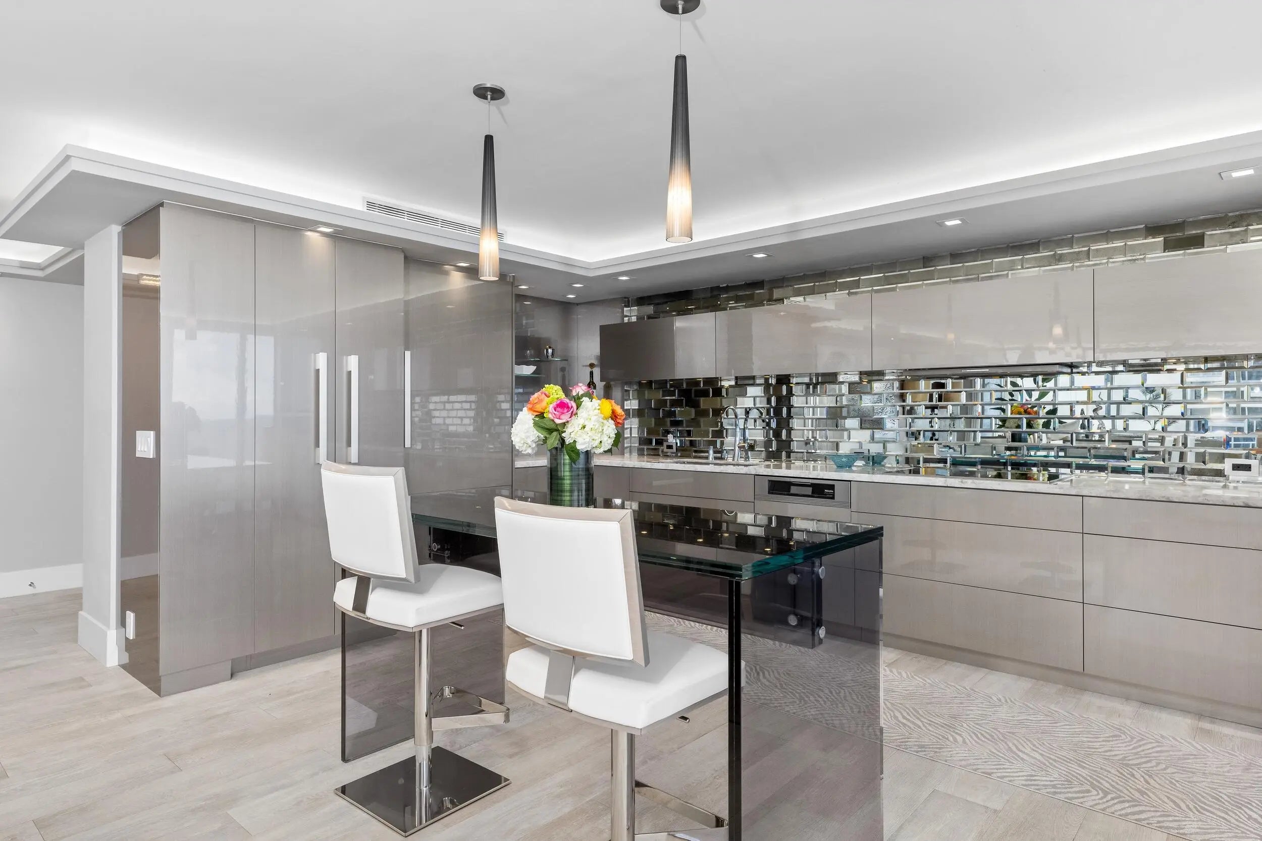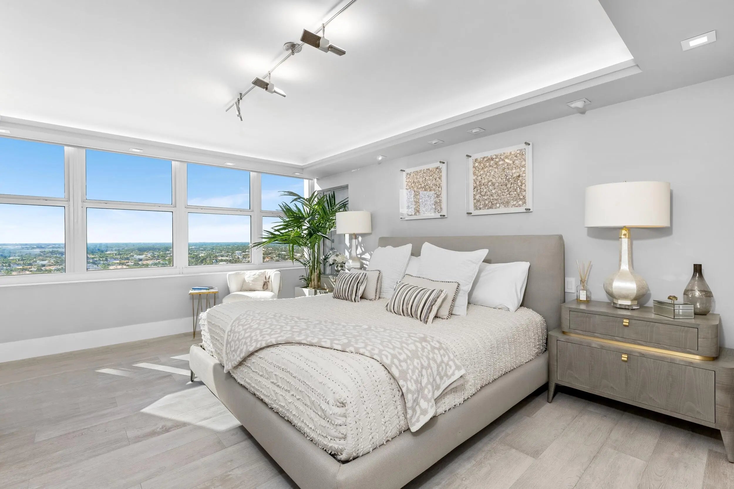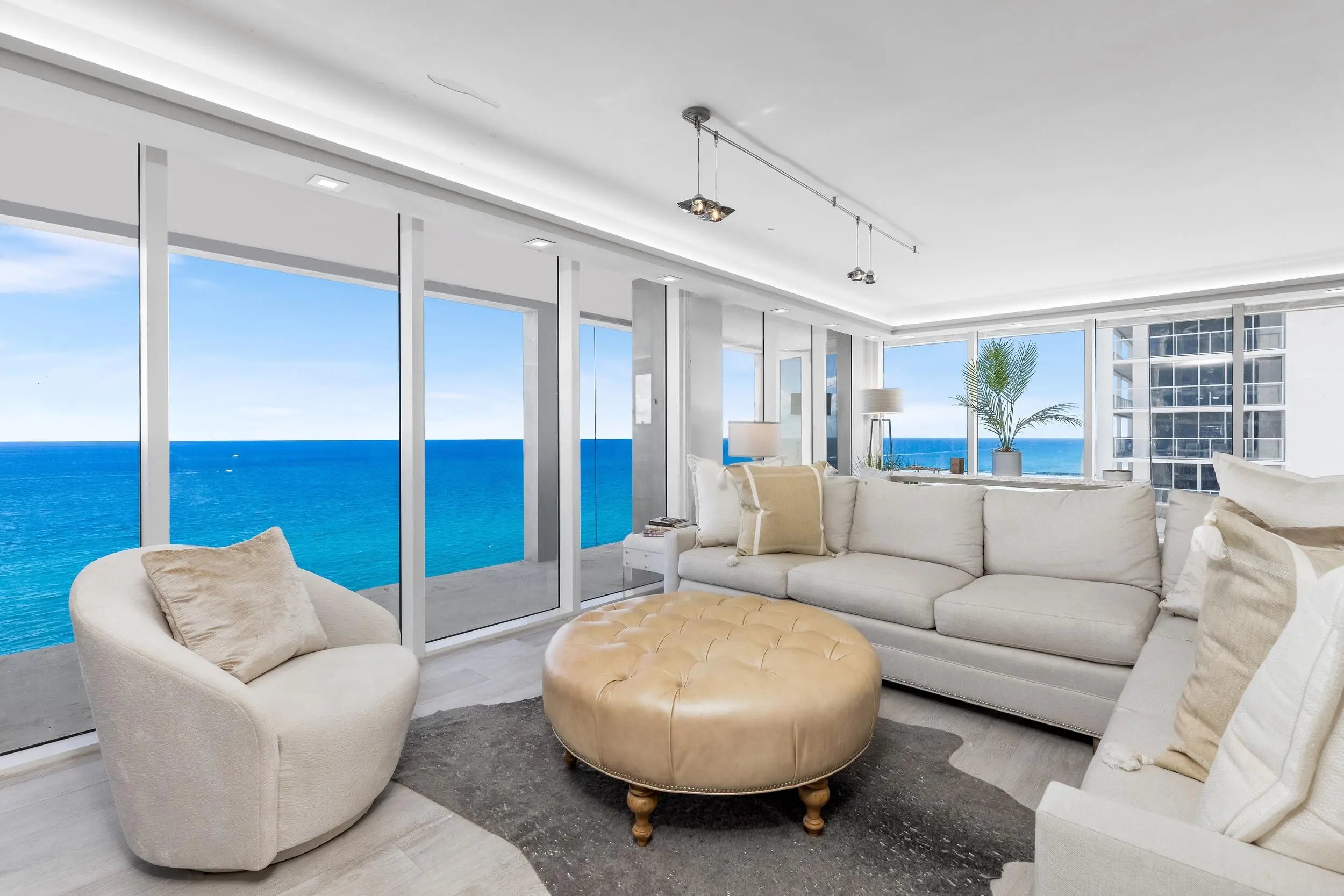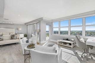 Experience the pinnacle of coastal elegance at 2800 South Ocean Boulevard, Residence 18F. This distinguished southeast corner residence, perched high above, offers sweeping panoramic ocean views. Encompassing approximately 2,150 square feet, this meticulously renovated 3-bedroom, 2.5-bathroom home features an expansive oceanfront wrap-around balcony, complemented by an additional covered balcony off the west-facing primary bedroom--perfect for savoring both sunrise and sunset in sublime comfort.Crafted with contemporary refinement and practical sophistication, the open-concept kitchen and living areas harmoniously blend, creating an ideal setting for both intimate gatherings and grand entertaining.