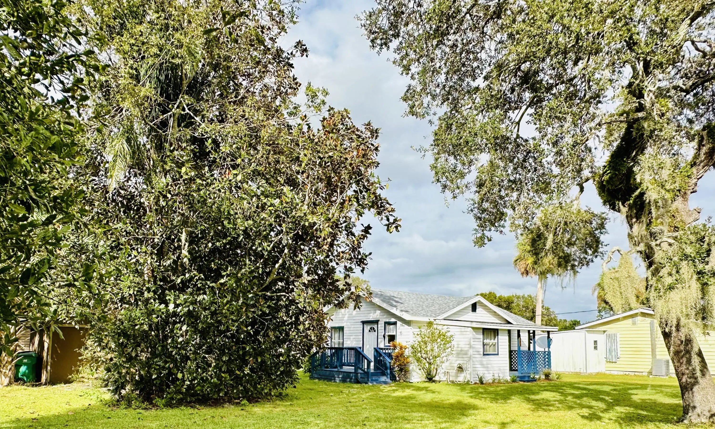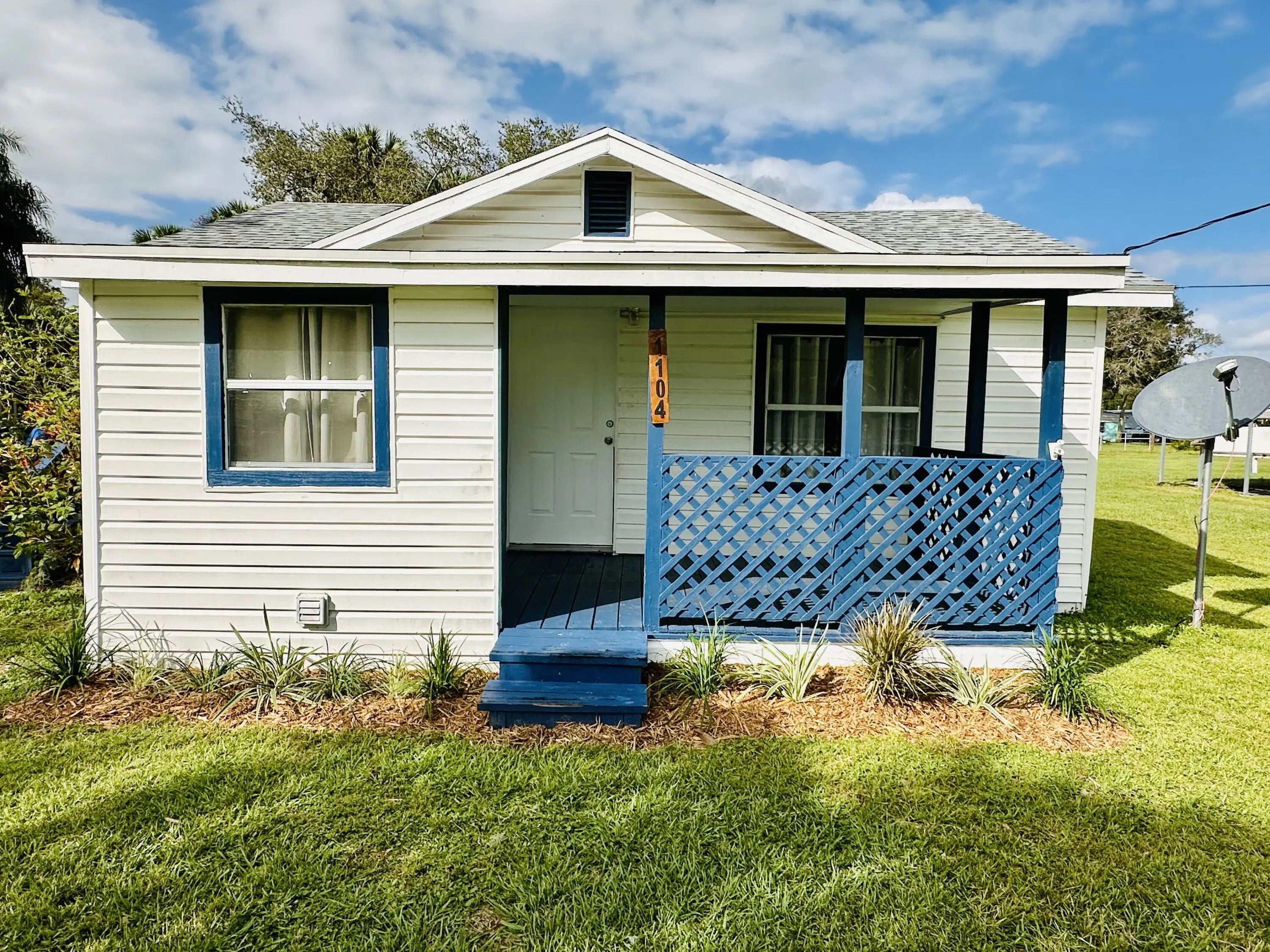 NON-Flood Zone X, in desirable SW Section, updated in 2022 and fully furnished,1960, wood frame, single family home on large .36ac lot. 2bed/1bath w/ laundry rm, living rm, & open kitchen. Covered front porch, open side porch. Two sheds w/ electric. One w/ window unit, another w/ attached lawnmower shed. Quarterly pest control, 2022 Roof, new mini split A/C w/ heat installed 2023. Public water, septic pumped & inspected w/ new lid. Conveniently located within walking distance to downtown shopping, schools, & 2 mins from boat launch. Front and rear of home accessible for ample parking. A non-paved, dead end easement road borders rear N property line. Grandfather Oak, Magnolia, & Palms. WELL MAINTAINED HOME! No owner finance. In house loan officer available, se Habla Espanol.