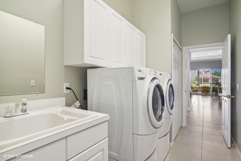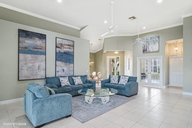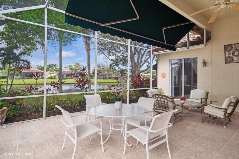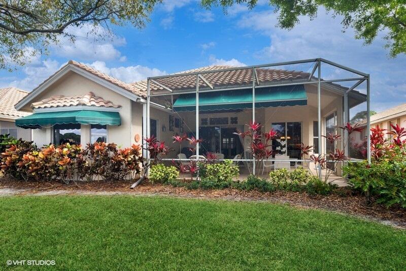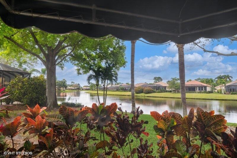 TAKE A SECOND LOOK!NEW ROOF & GUTTERS FEB. 2025! NEW SS OVEN, COOK TOP & MICROWAVE FEB. 2025 & NEW LAMINATE FLOORS IN 2 BEDROOMS INSTALLED FEB. 2025. Welcome to this beautiful Sawgrass floor plan located in highly desirable PGA VILLAGE, offering breathtaking lake views and an abundance of space. As you enter, you're greeted by a spacious Living room with adjacent formal dining area & a bright open kitchen featuring stainless steel appliances, sleek granite countertops, a cozy breakfast nook, and a convenient snack bar--perfect for entertaining or enjoying everyday meals. The master suite is a true retreat, with a private sitting area and sliding doors that open to the peaceful covered lanai, where you can unwind while enjoying the serene surroundings. The lanai is enhanced with an automatic awning for added comfort and convenience. This home is designed with privacy in mind, thanks to the thoughtfully planned split-bedroom layout, making it ideal for hosting overnight guests. There's also plenty of room to add a pool, should you desire to expand your outdoor living space. Included in your HOA dues are a range of amenities to enhance your lifestyle, including cable, internet, yard maintenance, and access to a wealth of recreational facilities and social activities. The Island Club, located within the community, provides a resort-style pool, pickleball courts, tennis, and much more, ensuring you'll always have something to enjoy.