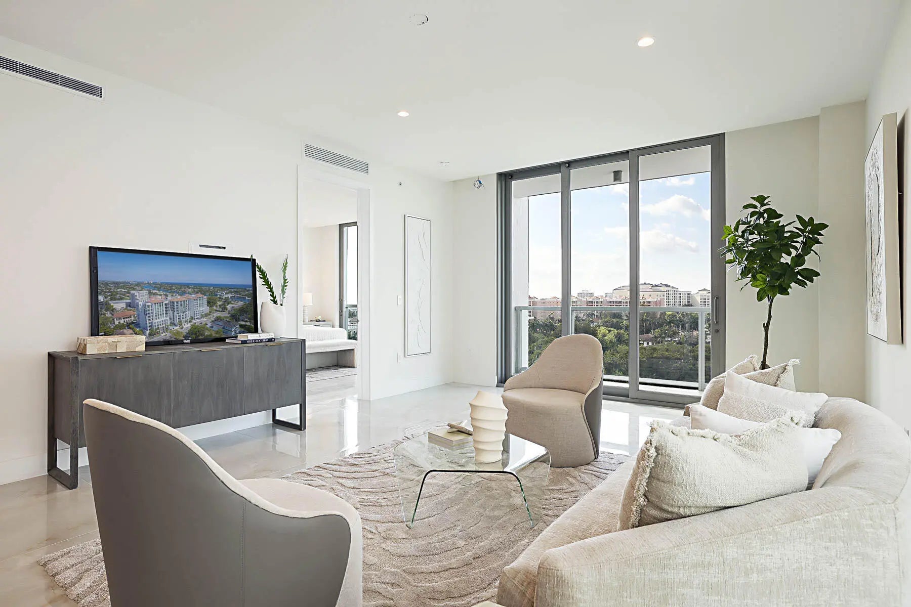 Indulge in breathtaking panoramic views of the Atlantic Ocean, Intracoastal Waterway, and the prestigious Boca Raton Golf Course--all from the comfort of your residence, without the need to cross the Intracoastal bridge. Gaze upon the iconic Boca Raton Resort as you savor the unparalleled luxury of one of Boca Raton's most exclusive boutique buildings.This exquisitely designed residence features a spacious living room, den, and a chef's kitchen adorned with sleek Italian cabinetry, premium Wolf appliances, and a SubZero refrigerator. The master suite offers a generously sized walk-in closet and a spa-inspired ensuite retreat. Enhancing the outdoor living experience, the terrace is equipped with a built-in Wolf gas grill--one of the few buildings in Boca Raton to offer gas cooking