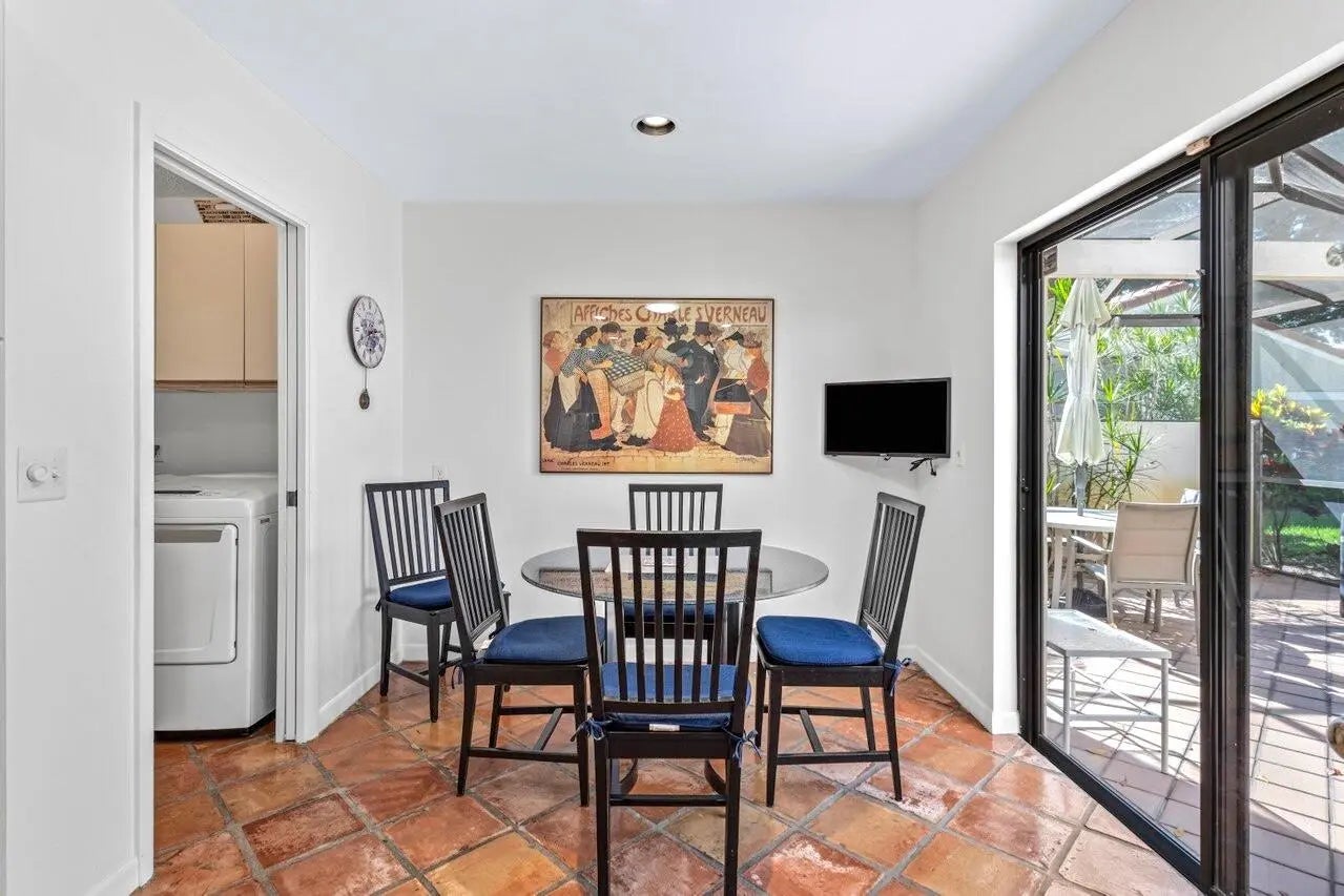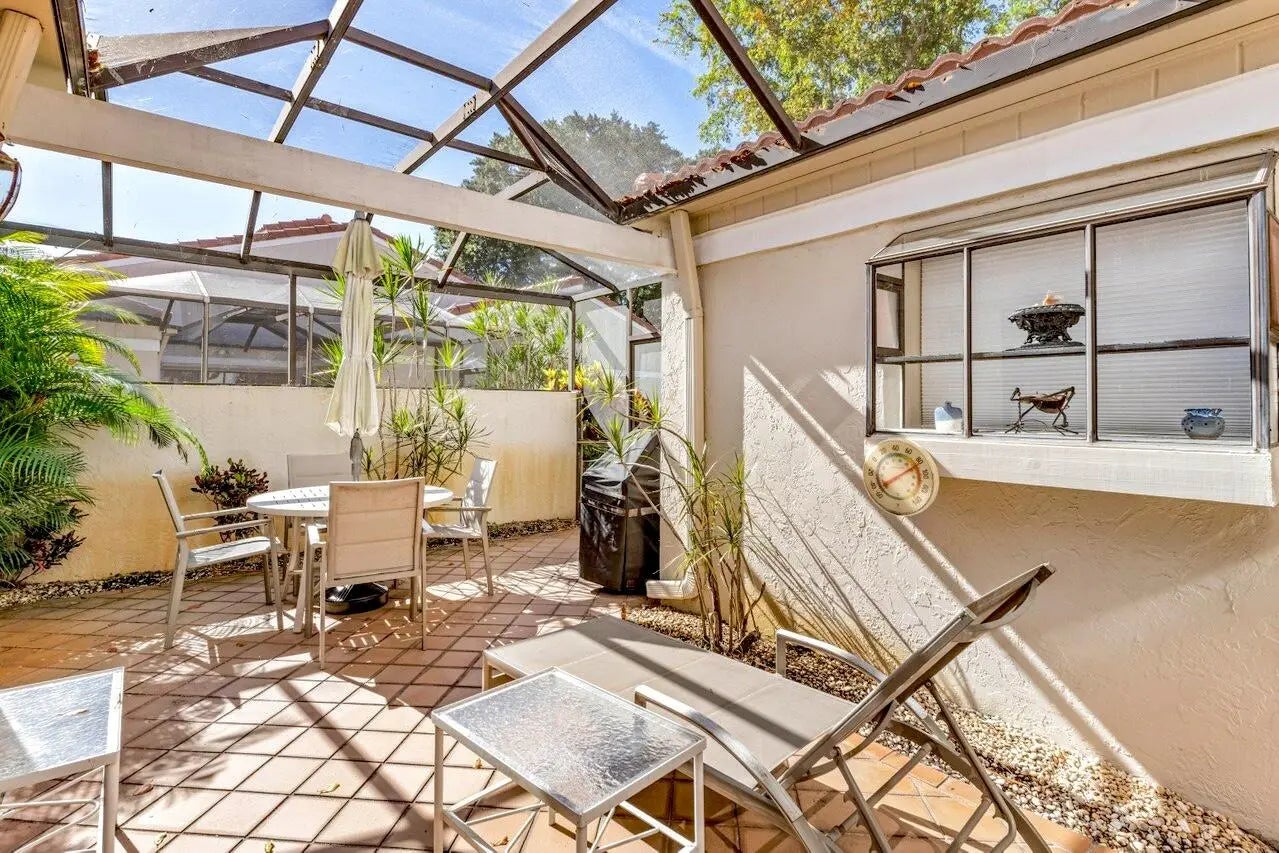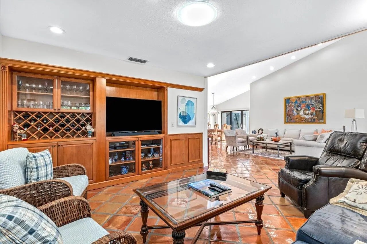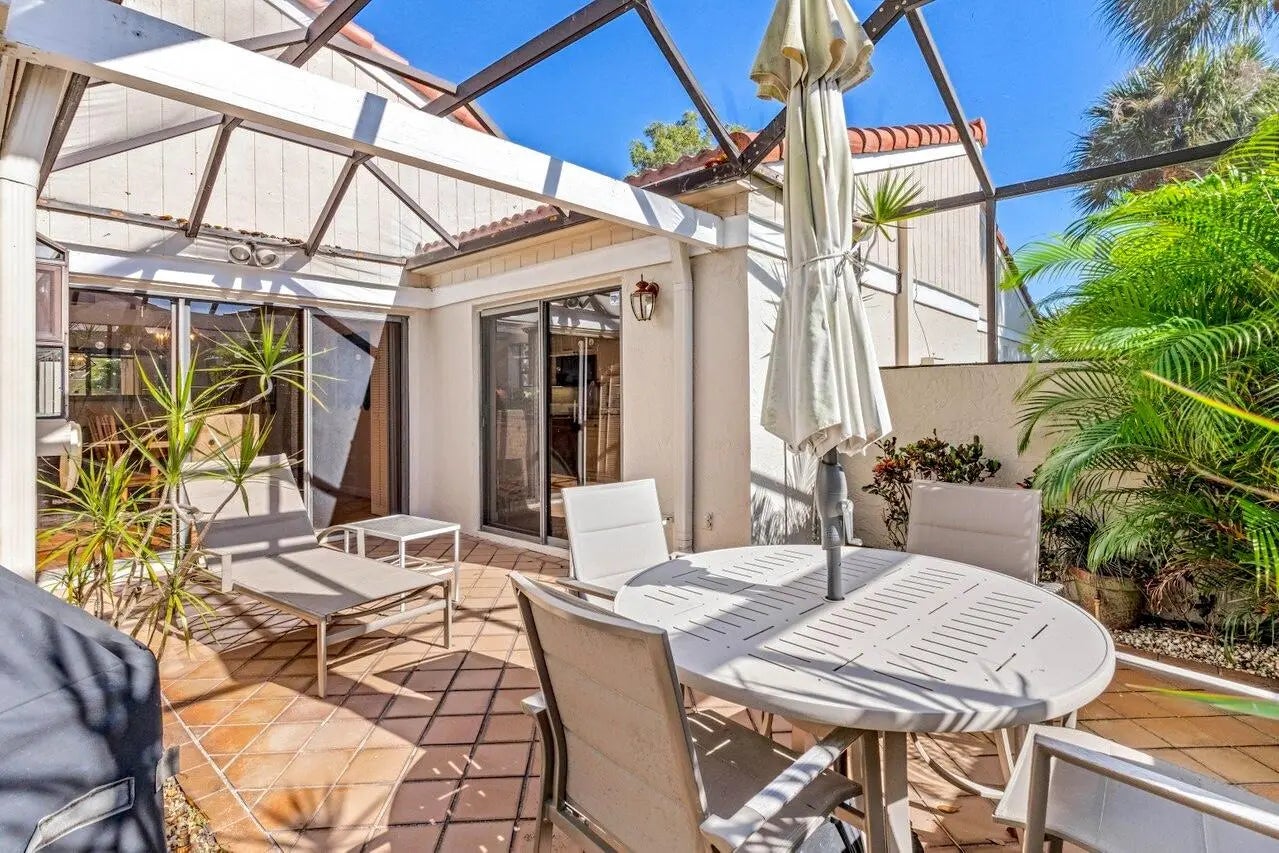 This spacious 2,494 square foot villa offers sweeping golf course views, two bedrooms plus a den/optional 3rd BR, and two baths with a beautifully updated primary ensuite. The interiors are highlighted by vaulted ceilings, recessed lighting, and an enclosed Florida Room, offering even more living space under AC. The eat-in kitchen is ideal for casual dining, while a dedicated dining area provides additional space for formal gatherings. The den offers a flexible space for home office or additional bedroom. The outdoor spaces feature a private screened patio perfect for enjoying outdoor dining and Florida's beautiful weather. The property includes an attached one car plus golf cart garage. New roof installed in 2024.