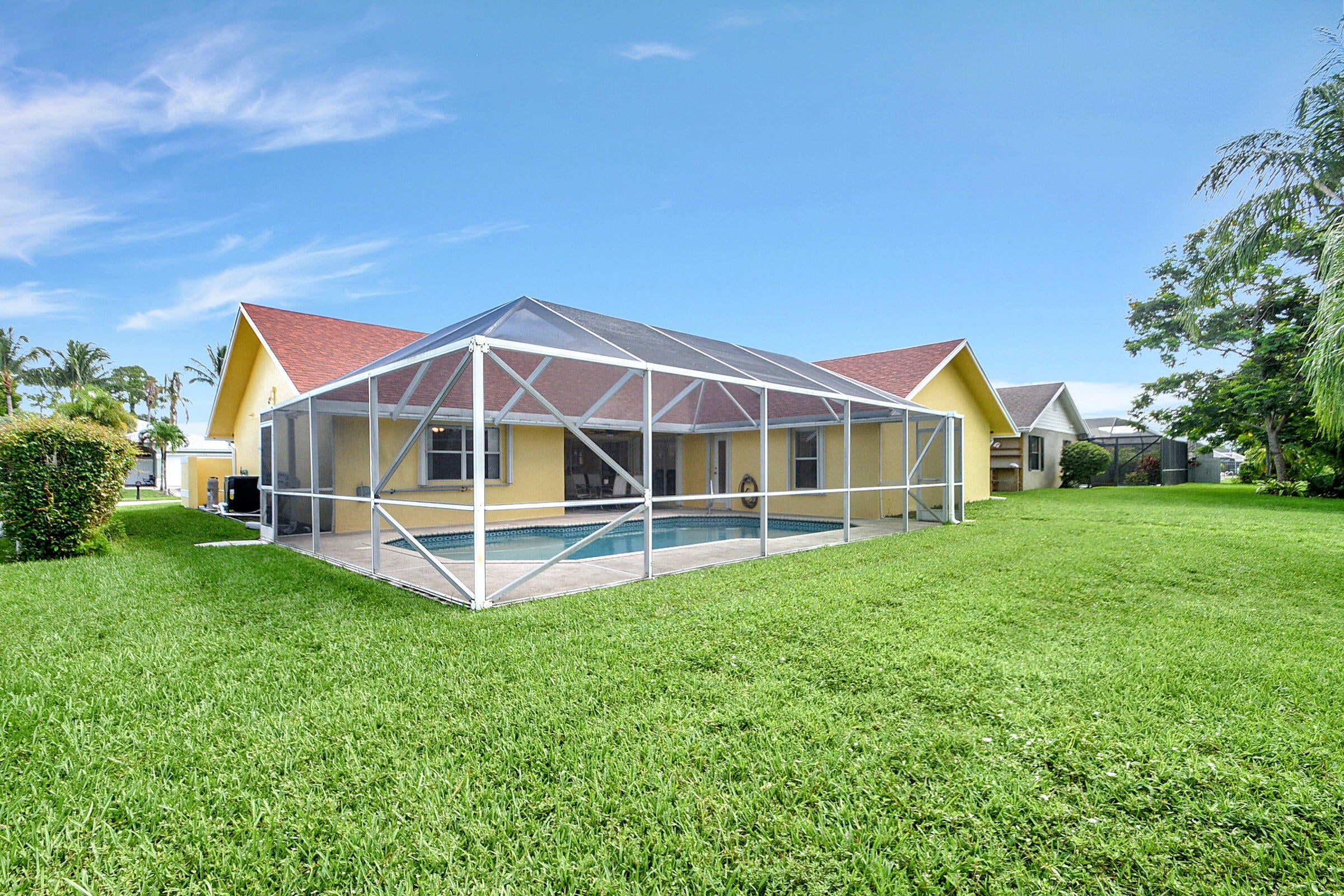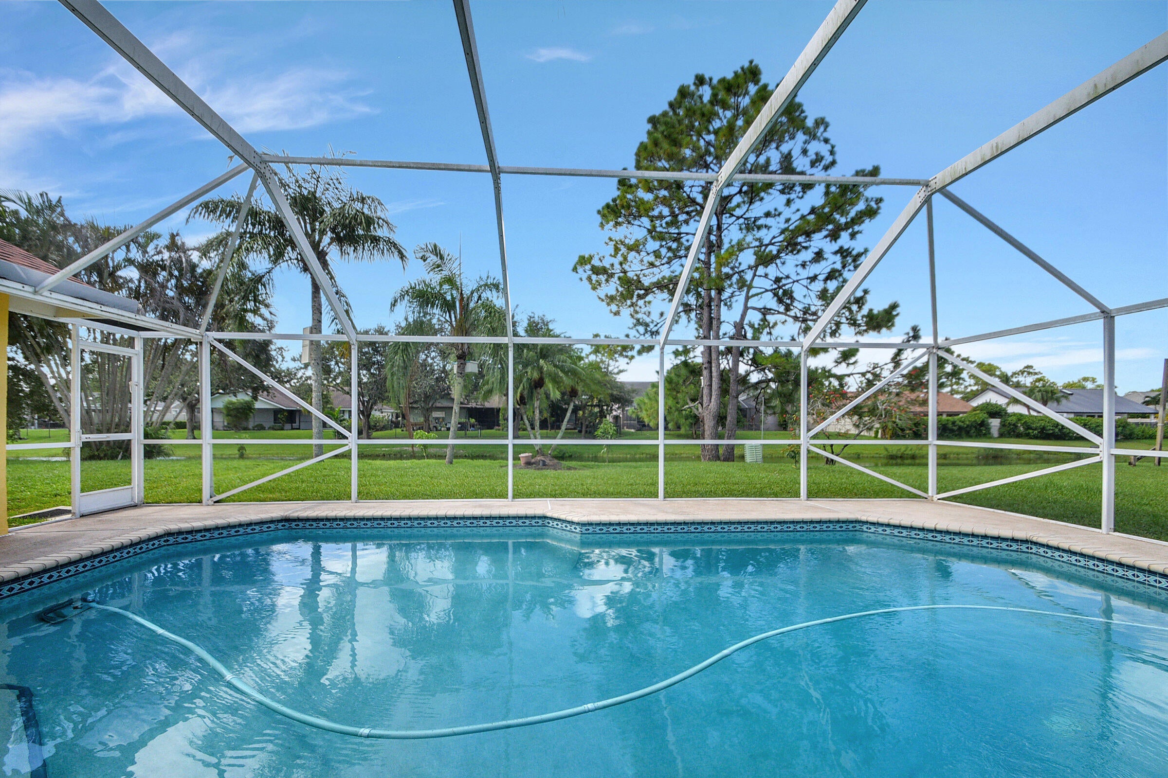 The perfect rental - Beautiful 4/2 home in Wellington, located minutes to the Winter Equestrian & Polo Grounds. This open concept residence offers 2 large living spaces, split floor plan and fully equipped kitchen. Washer/dryer utility room is inside the residence. Two car garage. Enjoy the beautiful outdoor space which offers large screened patio with pool overlooking canal/water. No association approval.