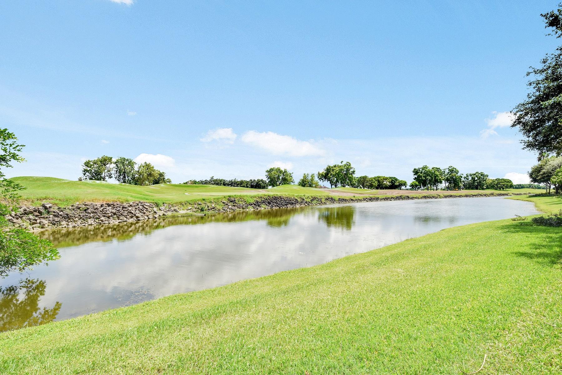 BEAUTIFUL. GROUND FLOOR. SOUTH-FACING WATER AND GOLF VIEW (golf course is currently being remodeled). UPGRADED/UPDATED. 3 bedroom, 2 full bath condo at Wellington's premier condo community. 2 primary suites each with a queen-size bed, walk-in closet and luxurious private full bath.The 3rd bedroom has a double bed and large closet. All rooms face south with lots of natural light. All floors are tiled - NO CARPET. Impact glass throughout for security and sound-proofing. The price shown is the equivalent monthly rent for a minimum lease of 6 months and a day ($39,000 for the season plus deposits). Includes the use of the driveway in front of garage 4G7 but not the garage itself.