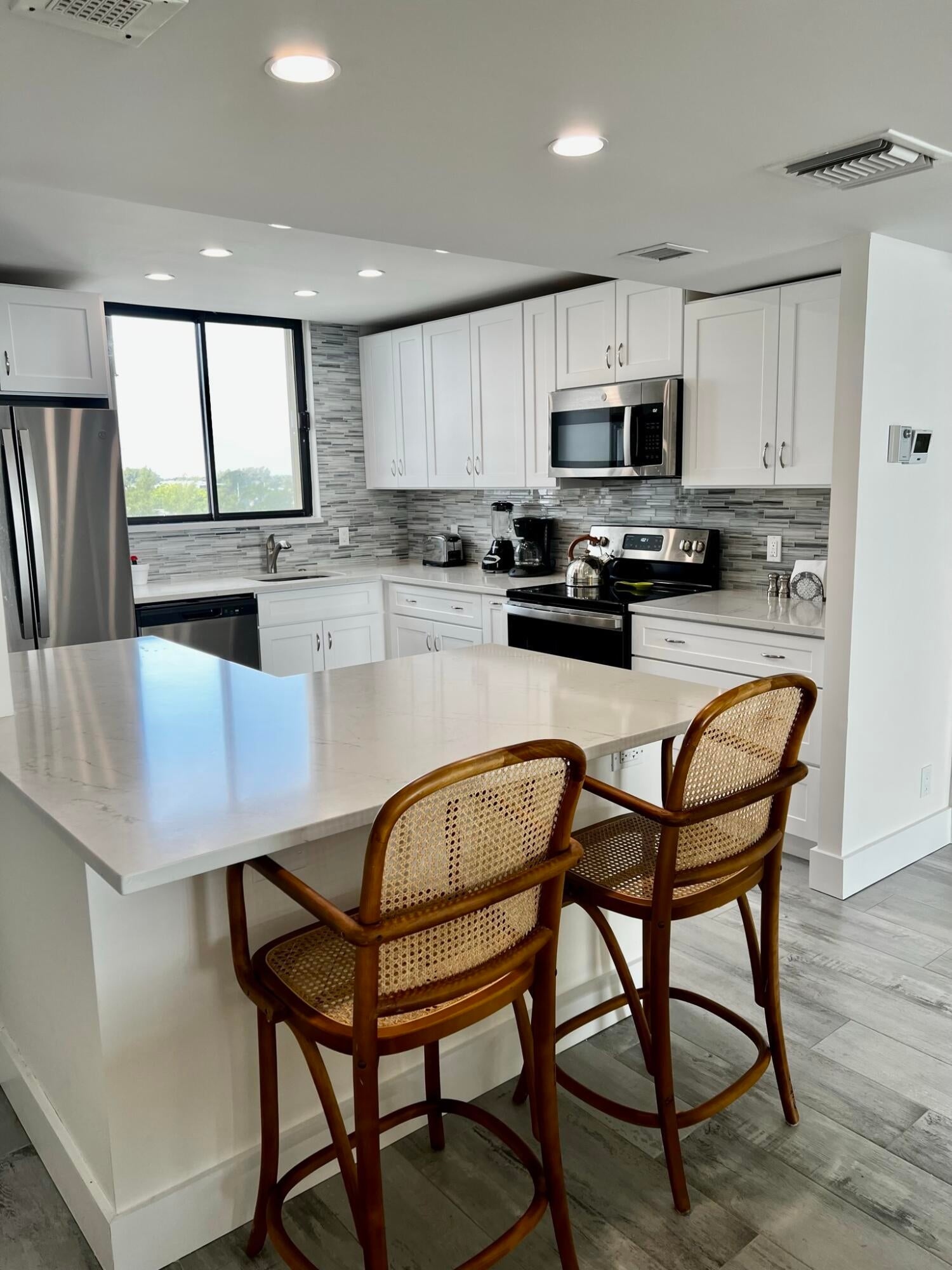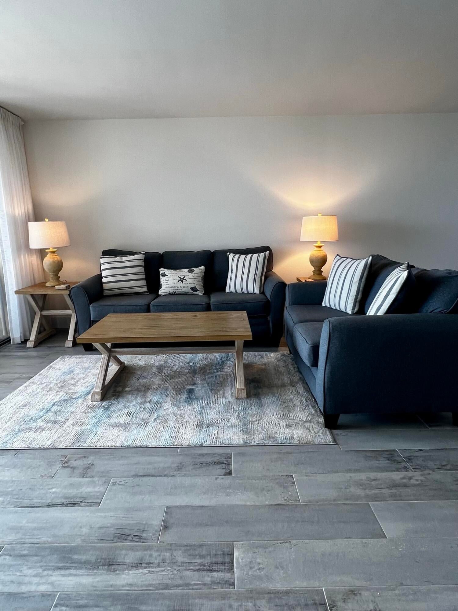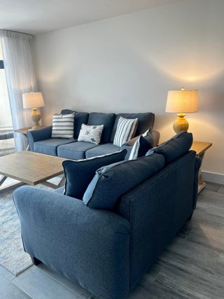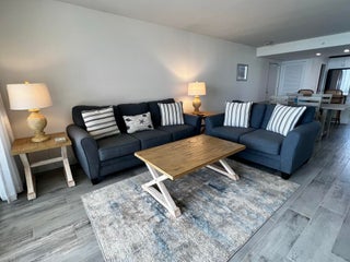 Direct oceanfront 2 bed, 2 bath furnished condo in Ocean Trail has an unobstructed East ocean view. This 5th floor END UNIT was COMPLETELY RENOVATED in 2022. All new kitchen features new appliances and sleek quartz counters. Porcelain tile throughout. Fresh new bathrooms. Larger oceanfront balcony welcomes outdoor dining and relaxation. King main bedroom with twin beds in the guest room. Clean, tidy, and well maintained. 24 hour gated entrance, 9 tennis courts with seasonal onsite pro, heated pools, spa, sauna, grilling station, fitness room, seasonal social activities, secure under building parking, and of course direct beach access.4 month minimum lease $8500 / month rent 13% sales tax $3500 deposit $150 rental application $250 exit clean fee No planned work in this building during the winter months. The building next door will have pool deck work being done during season.