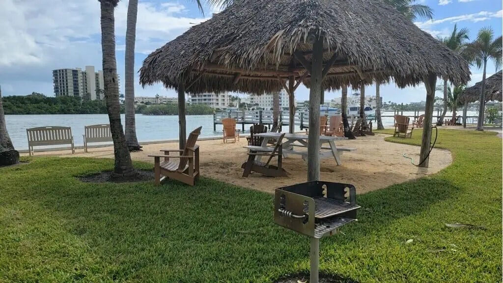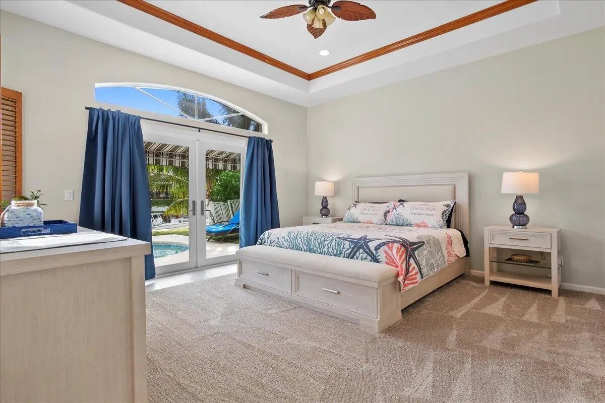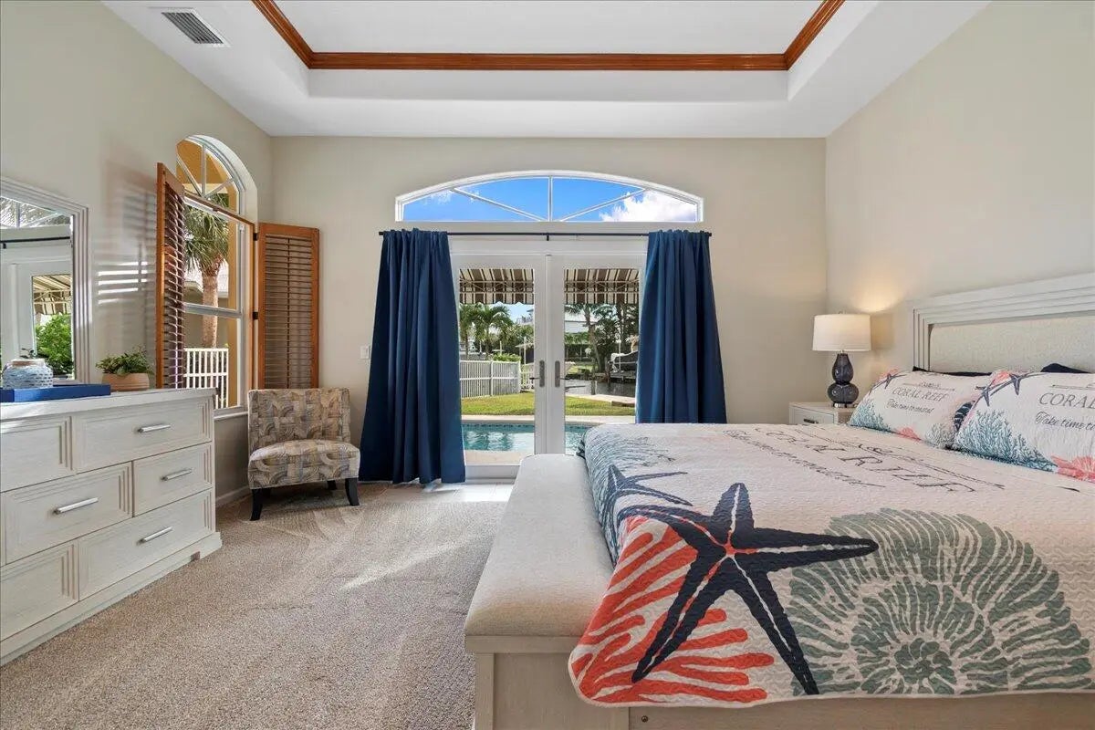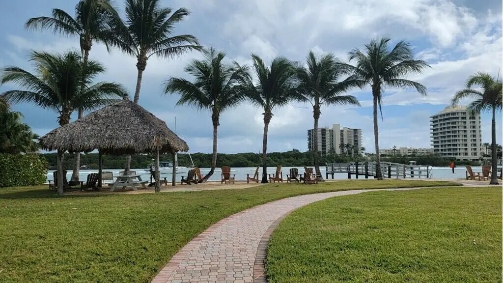 Welcome to waterfront paradise in Jupiter's prestigious Waterway Village! This captivating single-story 3 Bedroom, 2 Bathroom, 2 Car garage single family home epitomizes coastal living. Vibrant island colors and coastal furnishings welcome you into this oasis. Meticulously designed with a split-floor plan, ensuring privacy. The heart of the home lies in the stunning open kitchen, blending style and functionality. Expansive Impact glass windows and doors reveal a private pool and lanai. Outside, discover your very own private lanai and and private boat dock (no lift). Waterway Village residents have access to private neighborhood park along the intracoastal waters, featuring Adirondack chairs, Tiki huts, BBQ grills, kayak launch, and a fishing pier. Indulge in waterfront living
