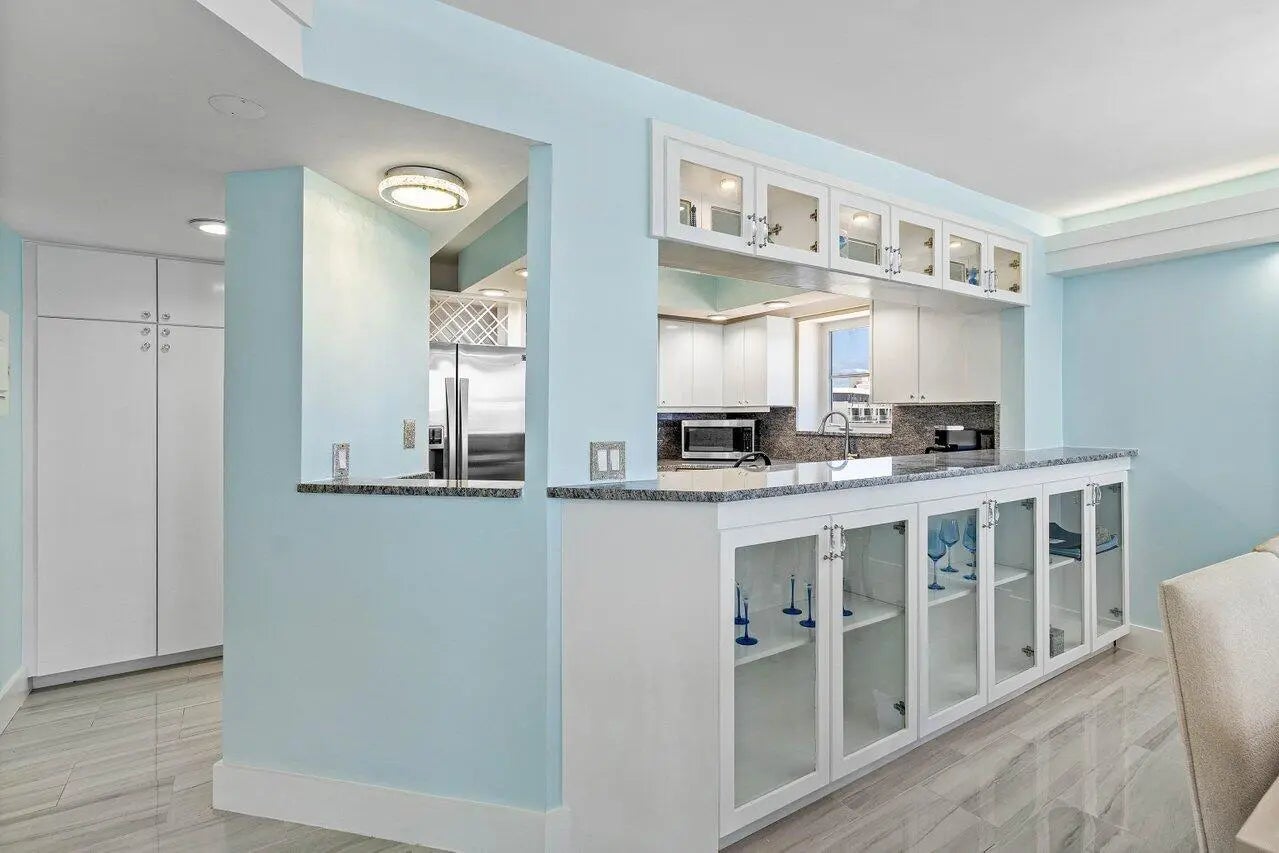 This direct oceanfront unit offers an unparalleled coastal lifestyle. Wake up in your expansive oceanfront master suite, complete with walk in closets and luxurious bath. Step onto your wrap around balcony with ocean vistas or walk to the beach right outside and snorkel to a reef where dive boats come. Brand new porcelain floors and impact glass provide a modern feel. This boutique building elevates with exceptional amenities. Brand new oceanfront pool with separate grilling area and covered lounges. Beautiful party room can be booked for events. Gym with ocean views that is brand new. Boat loving friends will appreciate the proximity to a dock at the cove and walk over. Assigned underground parking and guest parking available. Great shopping & restaurants. Oceanfront living at its finest