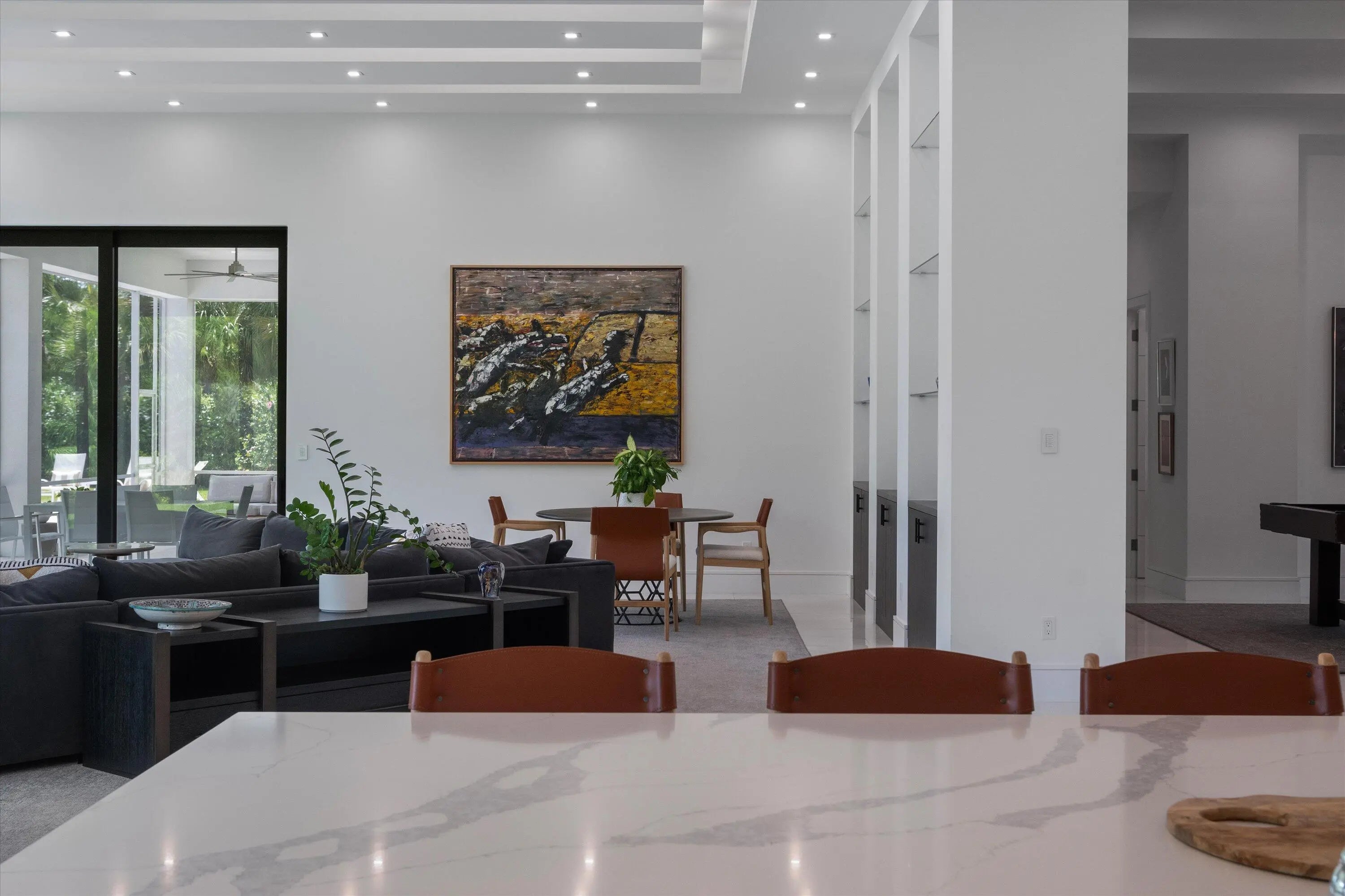 Discover the pinnacle of modern luxury in this stunning 2022-built residence, located within the prestigious gates of Long Lake Estates. Sprawling across nearly 1.2 acres with captivating lakefront views, this furnished, single-story estate offers over 7,400 sq ft of elegant, open-concept living.Designed for effortless entertaining and serene everyday living, the home features 5 spacious ensuite bedrooms, a dramatic great room, a gourmet kitchen with center island and top-tier appliances, a formal dining room, and a private office.