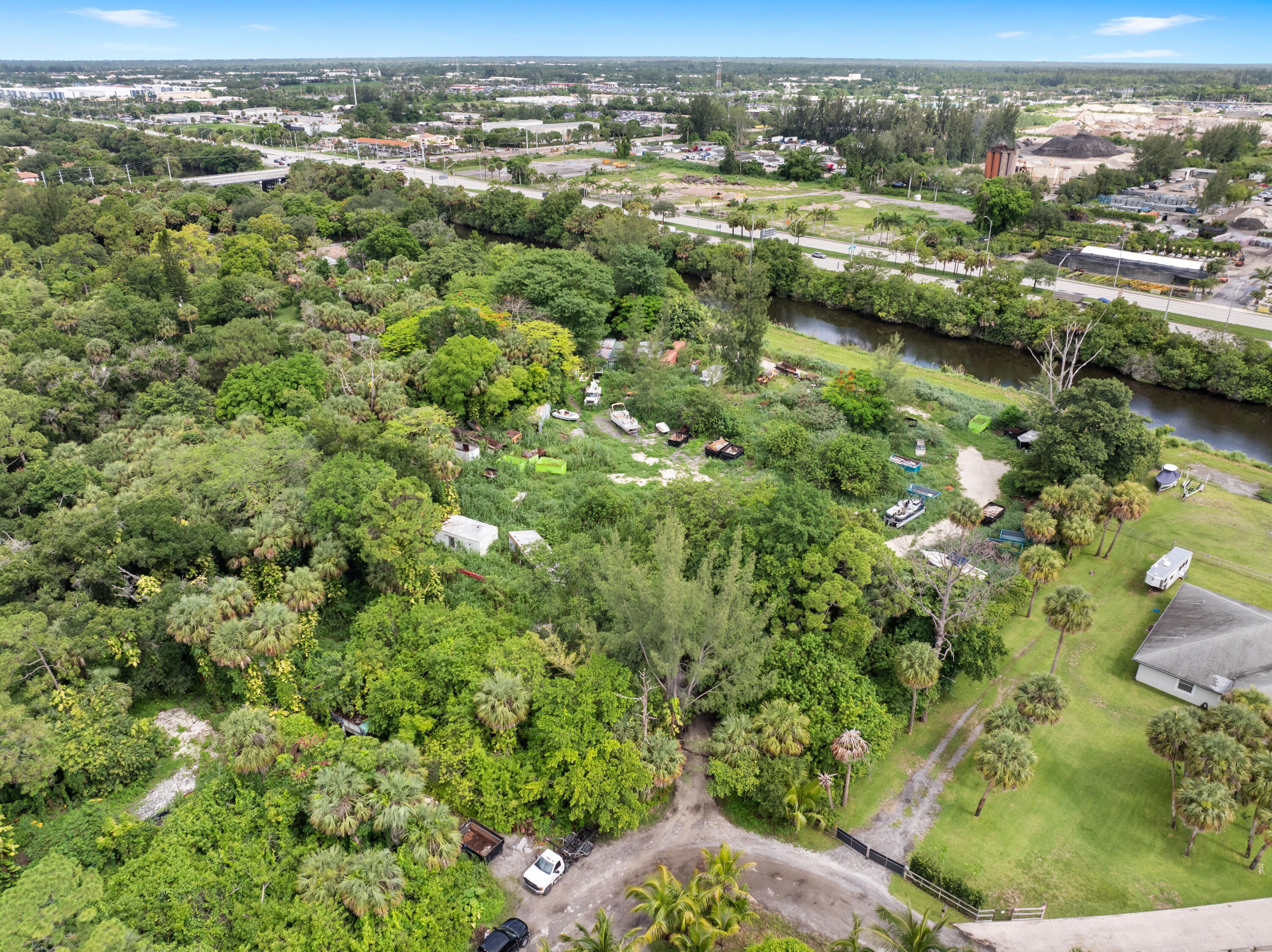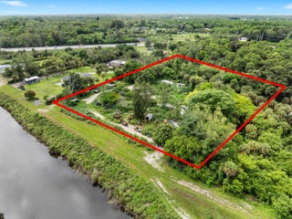 Vacant land. Incredible 5.04-acre waterfront property featuring approx. 3.04 acres of upland and a 2.00-acre private road easement. Fully fenced and gated, with 600 feet of water frontage on the C-51 Canal, a navigable waterway maintained by the U.S. Army Corps of Engineers. Riparian rights included, allowing the opportunity to build a private dock and keep your boat in your backyard. The deeded 60-ft private road offers rare privacy and control. Ideal for adding a gated entrance. No HOA. Located near Southern Blvd and the Turnpike, just 15 mins to PBI Airport. Sail to Lake Osborne. A truly one-of-a-kind, build-ready site in a rapidly developing area. Survey can be found under ''documents''.