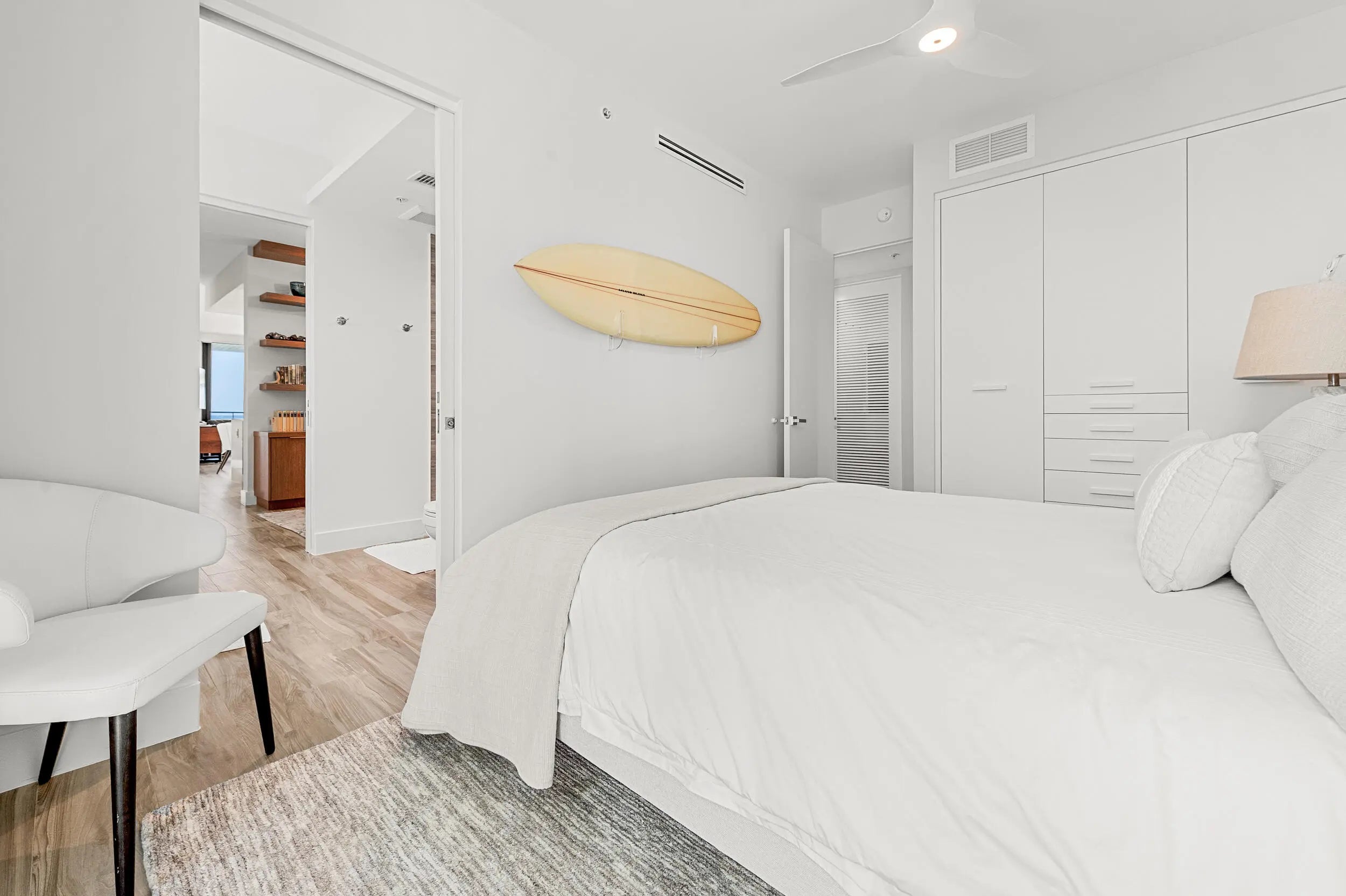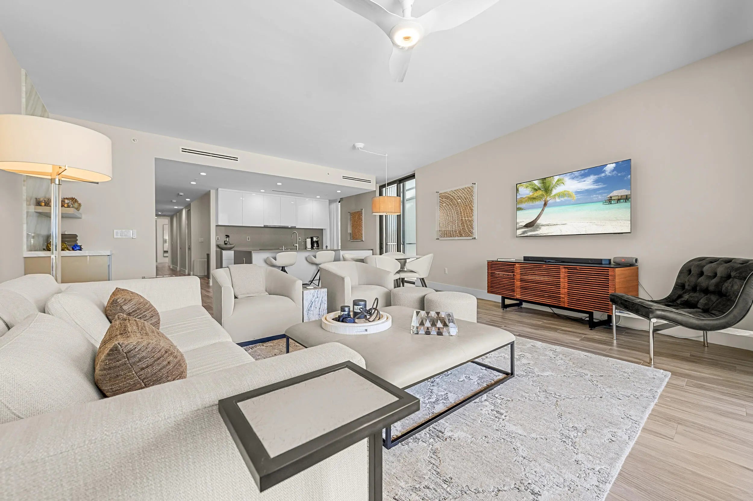 Upon entering this two bedroom + den residence directly via elevator, you welcomed with south facing views of the Palm Beach Inlet and Atlantic Ocean. Being on the first level, this condo lives like a villa just steps to the sand, and 15 min from PBI, Palm Beach and Jupiter. Enjoy morning sunrises and evening sunsets on the over-seized terrace, get some work done in the custom office built out in the den, and for the nights you decide to stay in, enjoy meals in the open concept gourmet kitchen. Built is 2017, Oceans Eighteen is a boutique modern development located in the charming beach town of Palm Beach Shores and offers residents under-ground parking, a pool and fitness center. 60 day min lease - please inquire for rates on longer terms. No Pets. Laundry in-unit.