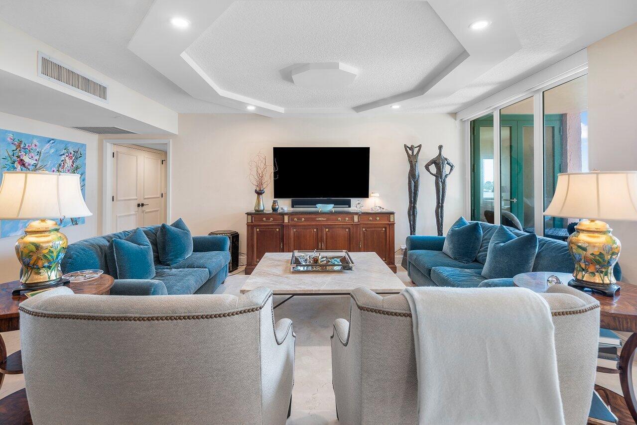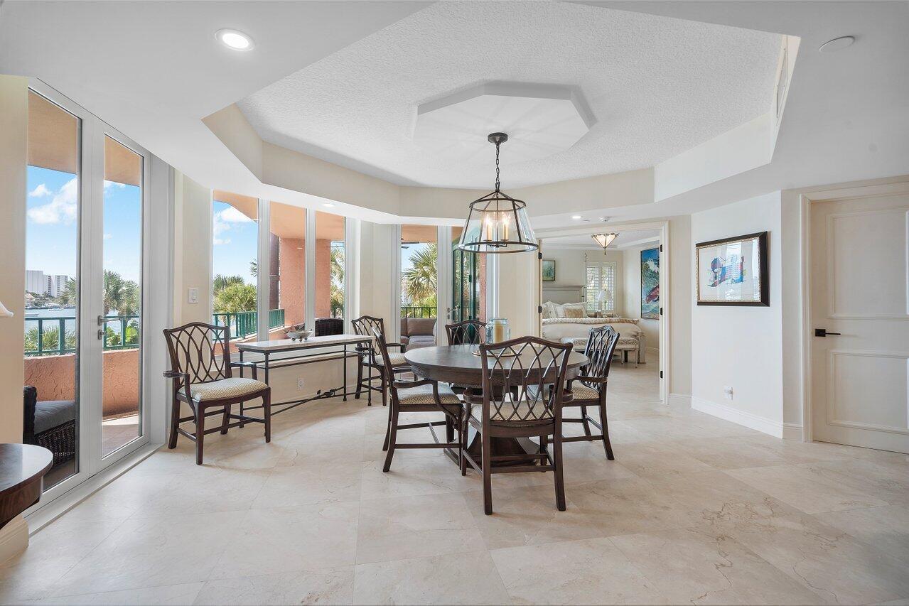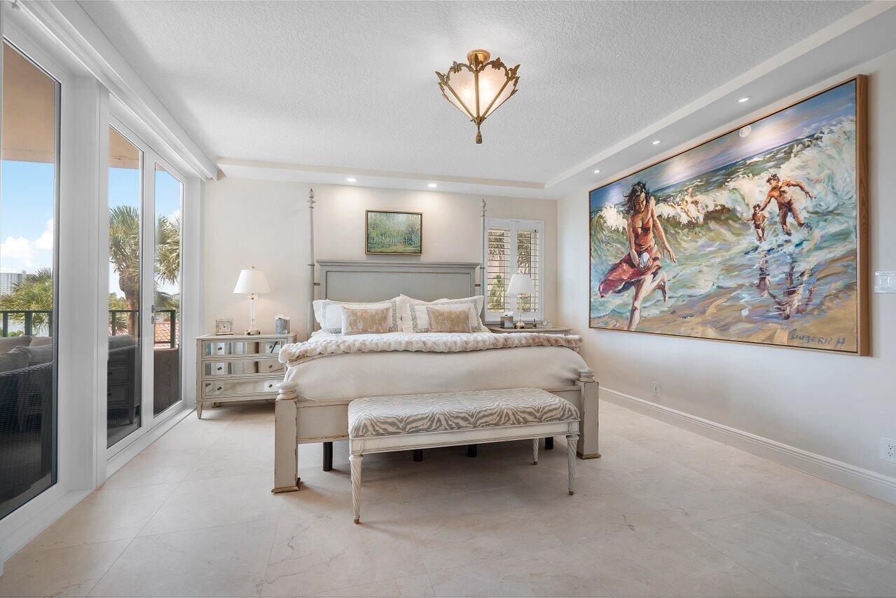 BEST WATER VIEW ON THE MARKET! From the moment you step inside every room offers breathtaking views of Lake Boca and the Intracoastal waterway. The expansive balcony, perfectly oriented to the southeast, invites you to savor magnificent views and refreshing breezes.Bathed in natural light, this immaculate apartment has been updated and is elegantly appointed. The living areas and balcony feature exquisite marble floors, while the modern kitchen boasts zebra wood cabinets and stainless steel appliances. The thoughtfully designed split bedroom floor plan provides privacy and comfort, complemented by impact windows for added peace of mind. Located on the grounds of the Boca Raton, this property is a short walk to Mizner Park, Royal Palm Place and the shops of downtown Boca.