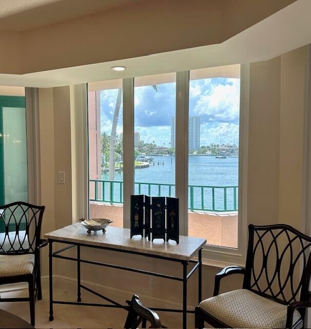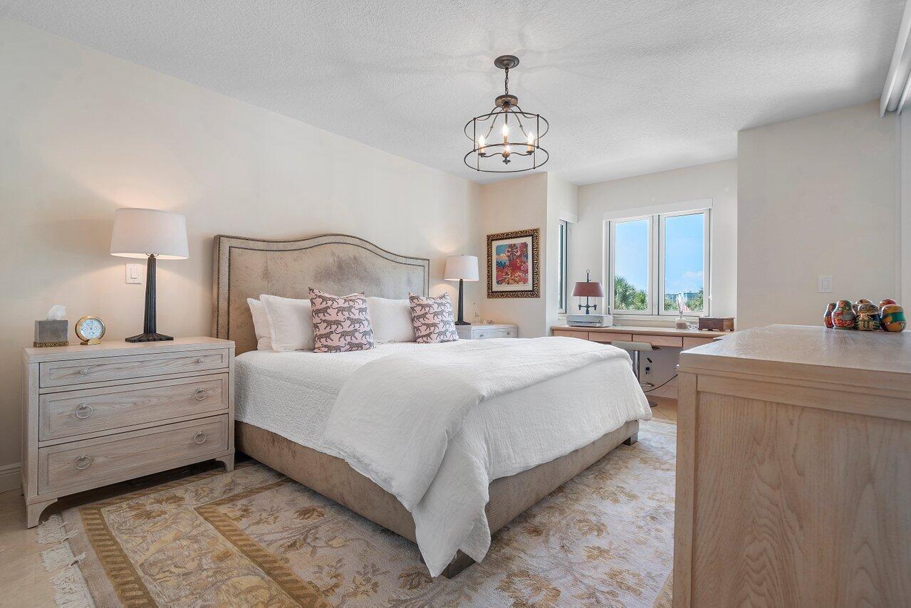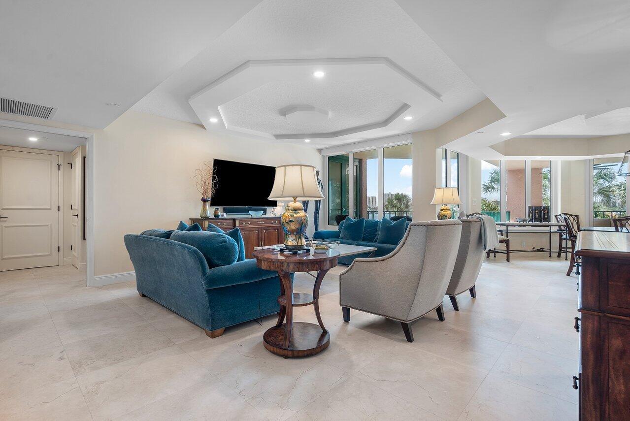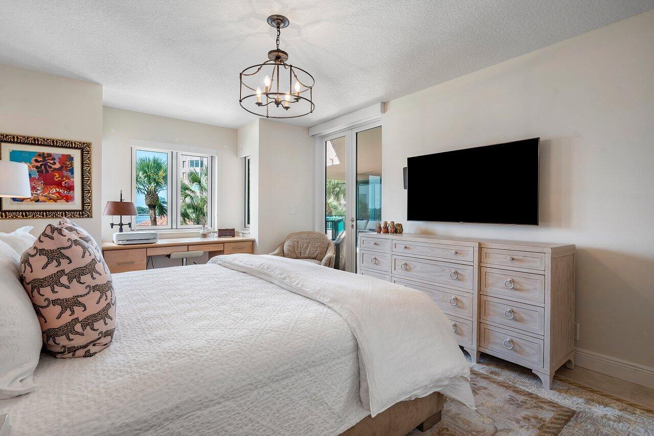 BEST WATER VIEW ON THE MARKET! From the moment you step inside every room offers breathtaking views of Lake Boca and the Intracoastal waterway. The expansive balcony, perfectly oriented to the southeast, invites you to savor magnificent views and refreshing breezes.Bathed in natural light, this immaculate apartment has been updated and is elegantly appointed. The living areas and balcony feature exquisite marble floors, while the modern kitchen boasts zebra wood cabinets and stainless steel appliances. The thoughtfully designed split bedroom floor plan provides privacy and comfort, complemented by impact windows for added peace of mind. Located on the grounds of the Boca Raton, this property is a short walk to Mizner Park, Royal Palm Place and the shops of downtown Boca.