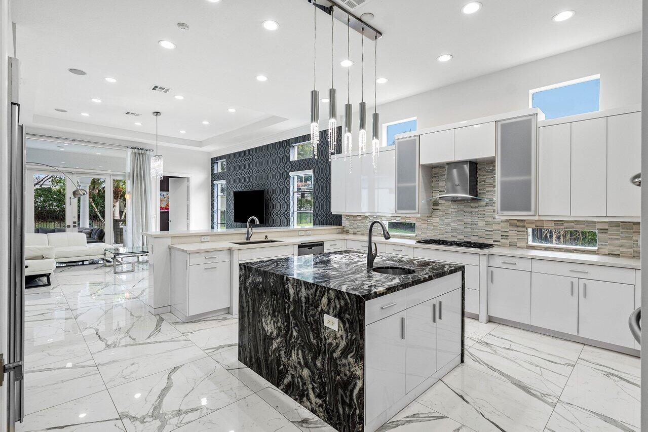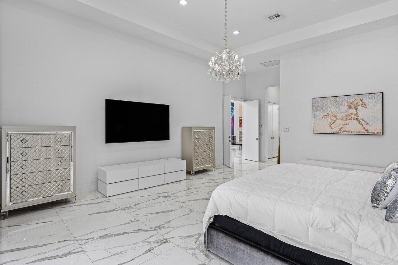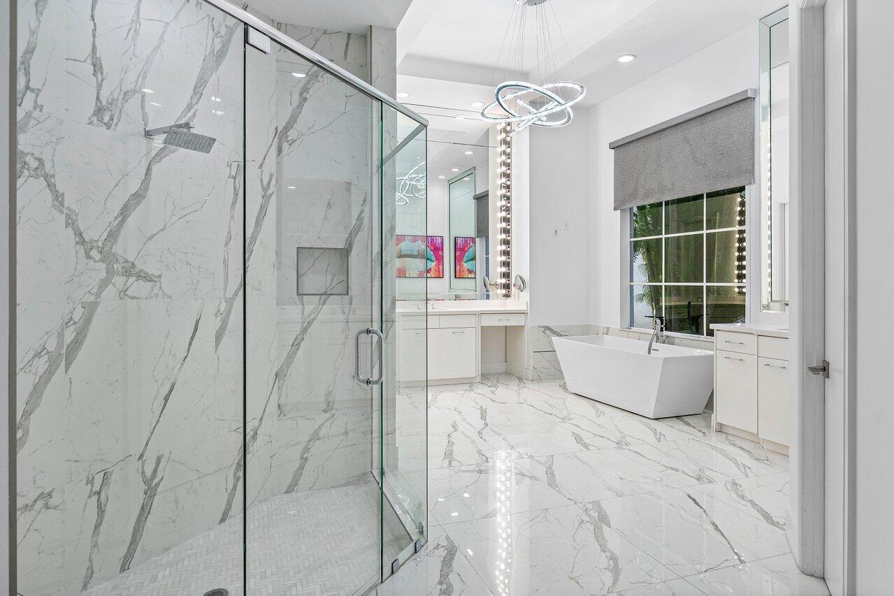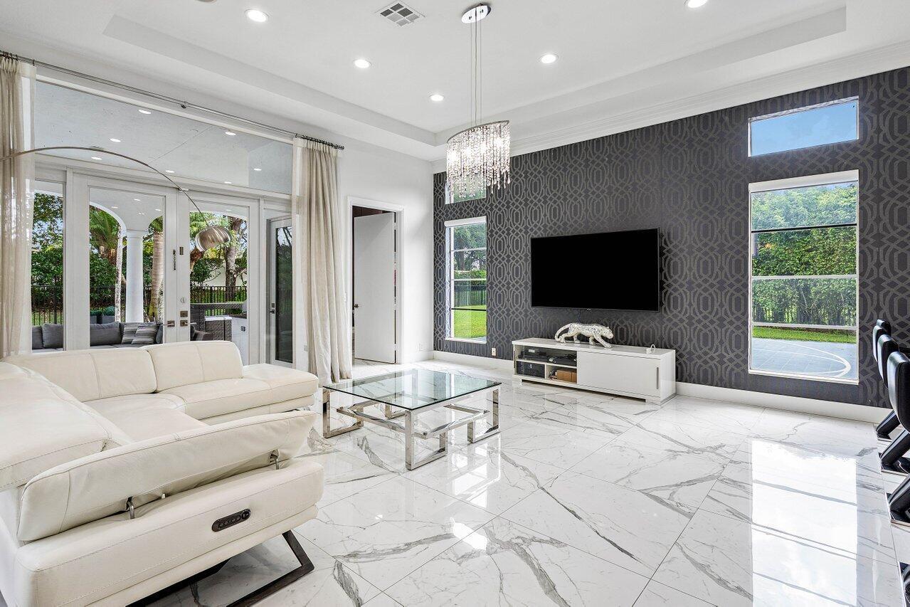 Welcome to 17729 Middlebrook Way: a contemporary estate tucked at the end of a quiet cul-de-sac in The Oaks, offering unmatched privacy and resort-style living. This designer home sits on one of the largest lots in the community, featuring an Italian marble driveway, a modern facade, indoor and outdoor basketball court and a three-car garage. Inside, soaring ceilings and porcelain floors lead you through elegant living spaces filled with natural light and panoramic views of the custom marble patio, heated pool, spa, and private basketball court. Entertain in style in a sleek remodeled kitchen, formal dining room, private billiards room, and expansive family room. This home has it all! The Oaks offers unmatched resort style living with full service spa, restaurant, tennis & more!