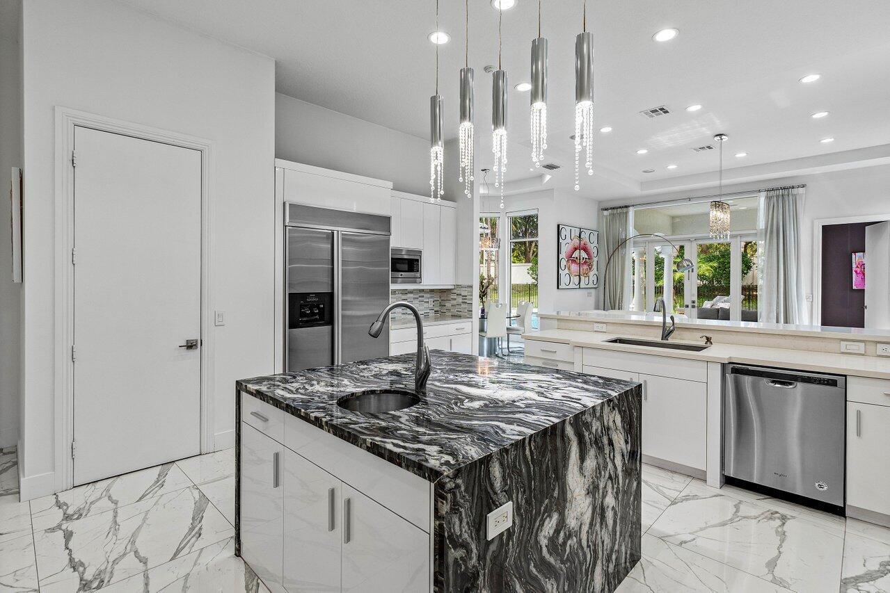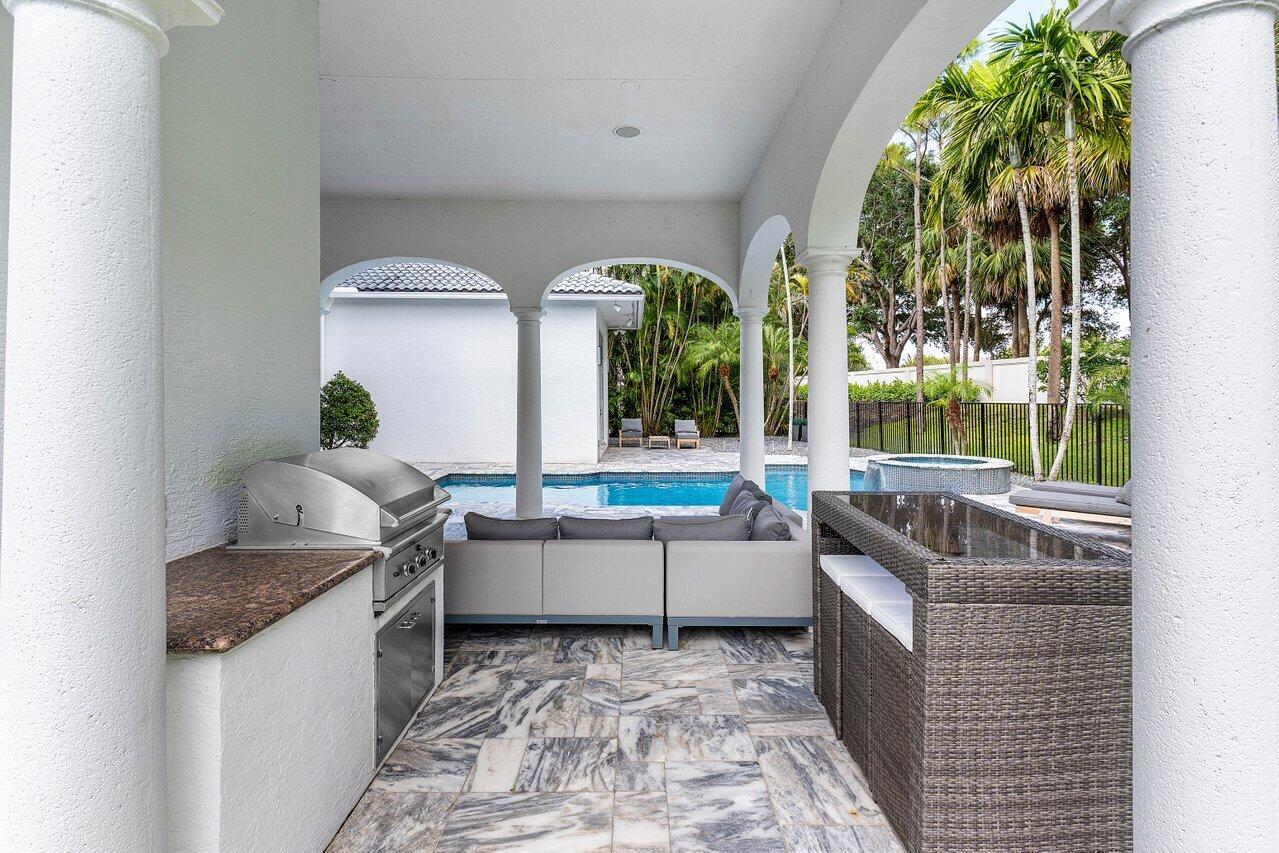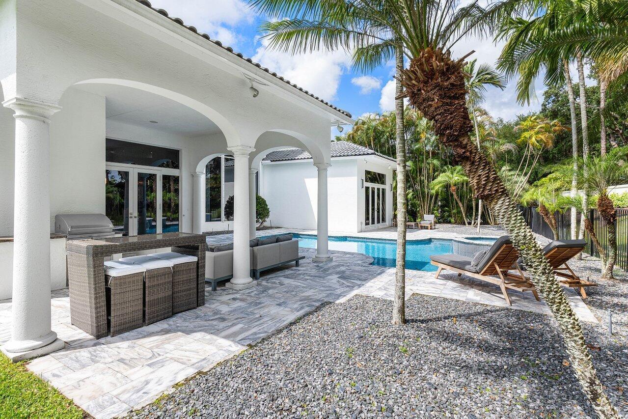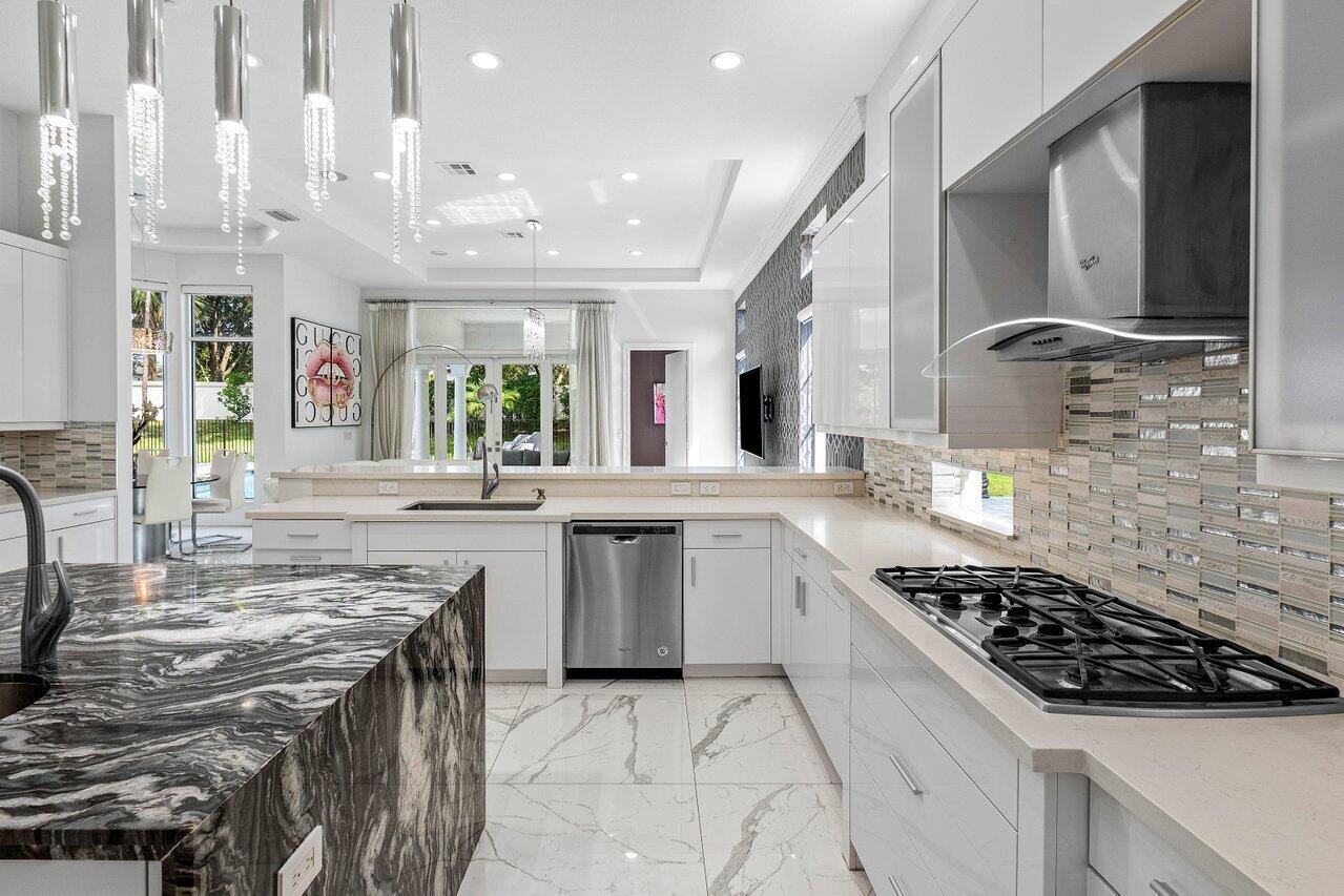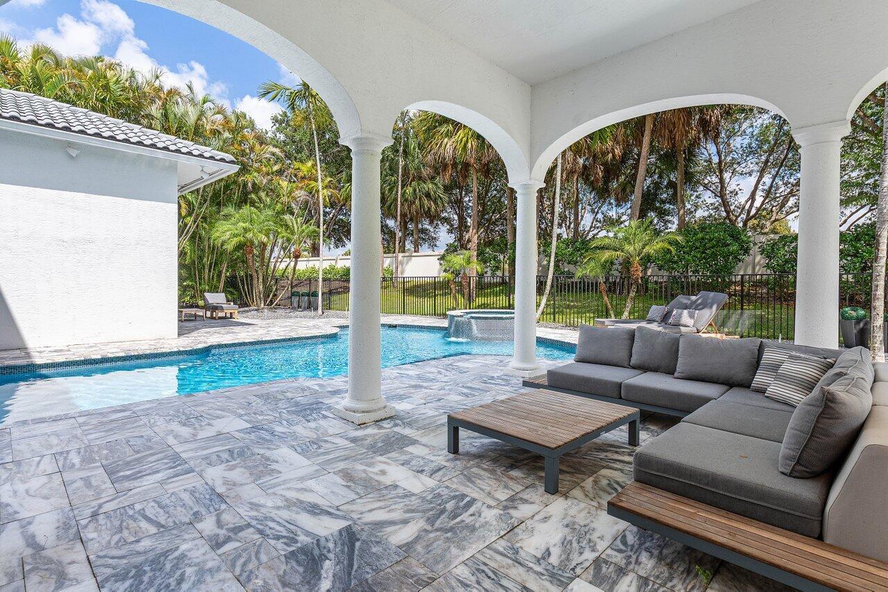 Welcome to 17729 Middlebrook Way: a contemporary estate tucked at the end of a quiet cul-de-sac in The Oaks, offering unmatched privacy and resort-style living. This designer home sits on one of the largest lots in the community, featuring an Italian marble driveway, a modern facade, indoor and outdoor basketball court and a three-car garage. Inside, soaring ceilings and porcelain floors lead you through elegant living spaces filled with natural light and panoramic views of the custom marble patio, heated pool, spa, and private basketball court. Entertain in style in a sleek remodeled kitchen, formal dining room, private billiards room, and expansive family room. This home has it all! The Oaks offers unmatched resort style living with full service spa, restaurant, tennis & more!