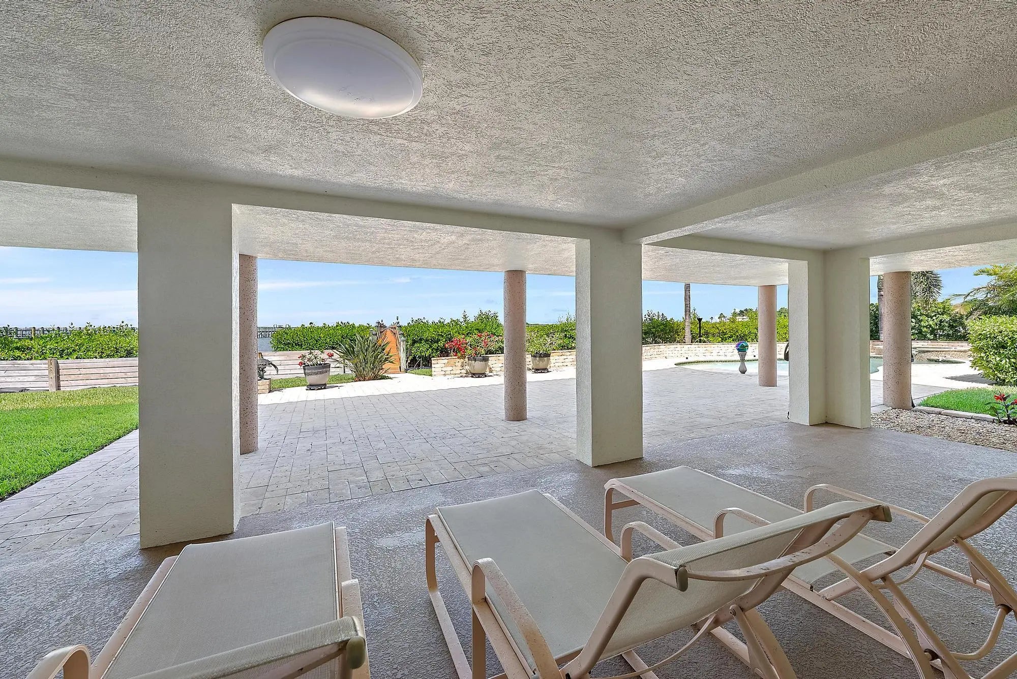 Lowest Priced Waterfront Home in Sewalls Point! Recently appraised and priced to sell. Located on the southern end of Sewall's Point, 14 Herons Nest is a striking waterfront residence offering panoramic views of the Indian River and a front-row seat to some of the most breathtaking sunrises on the Treasure Coast. Solidly constructed of poured concrete with and fully equipped with impact glass for storm protection, this home combines enduring quality with effortless coastal elegance.Inside, you'll find a chef's kitchen with custom hardwood cabinetry, granite countertops, and stainless steel appliances--ideal for both quiet mornings and lively gatherings. Travertine and wood flooring flow throughout the home, adding warmth and texture. The sprawling backyard is designed for relaxation an