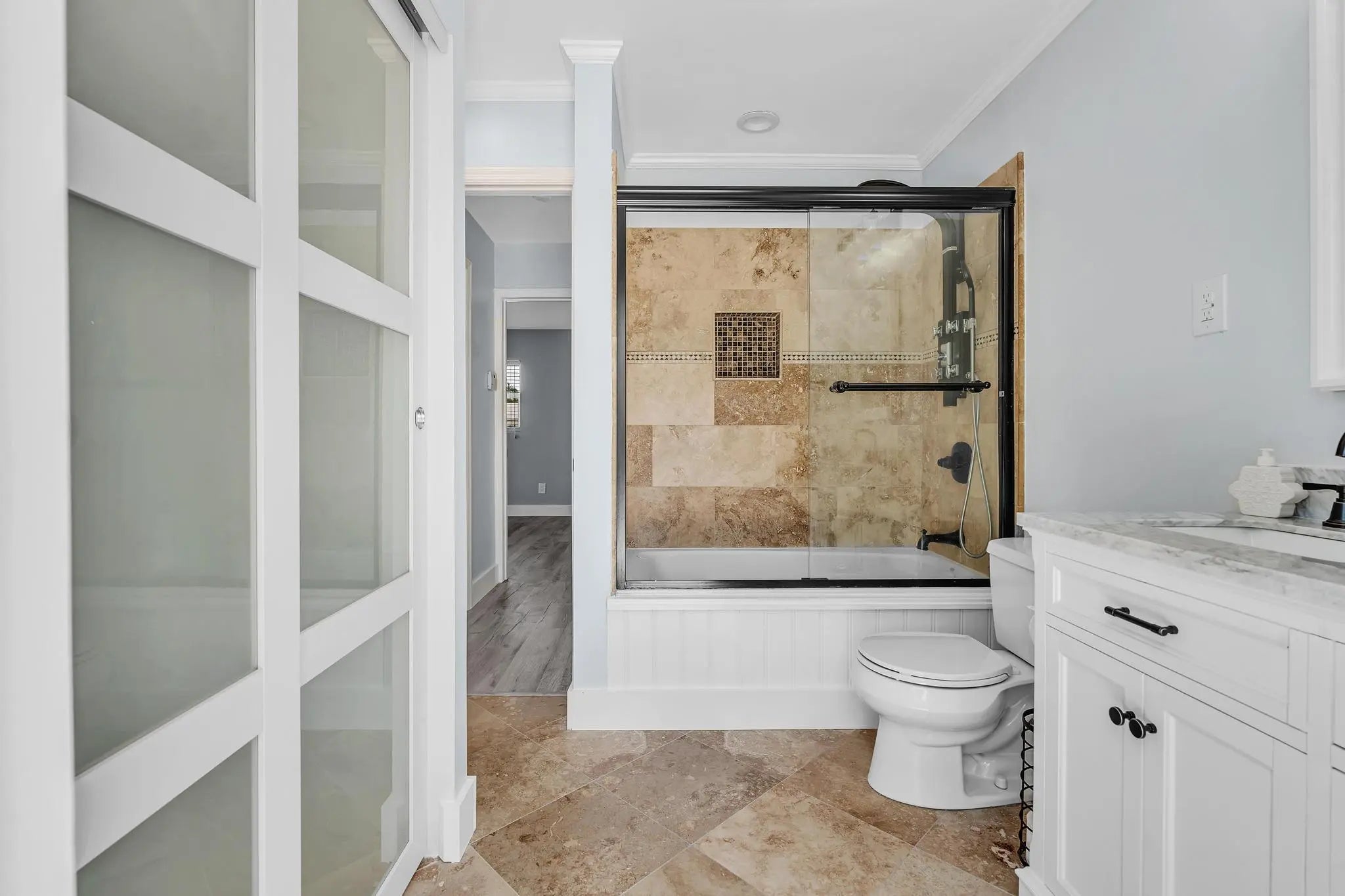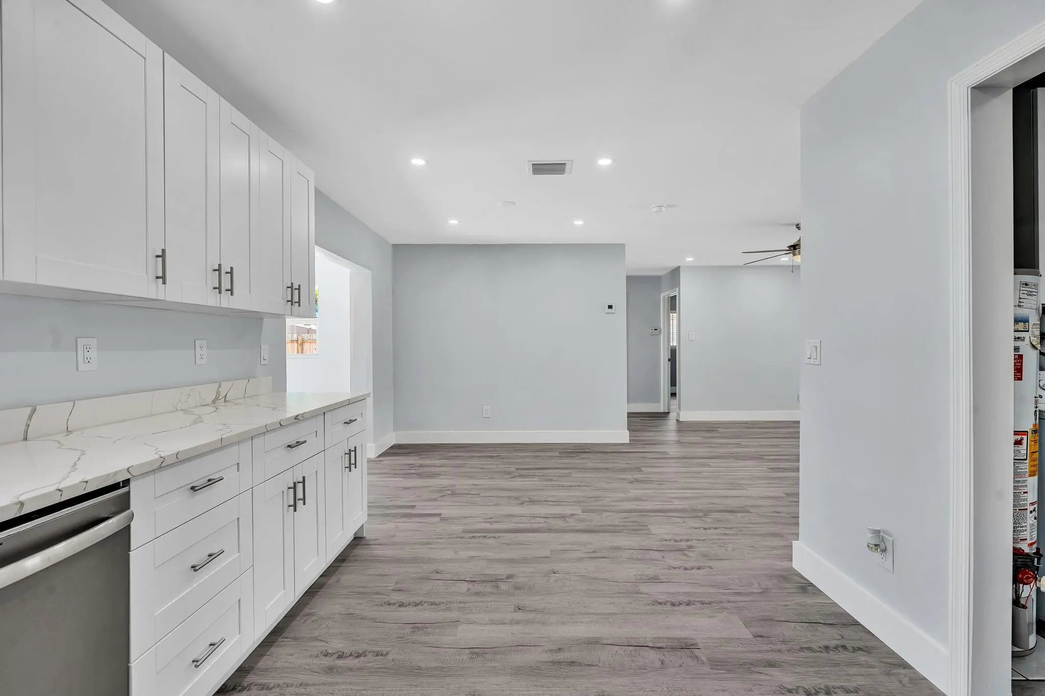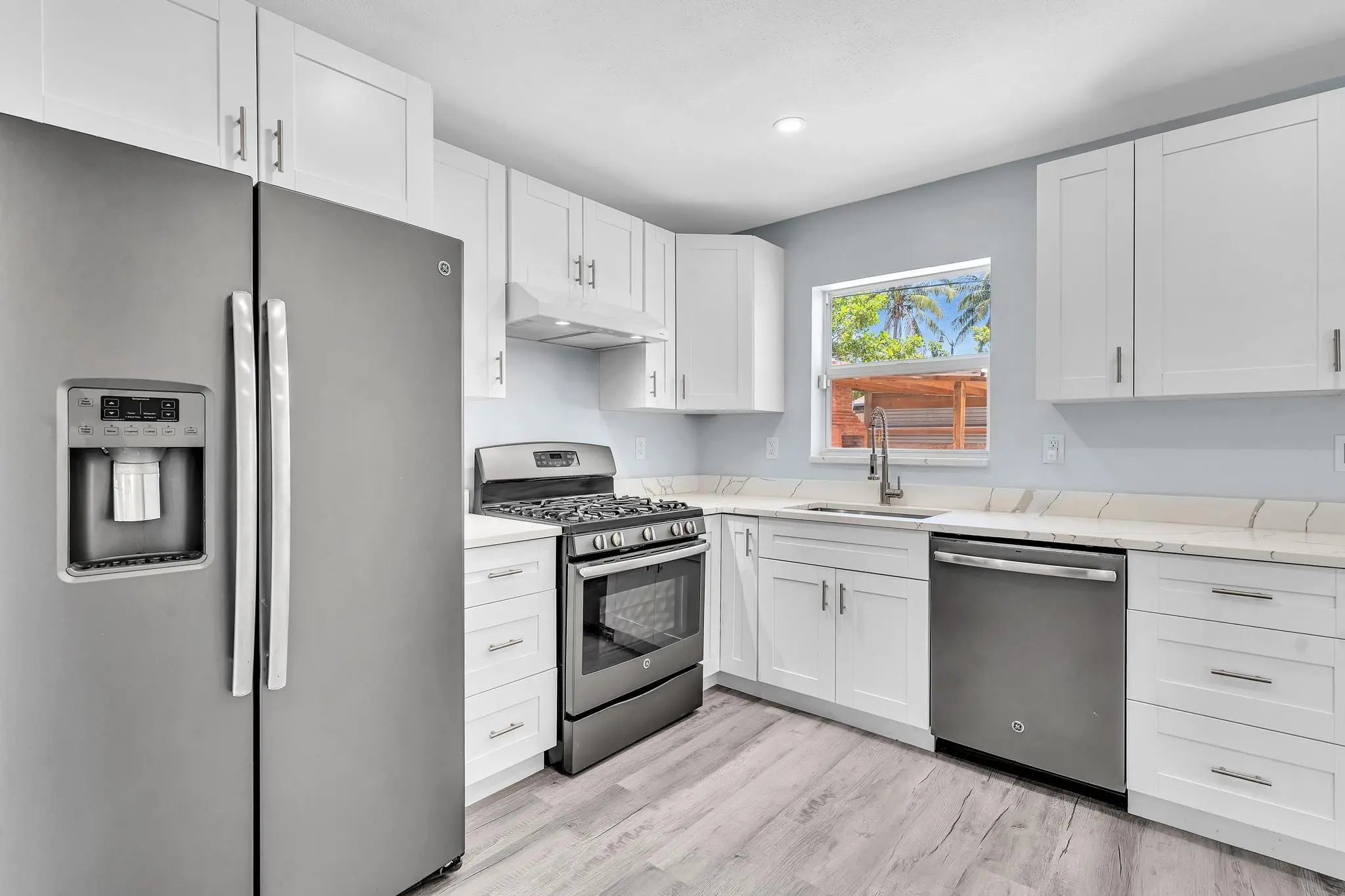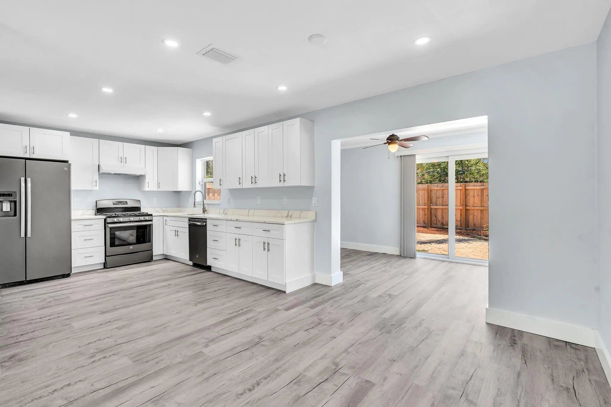 With smart, modern updates and Florida-style indoor outdoor living, this refreshed 3-bedroom, 1-bath ranch delivers on both comfort and value. Nestled in the Cresthaven neighborhood of Pompano Beach this immaculate 1,388 sq ft home boasts a bright, open design where the living, dining and kitchen areas converge into one inviting gathering space. Thoughtfully laid out with a split bedroom plan, the primary bedroom offers privacy from the two guest bedrooms perfect for families, guests or both. Extensive renovations include Hurricane impact windows and doors for peace of mind and efficiency, a new roof and HVAC system to keep you cool, stylish new kitchen featuring quartz counters, soft-close cabinetry, and graphite GE appliances ready for modern daily life, and sleek vinyl pla