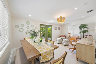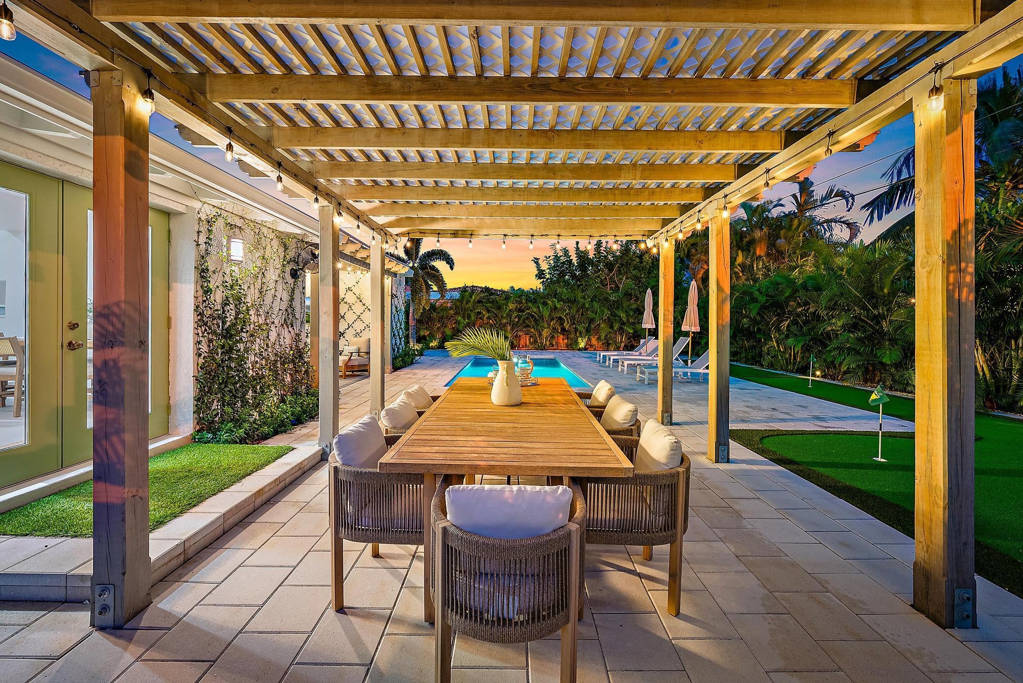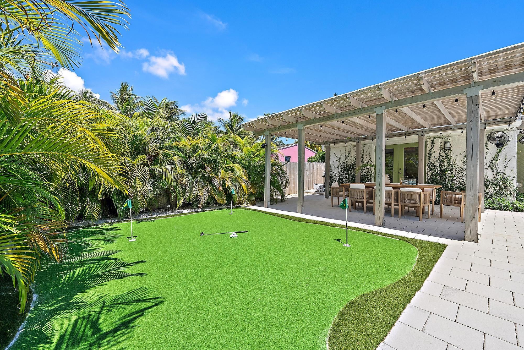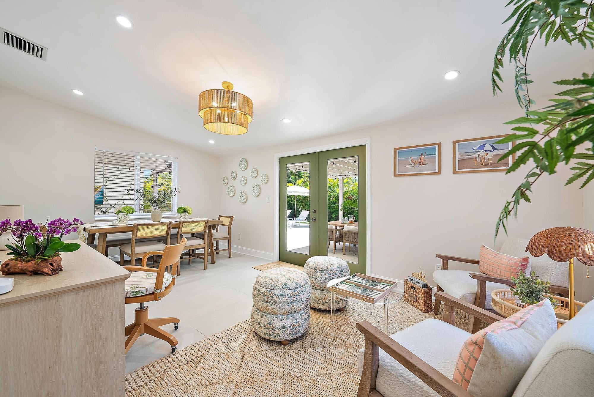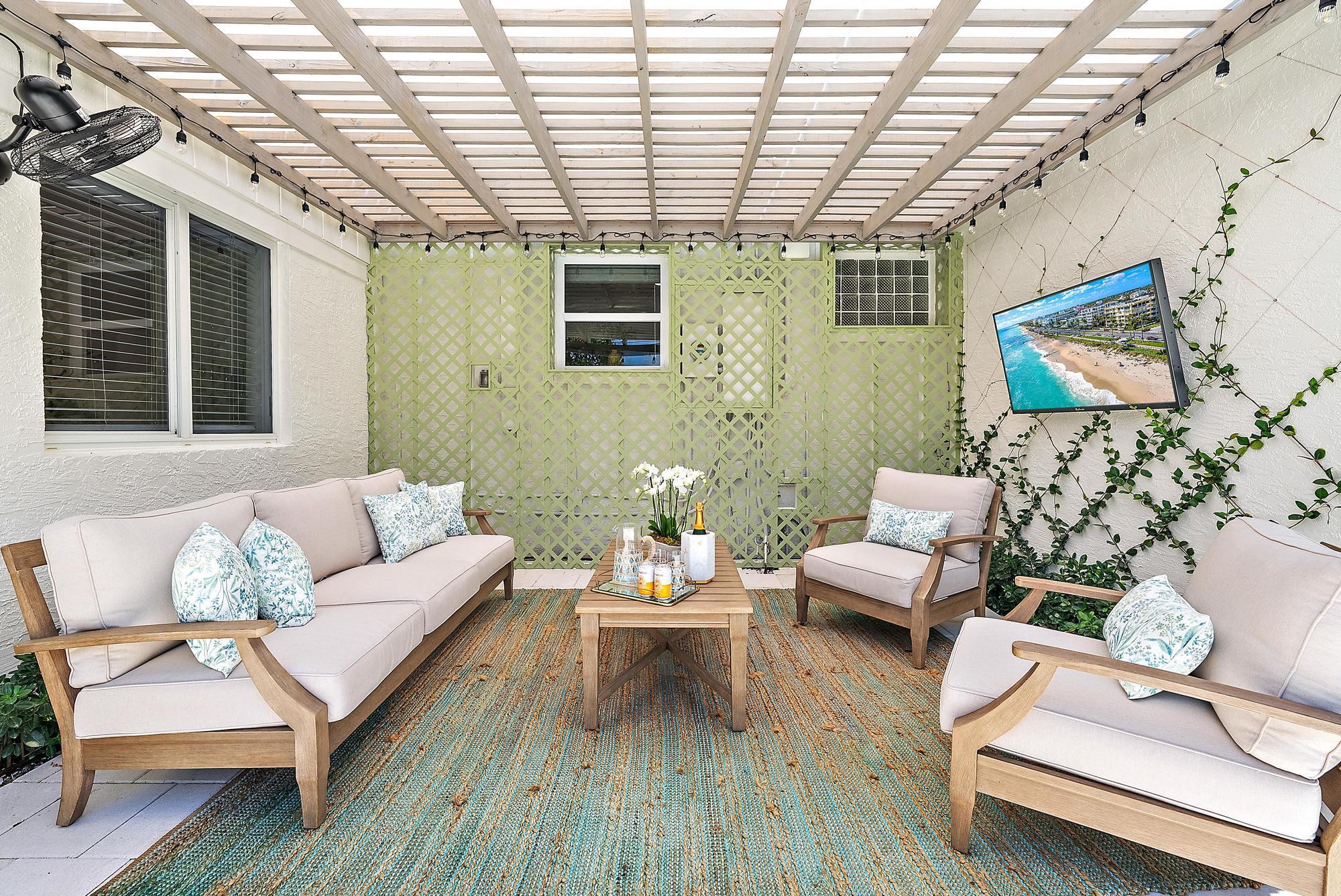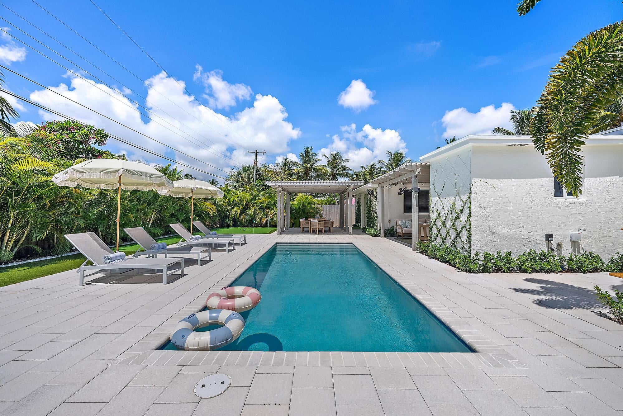 Welcome to Casita SoSo, Available November & December $13,000/month Weekly options considered $6500/weekLocated in West Palm Beach's highly desirable South of Southern (''SoSo'') neighborhood, this newly renovated single-story home combines high-end design, modern technology, and resort-style amenities. With a circular drive and lush tropical landscaping, it's just minutes from the Intracoastal, beaches, downtown West Palm Beach, and Palm Beach International Airport. The light-filled interior welcomes you with Thibaut wallpaper in the entry and flows into an open-concept living area with new floors, Bose surround sound, and Sonos mobile speakers for entertainment.The gourmet kitchen features quartz countertops, stainless steel appliances, reverse osmosis water filtration, and abundant storage, connects seamlessly to the dining area. The Master Suite offers a serene retreat with a walk-in shower and Sleep Number pillows, while two stylish guest bedrooms--including the Coniglio Room, featuring designs from Coniglio Palm Beach--share a coastal-inspired bath accented with Cole & Son wallpaper. Additional luxuries include a Nest thermostat, brand-new plumbing, electrical, and AC systems, a private indoor gym with Peloton bike, sauna, and Dyson vacuum, plus bicycles and fully stocked "business and pleasure" beach chairs and umbrellas. The private backyard is designed for relaxation and entertainment, featuring a saltwater pool, outdoor shower, covered dining and seating area with TV, and a professional-grade putting green. Surrounded by mature palms, it offers both sunny lounging spots and shaded retreats. Set on a quiet street in the heart of SoSo, you'll enjoy easy access to waterfront walking paths, boutique dining, cultural venues, and world-class shopping on Palm Beach Island. Available fully furnished for annual or seasonal lease. From keyless entry to curated designer finishes, this home offers a turnkey experience for enjoying the best of South Florida living. Available Seasonally $18,000/month or $11,500/month Annually beginning in April.