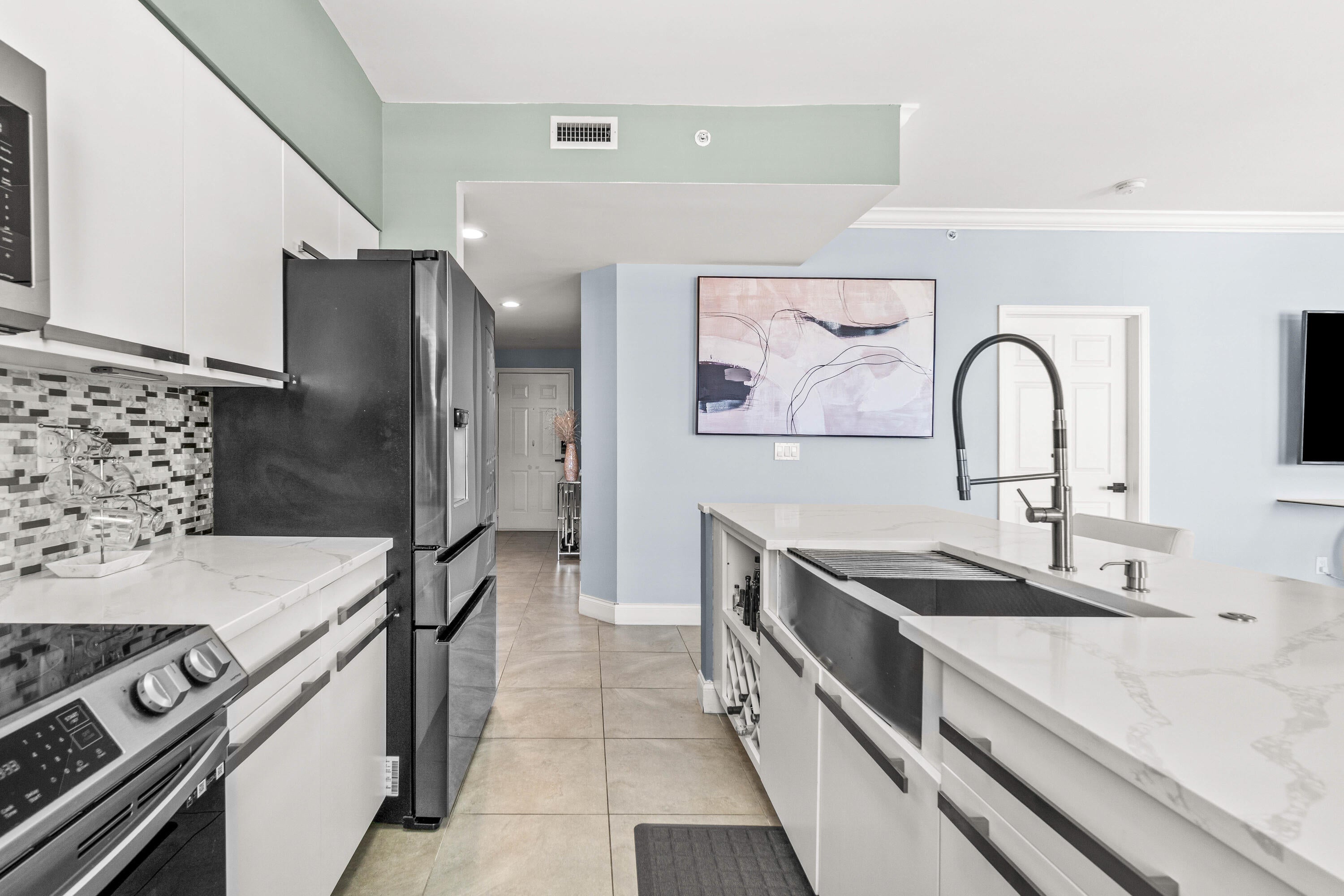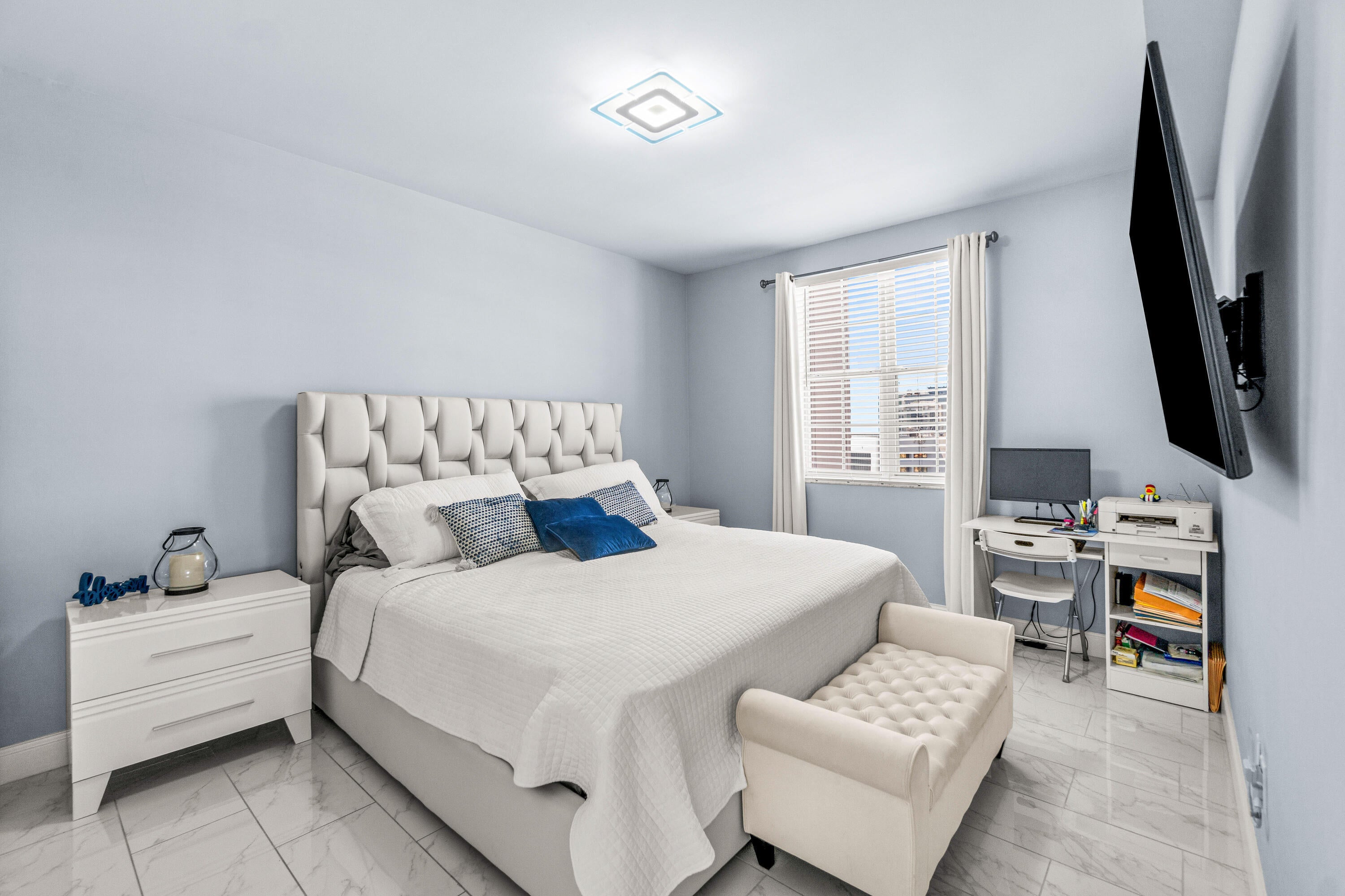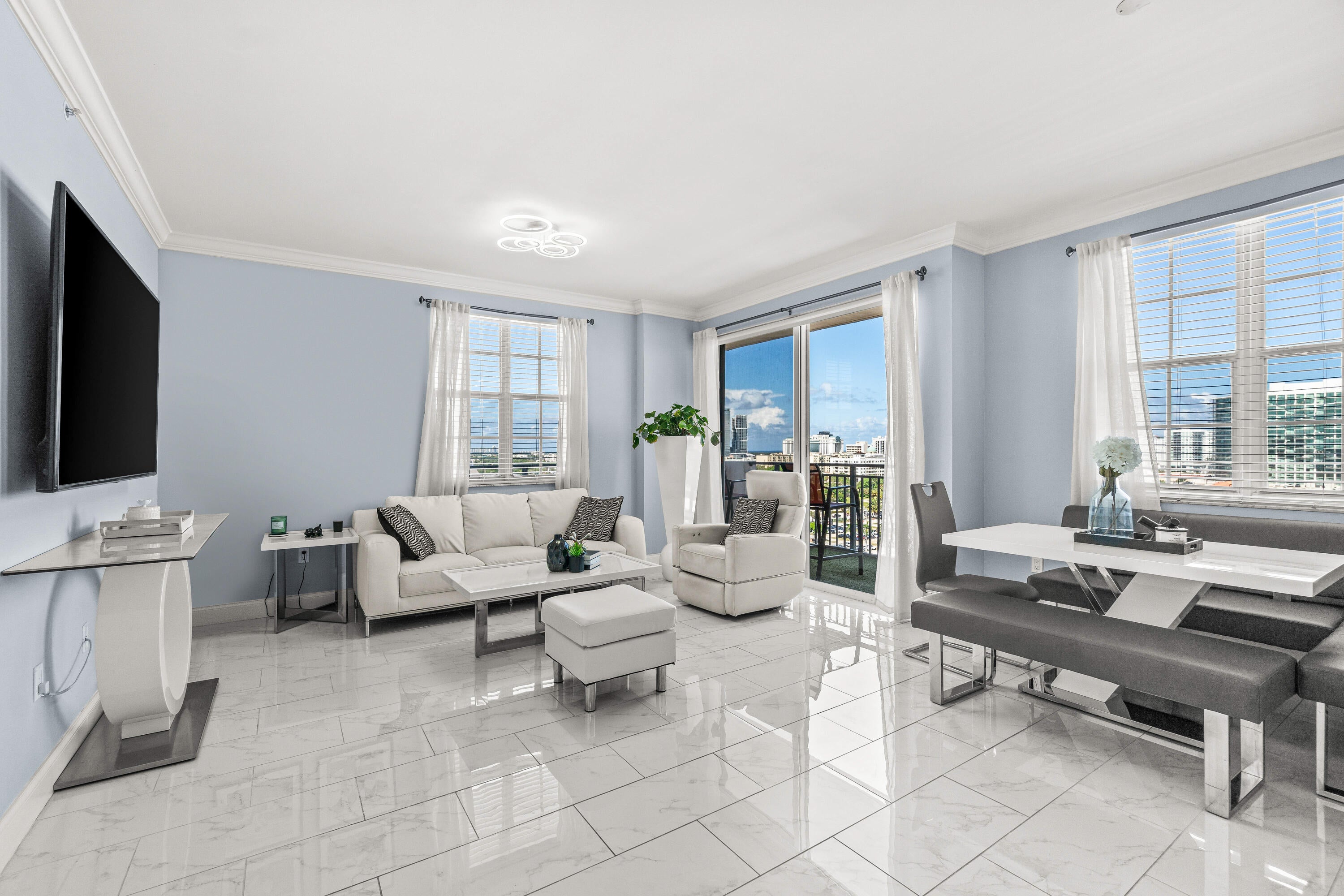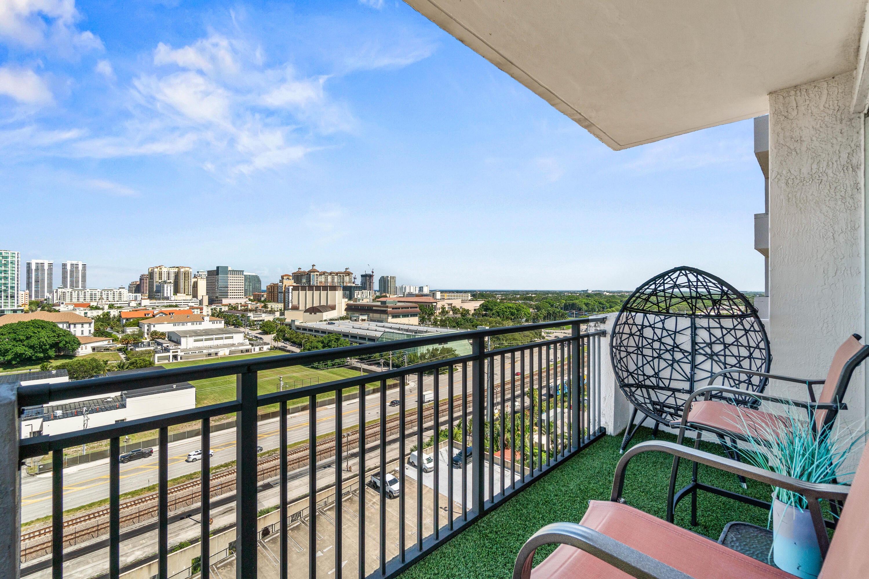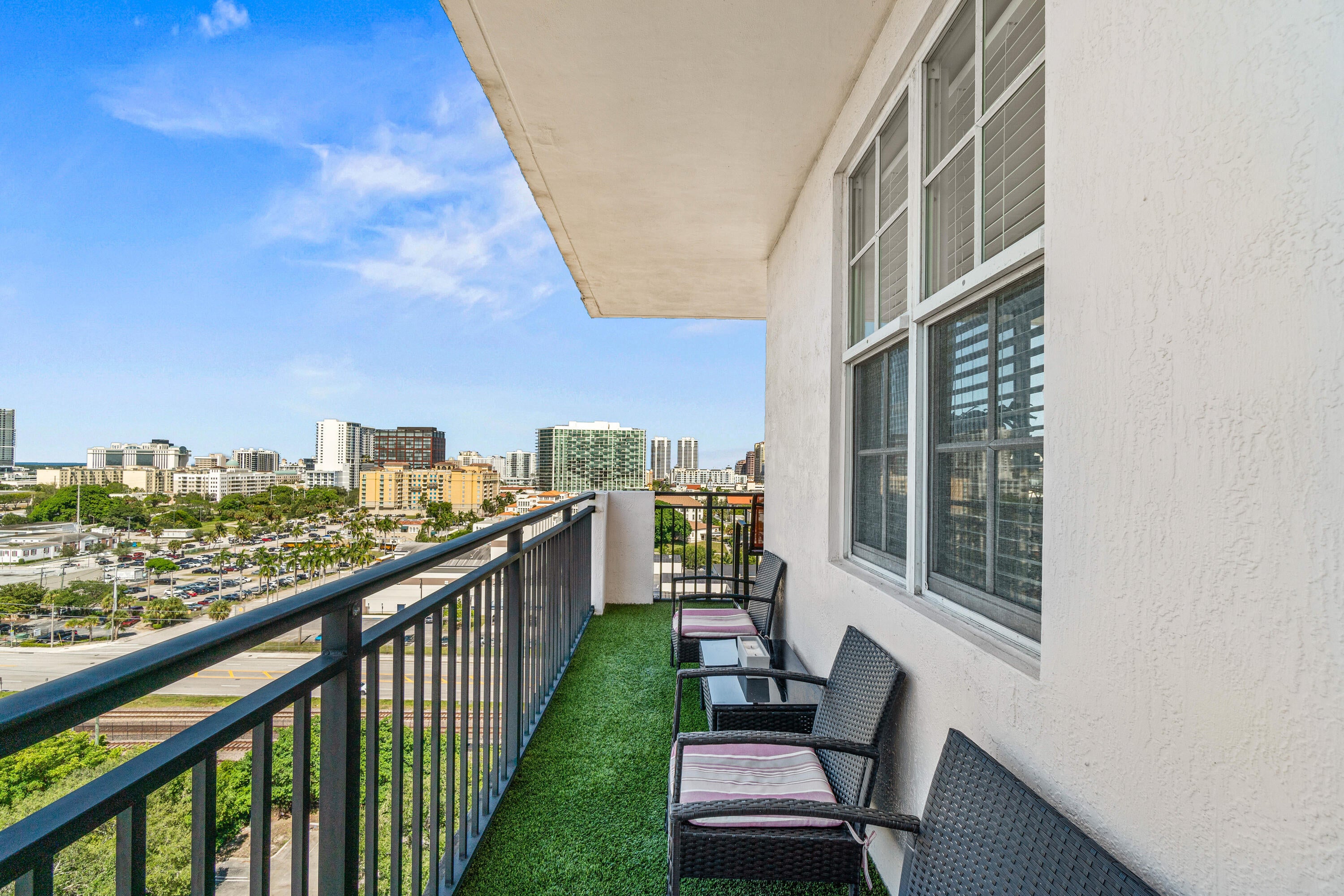 Rare 14th floor northeast corner unit available in Downtown West Palm Beach! Unit features 2 ensuite bedrooms, private wraparound balcony with unobstructed city views. Updated throughout with ceramic tile flooring, new kitchen cabinetry, quartz counter tops and appliances, new washer/dryer and updated bathrooms. Gated covered parking for 2 vehicles. Pets allowed. New Roof and Building A/C 2024. Investor friendly, buy today, rent tomorrow! Resort style amenities include fiberoptic internet, 24 Hour front desk concierge, resort style pool w/jacuzzi, BBQ grill area, gym, social room w/TV, bar & billiard table, cyber business center, bike storage. EV charging available. Only minutes to Clematis Street, City Place, NORA, Flagler Drive, Palm Beach Intl Airport, I-95, the Brightline & Tri-Rai