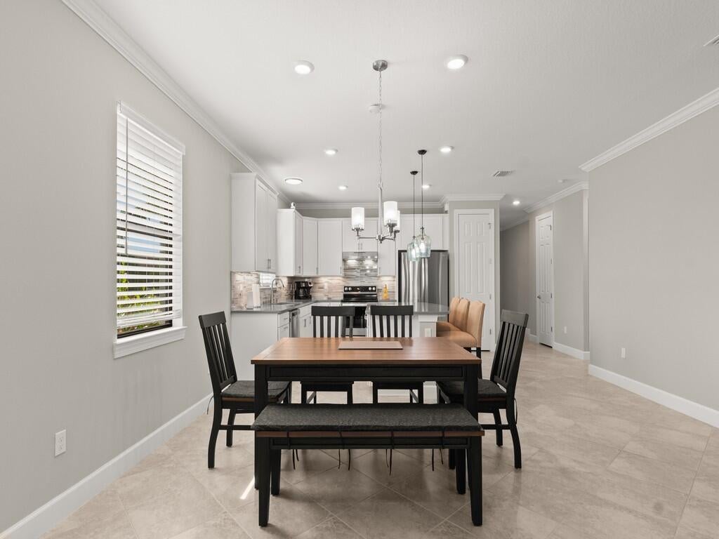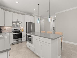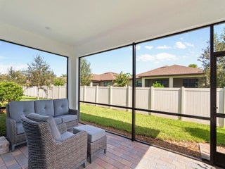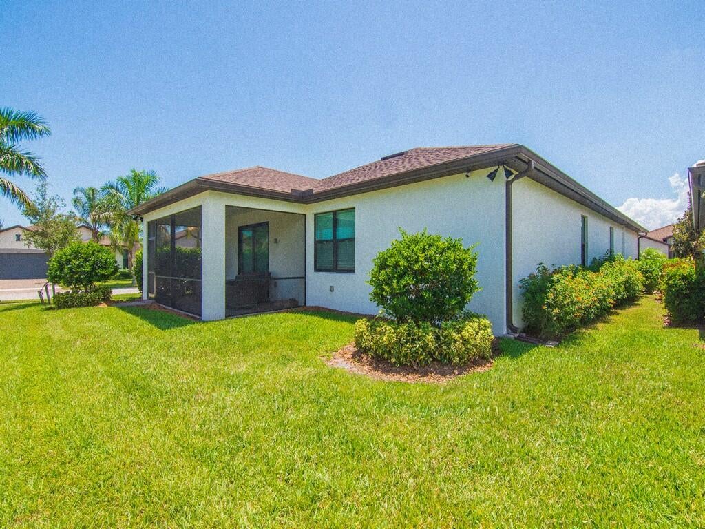 Vacation everyday as you enter this active community just a 10 min drive to the beach! Embrace the ease of new construction upon approaching this 2022 built CBS modern home on a corner lot, designed with comfort and functionality in mind. Delight your eyes as you step into the foyer to an inviting open concept feat 4Bds, 3 Full baths and a huge covered/screened extended Lanai. With a private en-suite for guest this charming home offers Impact windows, 8ft doors, Quartz countertops, kitchen Island, Diagonal Tile, microwave drawer, range hood, crown molding, 42 inch cabinets, epoxy garage plus more. Miles of New roads and sidewalks just outside the community to enjoy long walks, biking, jogging and more. Less than 5 mis to Publix plaza and restaurants. Immaculate condition Move-In ready!