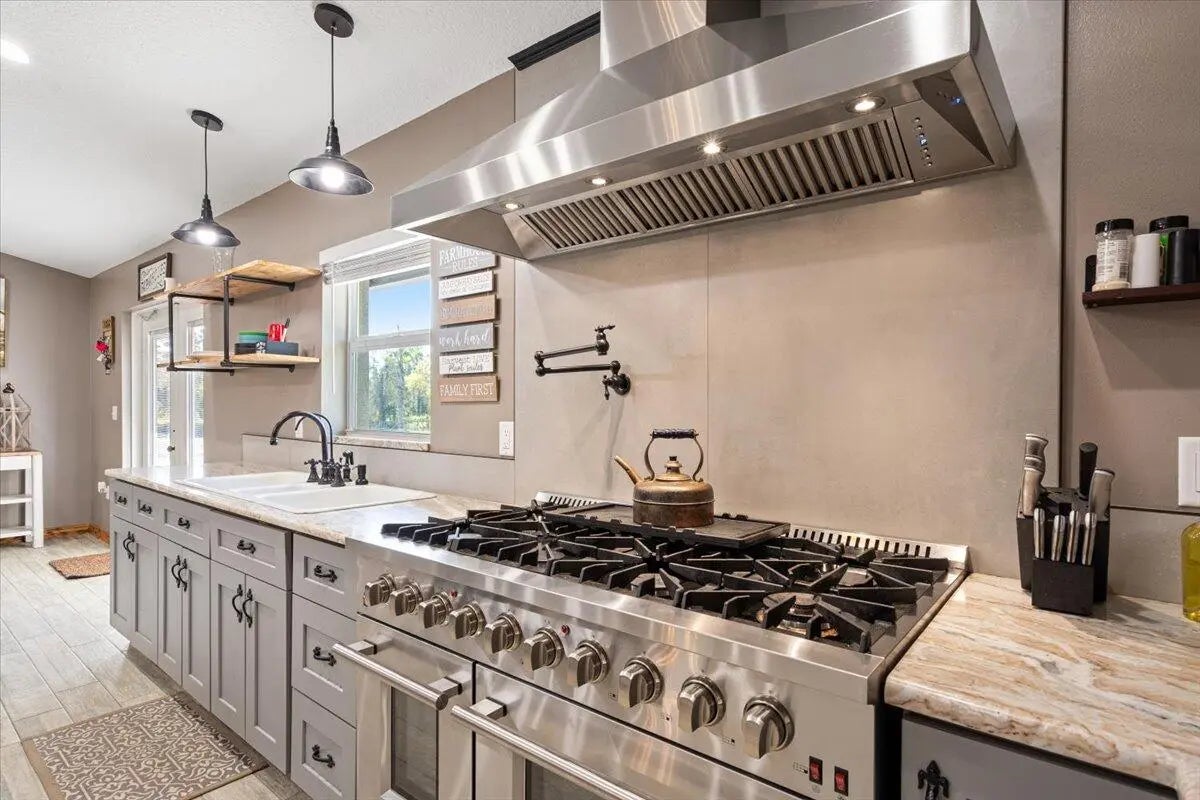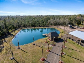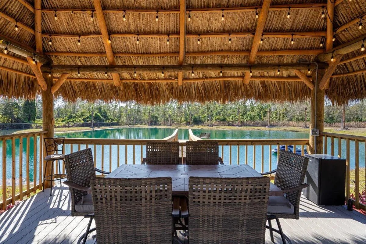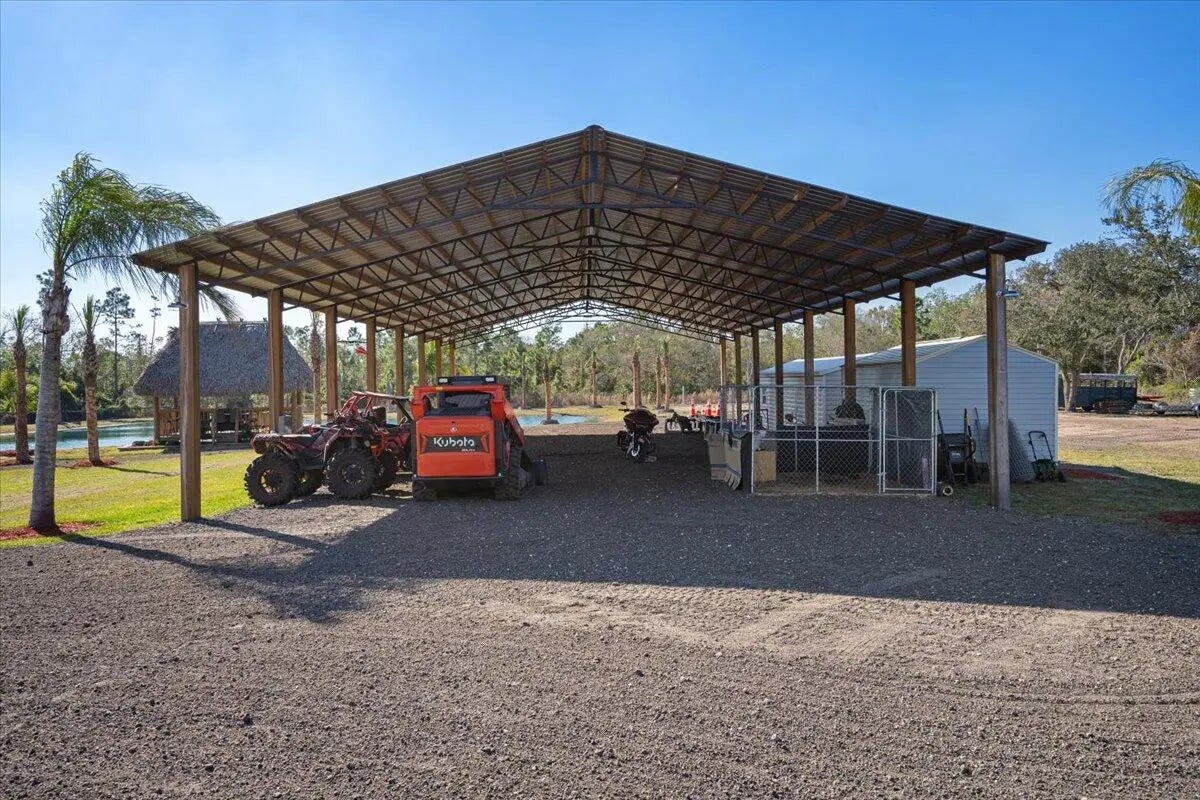 WELCOME TO COUNTRY LIVING PARADISE! Anything and everything you could want, this property has it! Welcome to this CUSTOM 2022 built Modern-Farmhouse home on 4.73 acres. Featuring 3 large bedrooms, 3 luxury bathrooms with walk-in tiled showers and glass doors. Custom doors and trim work (all burned & sealed). Chef's kitchen has granite countertops, a Forno SS 8 burner gas stove, Commercial exhaust hood, pot filler, dual-ovens, & custom wood cabinets. Wood plank tile flooring, IMPACT windows/doors, color matched gutters, tankless water heater, AND upgraded security and fire alarms. Custom TIKI HUT with DOCK on the POND, which is treated and stocked with FISH! 2024 built 40x100 & 20x30 pole barns. Fresh milling driveway, fenced & cross fenced for animals, double automatic gated entry!!