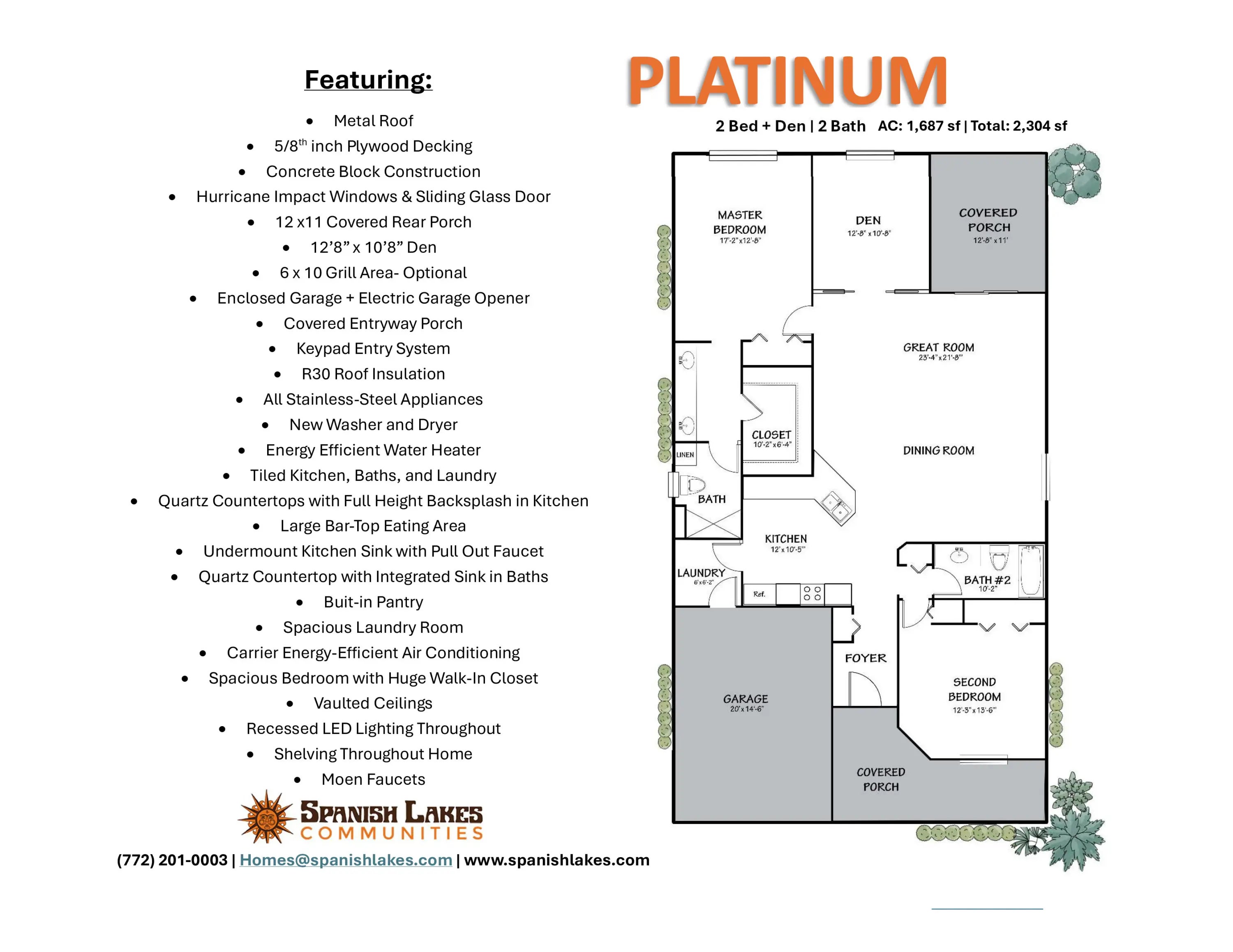 Our newest Model: The Platinum offers incredible value with 2 full bedrooms plus a den, 2 baths, and a 1 car garage. Enjoy high vaulted ceilings, a chef's kitchen with a versatile peninsula, Quartz countertops, open concept and large front and rear porch. Built for comfort and peace of mind with solid block construction and impact windows. All models offer additional value and security with 5/8'' true plywood roof sheathing, hurricane tie straps, R-30 insulation, & hip roof designs ensuring big insurance premium discounts plus all our homes are equipped with all energy efficient appliances. Land Lease is $699/mo. and locked in for 99 years. It includes all amenities, trash service & basic lawn maintenance.