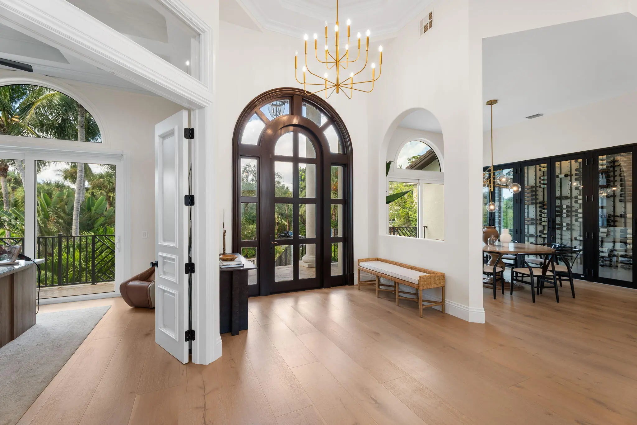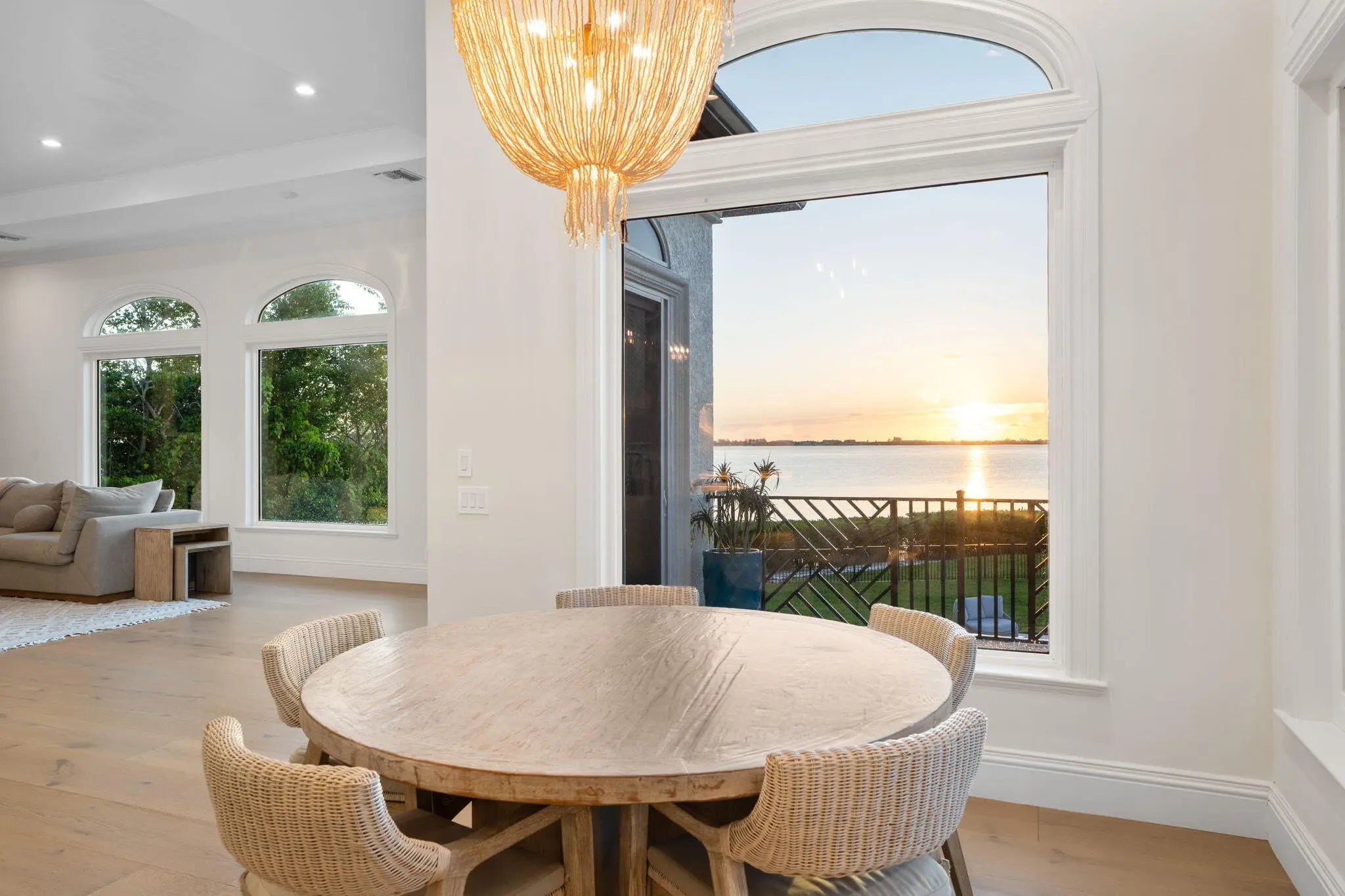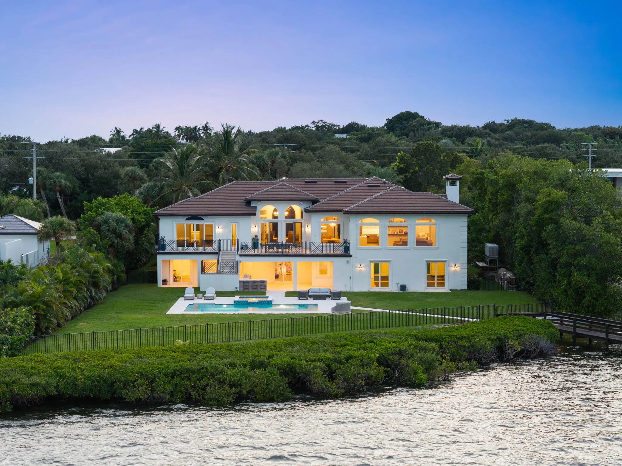 Offered fully furnished & sold turnkey, this gated Sewalls Point estate was completely reimagined in 2022 with hand-selected materials by FireFinish Interiors & additional bespoke finishes by Hurd Homes. Set on 1.25 acres with 152 feet of direct Indian River frontage, the home combines architectural precision with the finest modern comforts.Inside, picture-frame windows flood the interiors with natural light & frame panoramic water views. The open floor plan showcases marble & porcelain finishes throughout, with every bedroom designed as an en suite retreat. The Primary Suite commands a front-row seat to the water, featuring a spa-like bath adorned with marble & porcelain tile crafted to resemble teak floors without the upkeep. Wake up to breathtaking sunrises over the