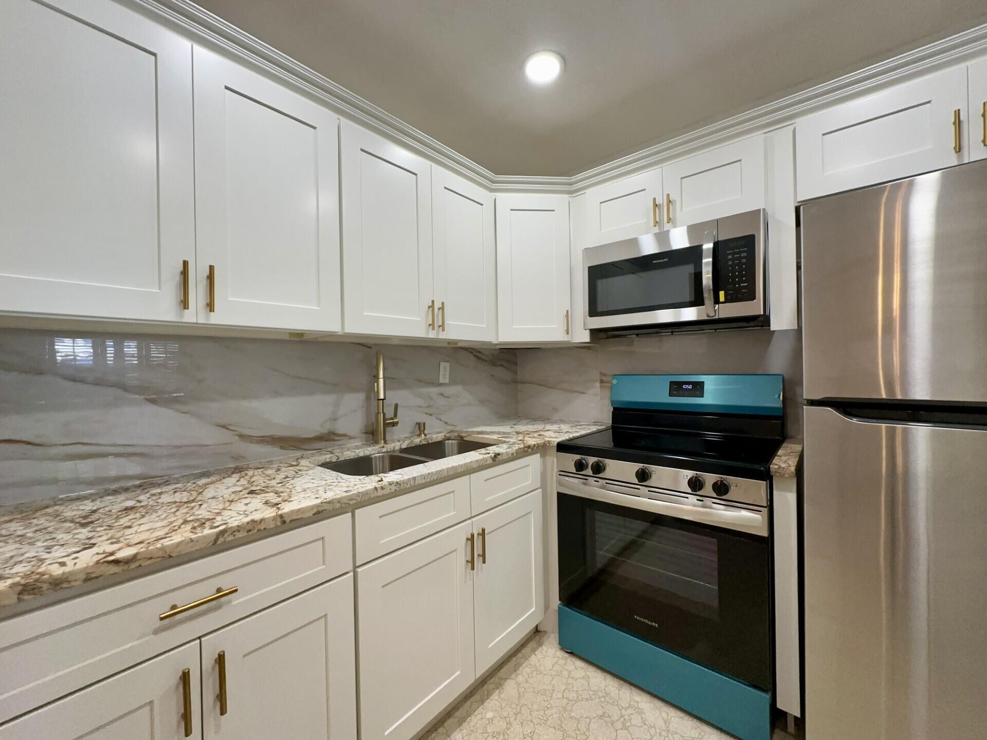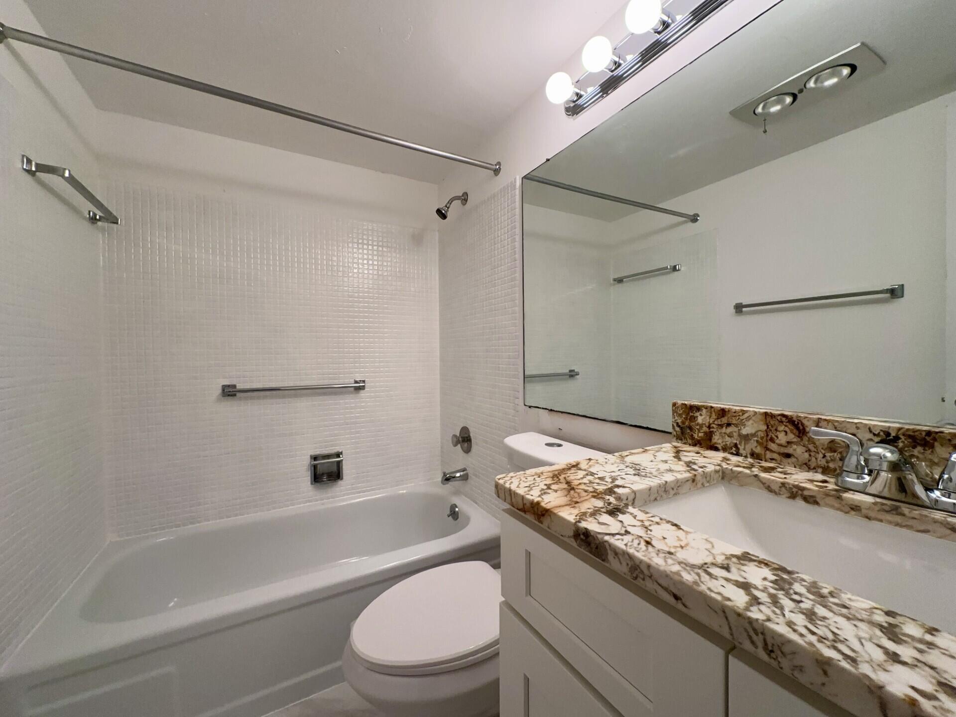 Chic, second floor 1/1 with Updates for rent in 55+ Century Village! This freshly painted unit is ready for you to move into! Brand new appliances, updated kitchen, updated bathroom and tastefully decorated. Furniture is brand new - this unit can be rented with or without the furniture. Century Village is a 55+ community with so much to offer...shows, movies, clubs, pools, security, and transportation service. The Clubhouse features a theater, indoor pool, card room, community/party room, billiard room, shuffleboard, tennis, pickleball, bocce, and two outdoor pools. Numerous heated outdoor pools throughout the community. Separate fitness center with gym and outdoor heated pool & resistance pool. Two guarded gates and 24-hour roving security patrol.