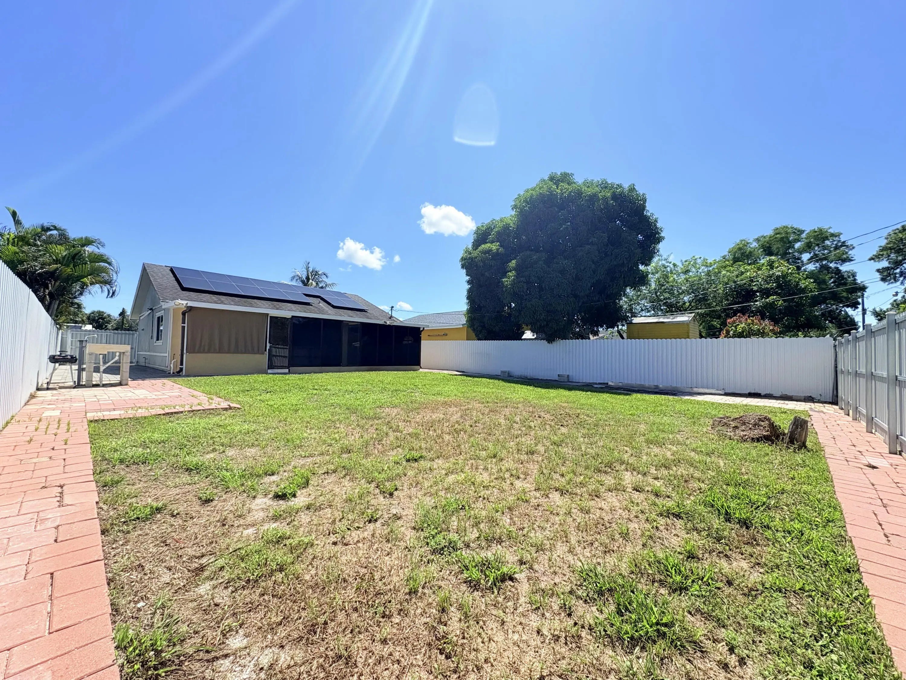 Discover this charming 2-bedroom, 2-bath home with a one-car garage in the heart of Greenacres. Featuring a spacious screened back patio and a fully fenced yard, this property is perfect for outdoor living, entertaining, and family fun. The huge backyard offers endless possibilities--whether you're looking to add a pool, garden, or simply enjoy open space. With no HOA restrictions, you'll have the freedom to make it your own. A rare find in a sought-after location, this home combines comfort, convenience, and potential.