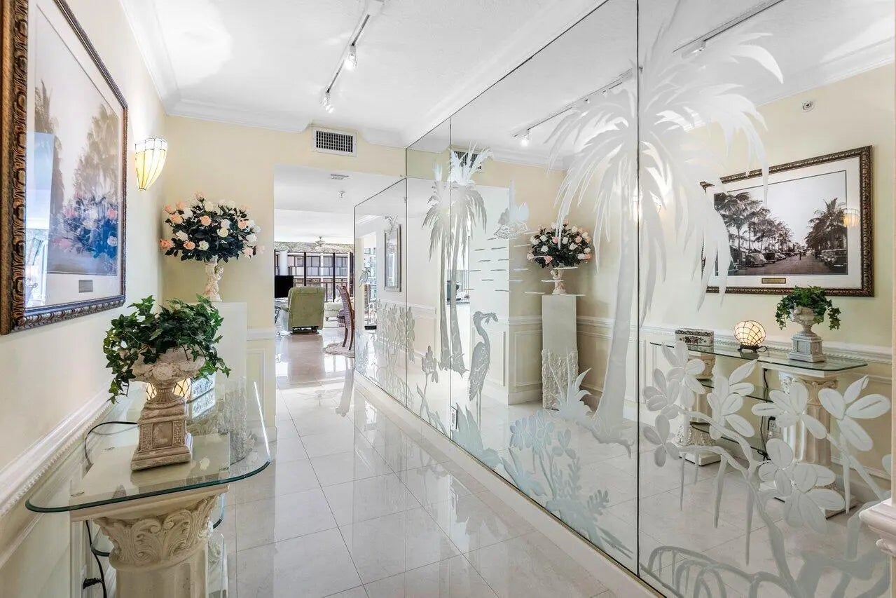 Experience the epitome of ''Palm Beach'' living in this elegant 5th-floor residence at the Halcyon. This spacious 2BR/2BA floor plan features two glass balconies showcasing breathtaking Southeast Ocean views and panoramic Intracoastal vistas from sunrise to sunset.Meticulously maintained, the interior boasts hurricane-impact glass, a custom eat-in kitchen, and a stunning bar with back-lit etched glass. Architectural details like wainscoting, custom cabinetry, and fine stonework add timeless charm. Enjoy resort-style amenities including 24/7 doormen, a heated pool, and private beach access.Owner financing available: up to $1M at 3.75%. A rare opportunity for a sophisticated coastal lifestyle.