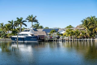 This IS a boater's dream! Over 184 feet of PROTECTED DEEP-WATER frontage, a 98' Ipe wood dock, 24,000 LB lift, & quick access to the intracoastal! Recent renovations transformed this 5,500+ SF home into a modern, luxurious retreat that seamlessly blends indoor & outdoor living. Privacy is enhanced by lush landscaping & authentic Chickee Tiki huts, creating multiple areas for entertaining or enjoying the Florida lifestyle. Spacious updated floor plan with a gourmet kitchen, spacious room sizes & private en-suite bedrooms. All impact glass sliders & windows! Nothing has been missed here!