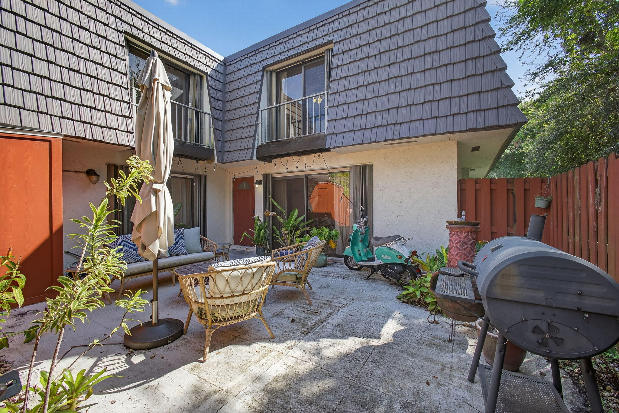 One-of-a- kind move in ready opportunity!! Welcome to this charming well-maintained 2 bed 2.5 baths condo located in a prime location in Jupiter. If you are looking for a home in a great location, this is it -Just minutes away from Jupiter's most beautiful beaches, restaurants, lighthouse, top-rated schools and across from Jupiter Medical Center. This home features a functional and open first floor layout with plenty of natural light, a private fenced courtyard perfect for relaxing and entertaining. Upstairs two large bedrooms each with vinyl flooring, an ample closet space and a balcony that overlooks the water and serene preserve. For your peace of mind this home includes a new roof (2020), new AC (2025), storm protection shutters and two dedicated parking spaces in front.Call for a personal tour of this lovely property and schedule your showing today!