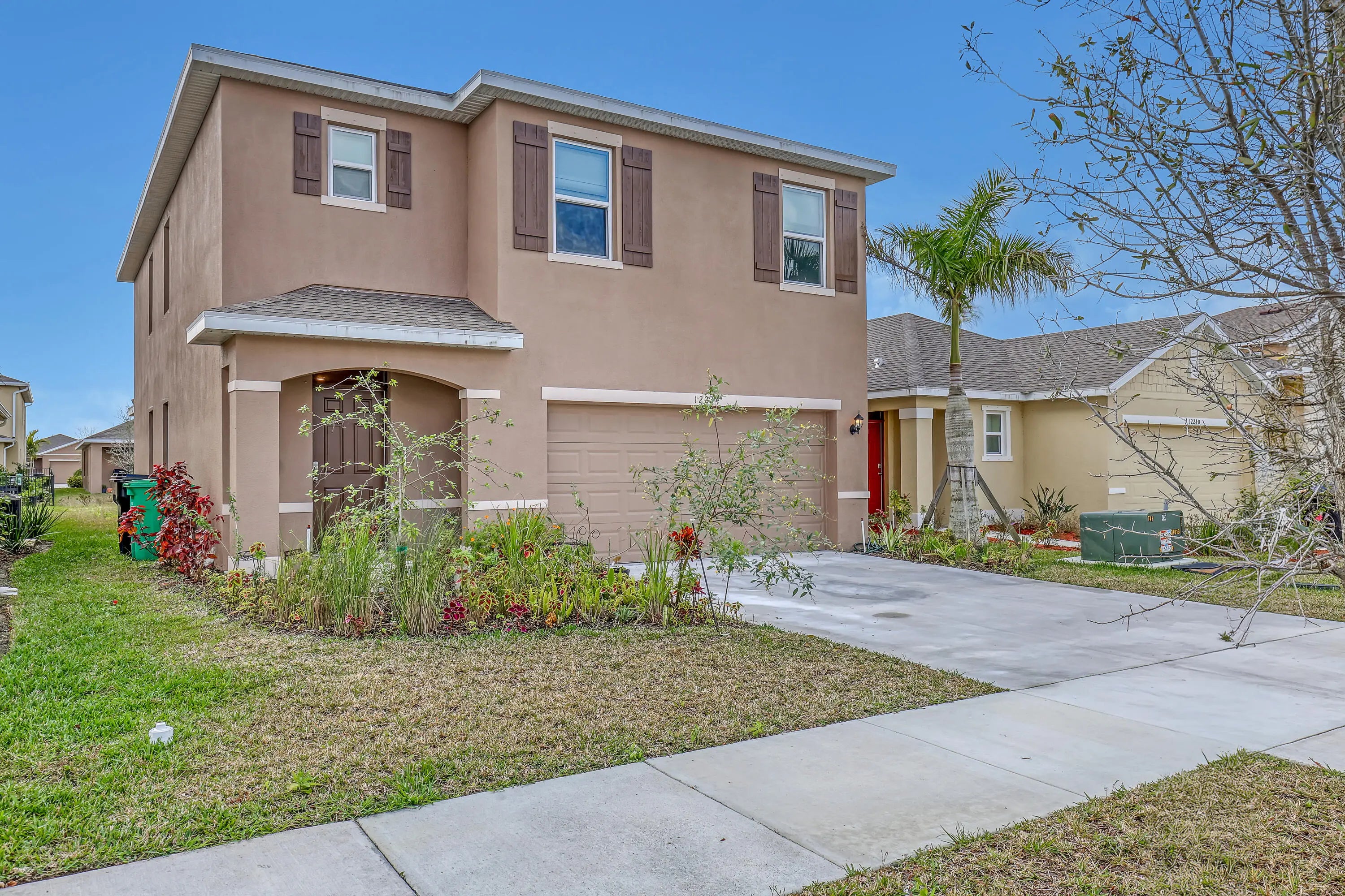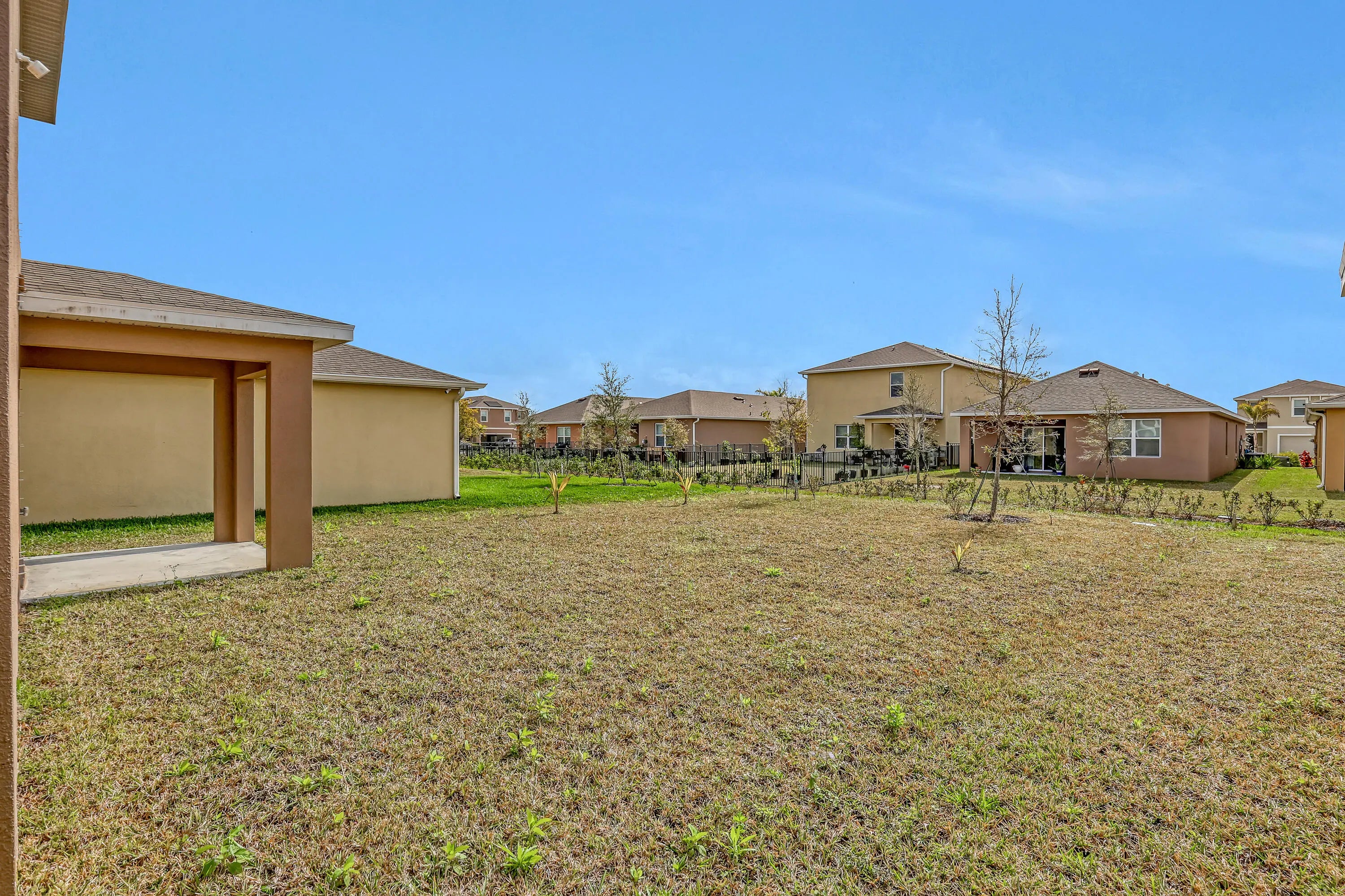 This impressive all-concrete block house showcases a two-story design that is both functional and inviting. With five spacious bedrooms and three full bathrooms, it provides ample living space for families or guests. The convenience of having one bedroom and a full bathroom on the main level is a notable feature, making it accessible for those who prefer not to navigate stairs. The open concept layout enhances the flow of the home, with a well-appointed kitchen island that serves as a central gathering point. Abundant natural light streams through large windows, creating a warm and welcoming atmosphere throughout the living areas. Step outside to the covered patio, perfect for grilling and enjoying outdoor meals.
