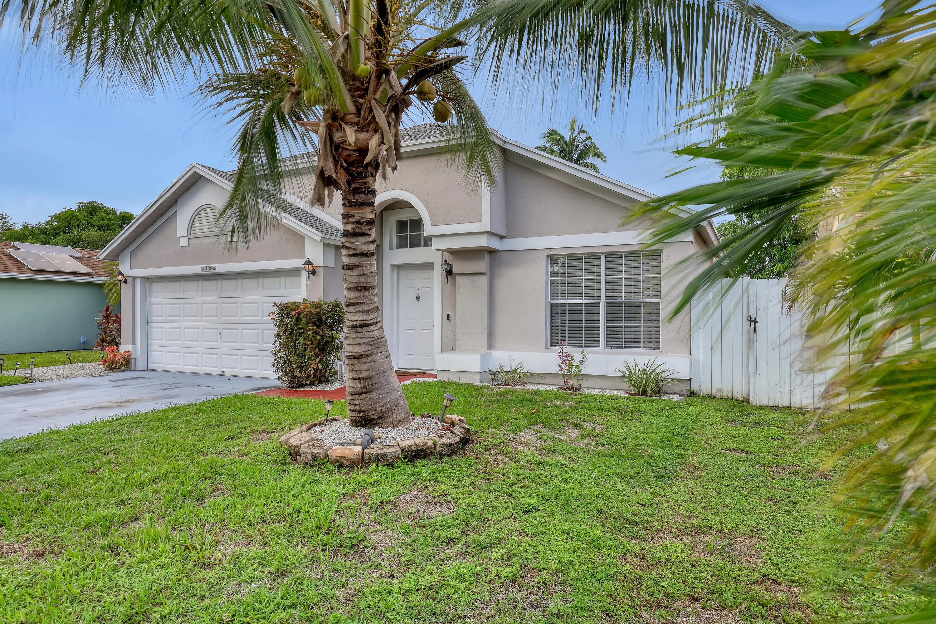 Beautiful and well-maintained property in gated community. Open the door to the formal dining and living room. The Atrium bringing ton of natural light, ideal space for an herb garden. Lead the way to the eat-in kitchen which is open to the spacious family room. The spacious Owner's Suite offers tall ceilings, a custom closet system, private bath with separate shower, and soaking tub. The residence boasts an enclosed, screened patio, fully fenced backyard. The home is conveniently located close to schools, Publix, Wal-Mart, Sam's Club, Palm Beach Outlet Mall, and Palm Beach Airport. The community amenities include an oversized pool and a playground.