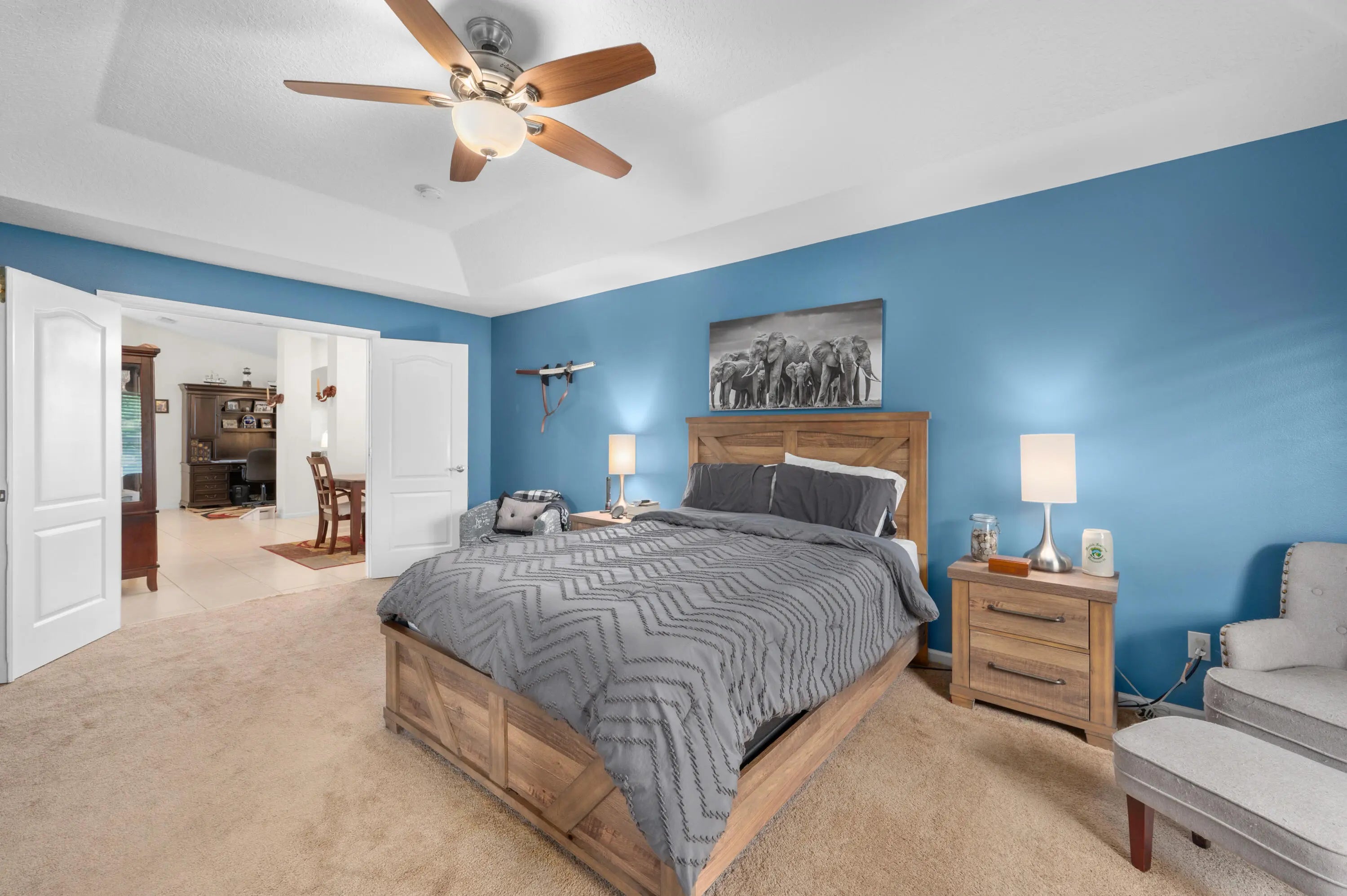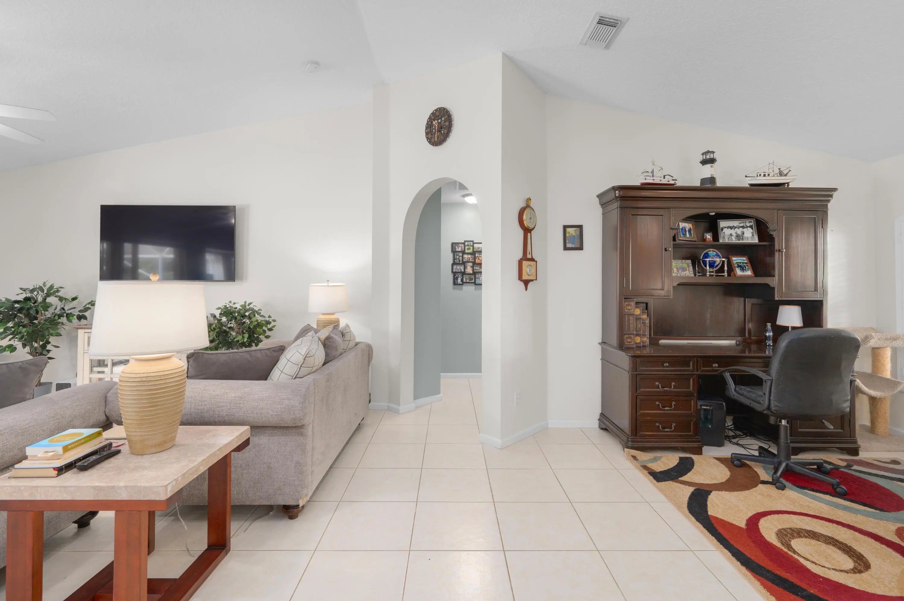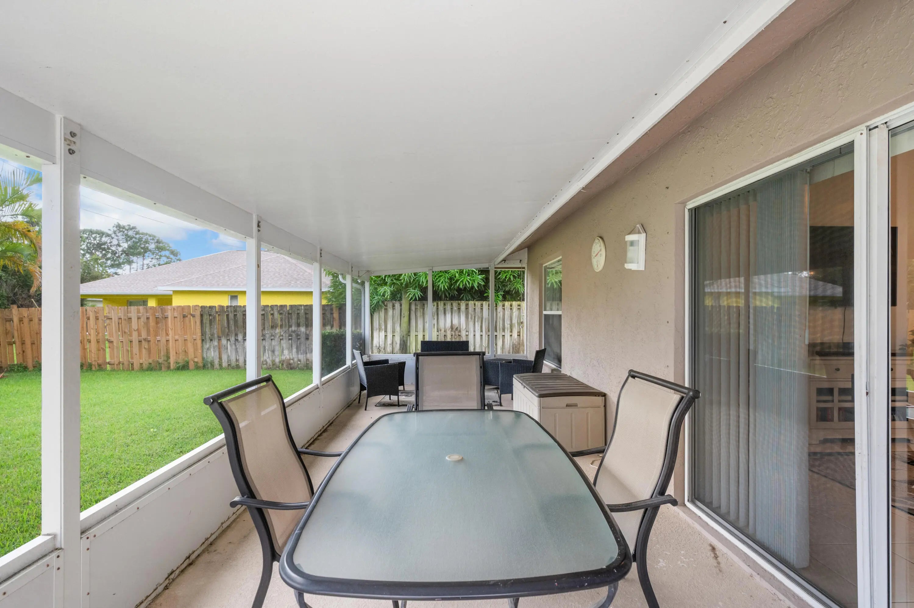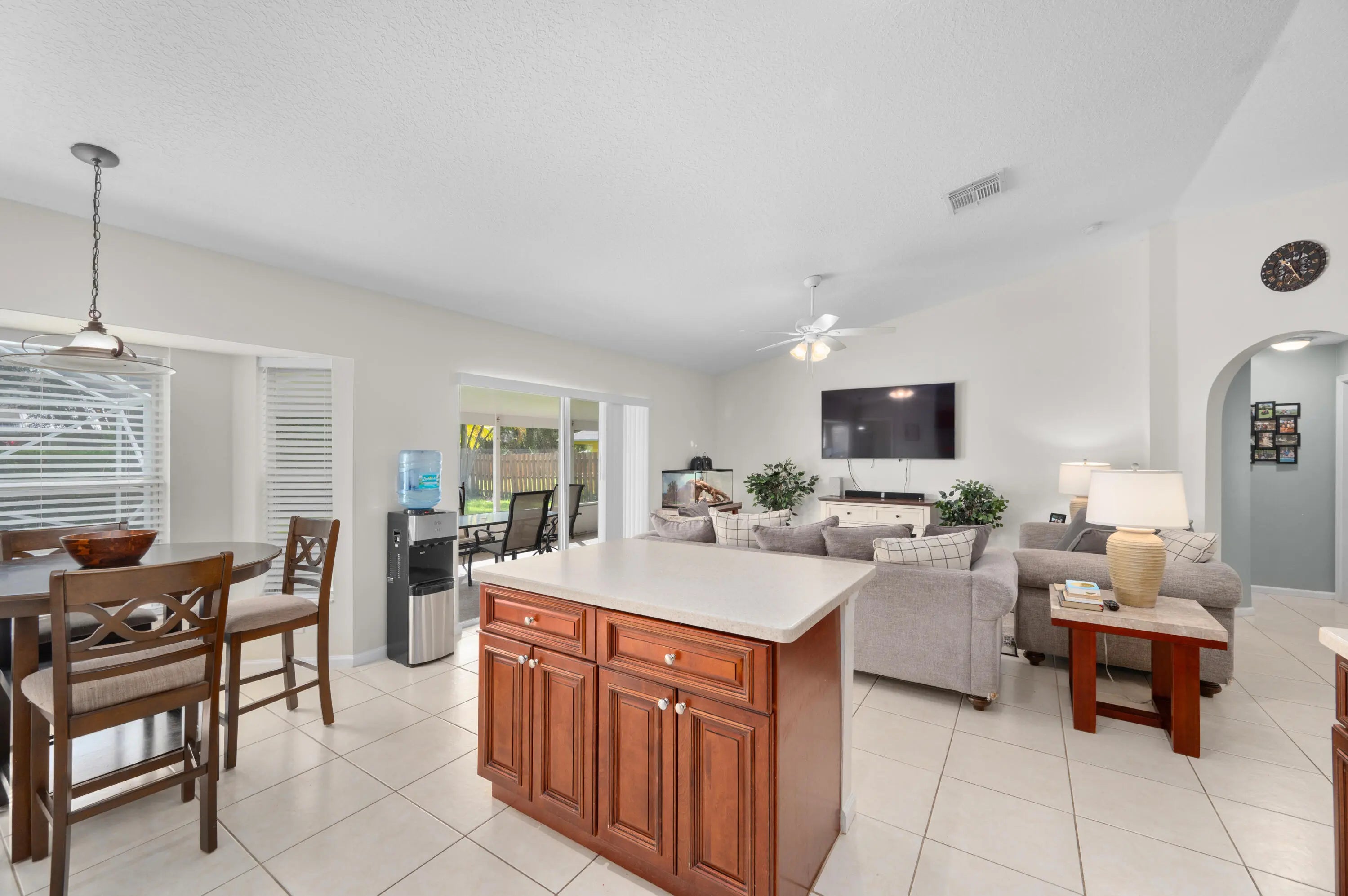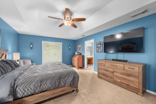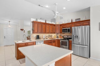Beautifully maintained 3-bedroom, 2-bath single-family home with volume ceilings, a split floor plan, and a spacious 2-car garage. The upgraded kitchen features stylish cabinetry, updated appliances, and Corian counters. The primary suite is huge and offers a tray ceiling, walk-in closet, and private en suite. Ceiling fans throughout add comfort, and a leased solar array keeps energy costs low. Step outside to a long screened lanai and enjoy the saltwater-chlorinated pool (also screened) perfect for entertaining or relaxing. Located in a quiet neighborhood close to schools, shopping, dining, I-95 and city parks, this home combines style, efficiency, sustainability and Florida living at its best. Don't miss out--schedule your showing today!
